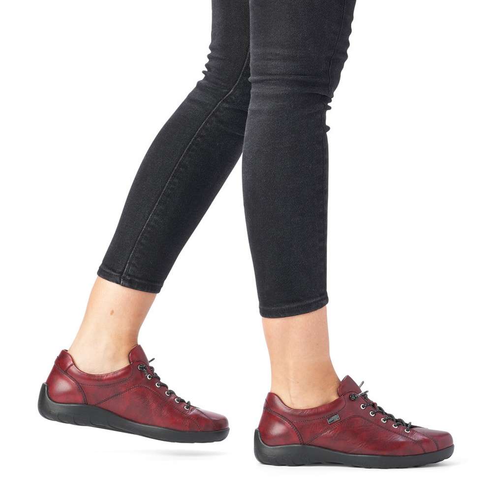 Hladký svršek s decentním prošíváním je ozvláštněn žíhaným šněrováním v podobě gumičky, díky kterému si obuv přizpůsobíte dle Vašich požadavků. Svršek je vybaven funkční vrstvou Remonte TEX, díky které je bota nepromokavá a přesto prodyšná. Tenisky můžete nosit jak do práce, tak i na toulky městem a budou skvěle vypadat k jakémukoliv Vašemu outfitu.