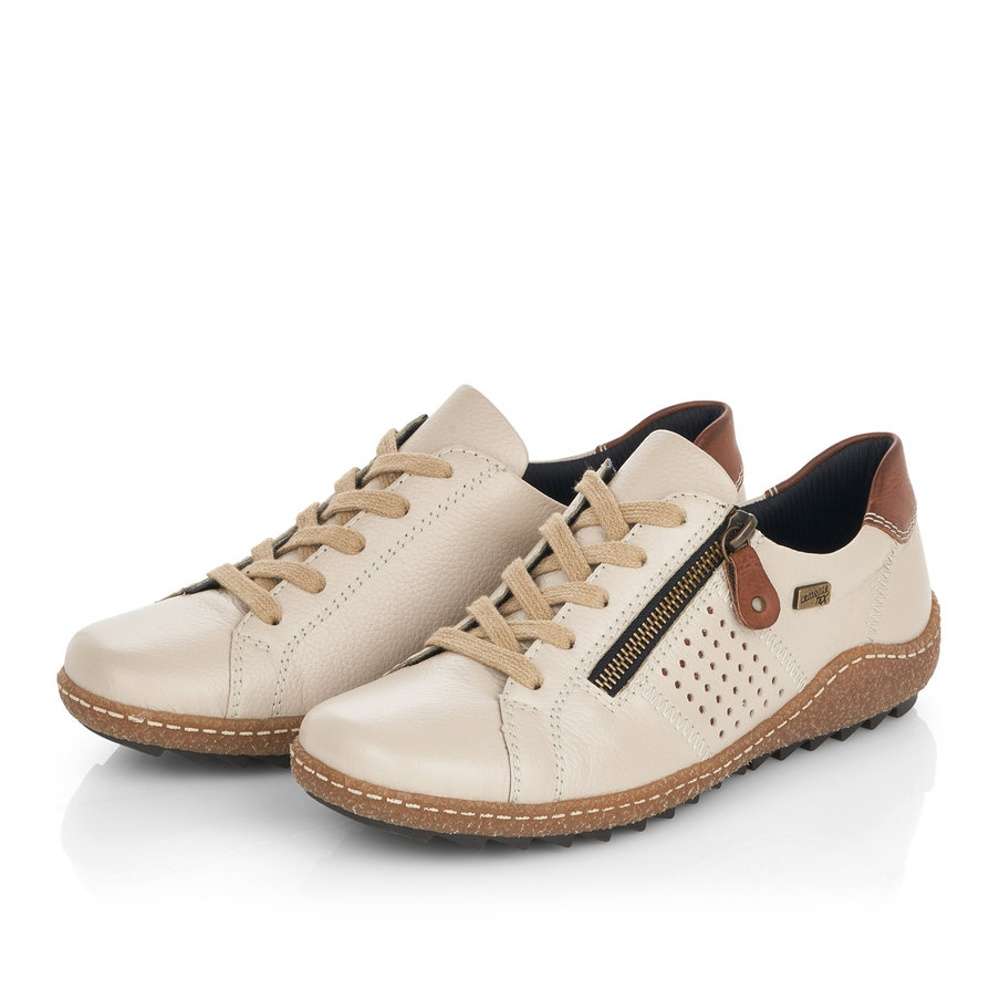 Ležérní, volnočasové sportovní polobotky jsou vhodné ke každodennímu užívání. Kvalitní svršek je ozdoben prošíváním, povrchovou perforací a o snadné nazouvání se postarají šněrování a funkční zip. Přednostmi obuvi je funkční vrstva Remonte TEX, díky které je bota nepromokavá a přesto prodyšná. Boty z řady Remonte Vám zajistí maximální komfort, pohodlí při celodenním nošení a tenisky můžete nosit jak do práce, tak i na toulky městem.
