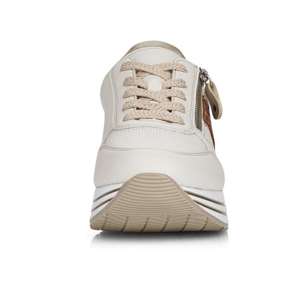 Boty z řady Remonte Vám zajistí maximální komfort a pohodlí při celodenním nošení. Tato dámská teniska Vás zaujme na první pohled svým jedinečným zpracováním. Propojení jednoduchosti a vyšší podešve, to jsou zdobné znaky této obuvi.