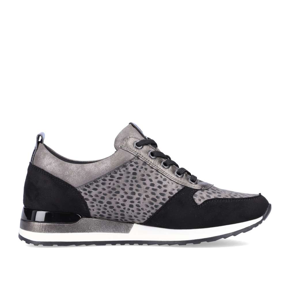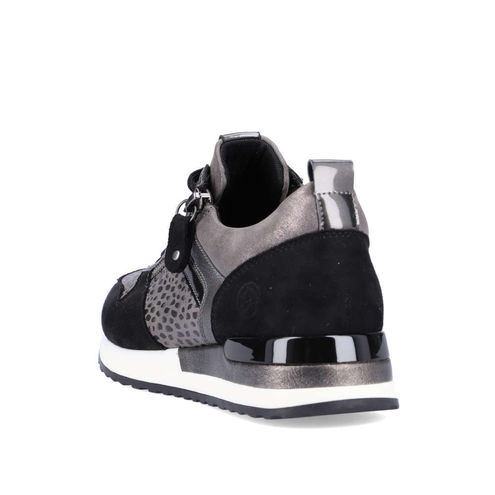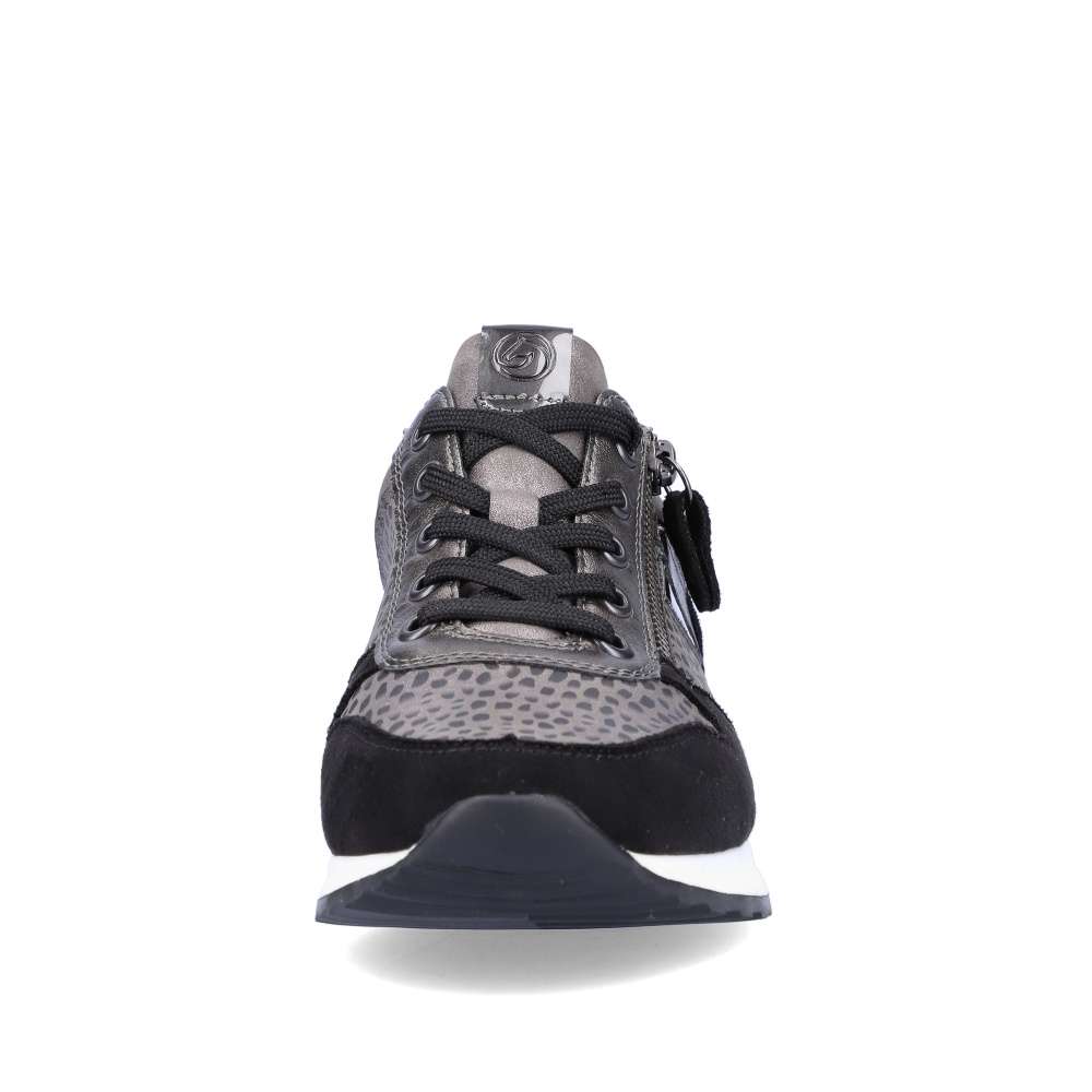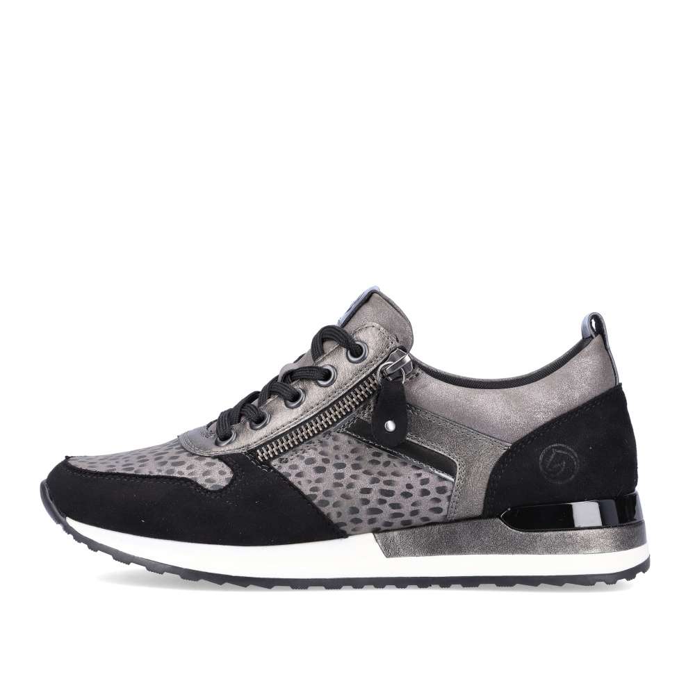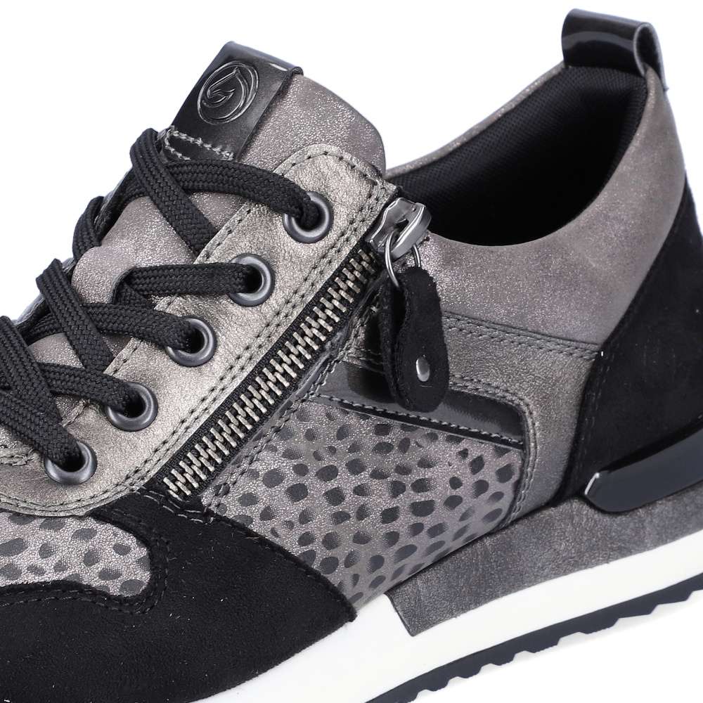 Obuv REMONTE – jedná se o vyšší řadu značky RIEKER, tato obuv se vyznačuje vynikající kombinací svrchních materiálů. Tyto pohodlné městské tenisky budou tou správnou volbou. Svršek obuvi je poskládán z několika různých částí, které spolu utváří skvělý design. Obuv si rychle nazujete díky funkčnímu zipu a přizpůsobíte díky šněrování tkaničkami. Vyjímatelná paměťová stélka zajistí maximální pohodlí po celý den a kvalitní podešev svým provedením doladí celkový vzhled obuv k dokonalosti. Tenisky budou skvěle vypadat s kalhotami, ale třeba i dlouhými šaty.