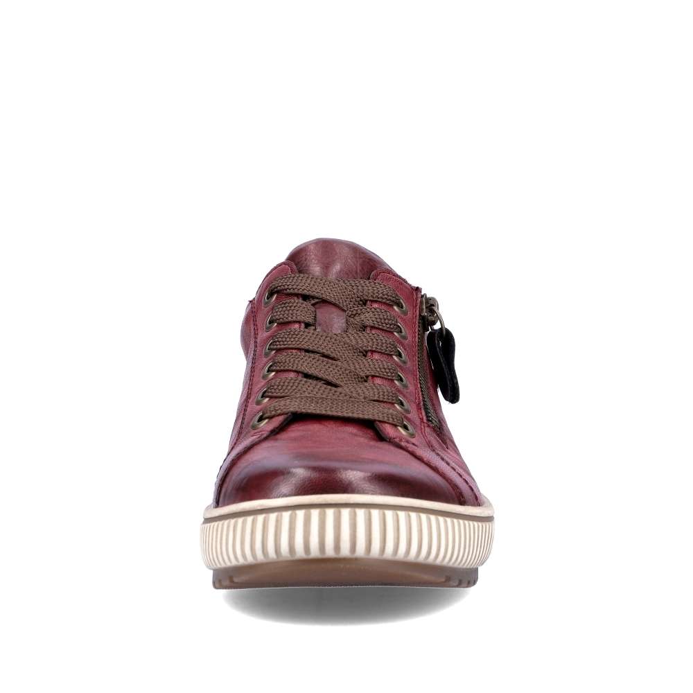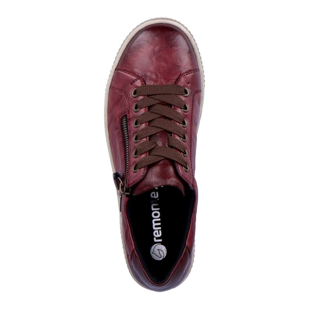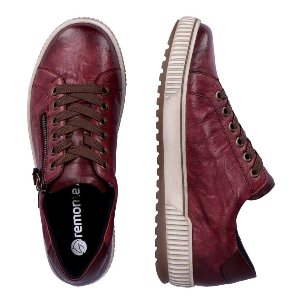 Detailní informace Obuv REMONTE je vyšší řadou značky RIEKER, obuv se vyznačuje kvalitou použitých materiálů. Dokonalé dámské tenisky Remonte v nové vínově červené podzimní barvě, které musí doplnit Váš botník. I přes jednoduchý svršek mají tyto botičky styl, který zaujme každého okolo. Svršek vyroben z kvalitní kůže, ozdoben zipem, tkaničkami a logo značky REMONTE, která je vtištěná u paty. Kvalitní vyjímatelná stélka se přizpůsobí chodidlu a budete se cítit jako na obláčku. Tato obuv skvěle padne ke kalhotám a jeansům na procházce městem.
