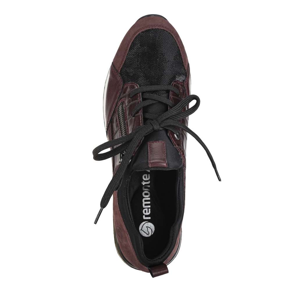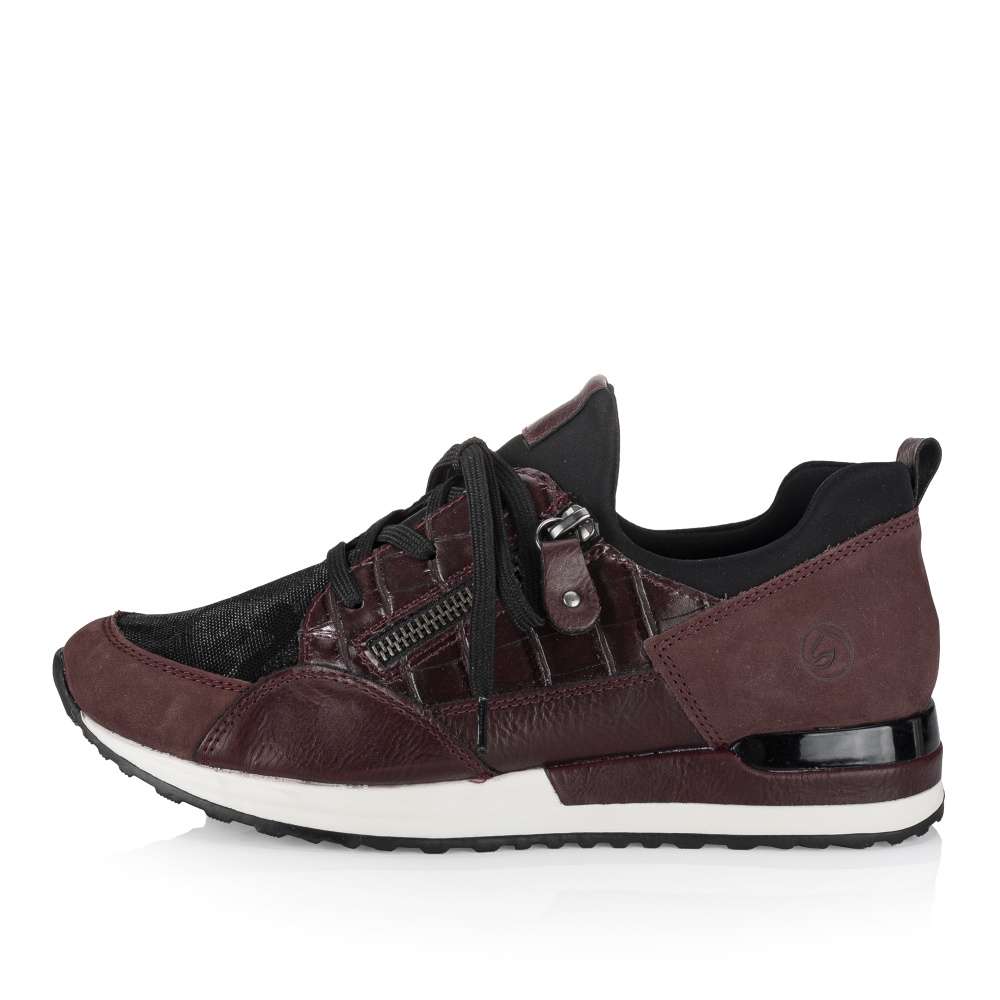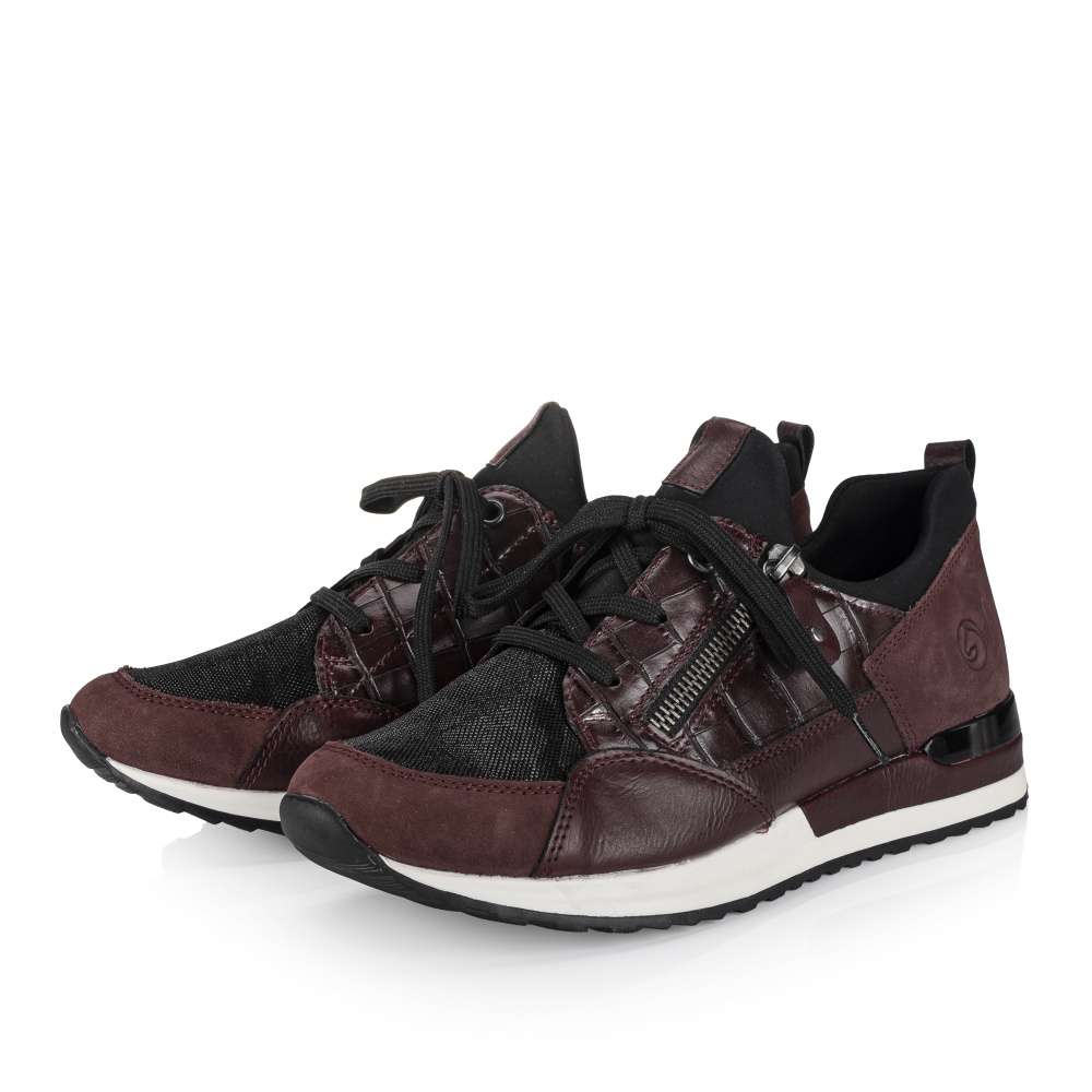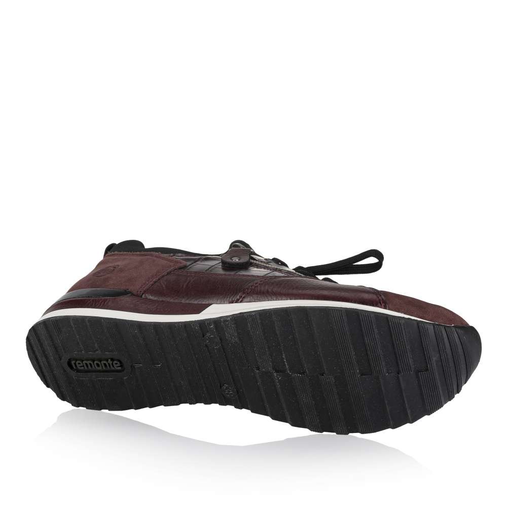Obuv REMONTE – jedná se o vyšší řadu značky RIEKER, tato obuv se vyznačuje vynikající kombinací svrchních materiálů. Tento model tenisek je navržen tak, aby vyhovoval potřebám dnešní moderní ženy. Svršek obuvi je unikátní díky spojení různě vzorovaných částí a lesklých prvků. Snadno si obuv nazujete díky šněrování a potřebný komfort zajistí vyjímatelná měkká stélka. Podešev svým kontrastním vzhledem doladí vzhled obuv k dokonalosti a tyto tenisky zaručeně skvěle doplní Vaše outfity ať už do práce či na pochůzky městem.