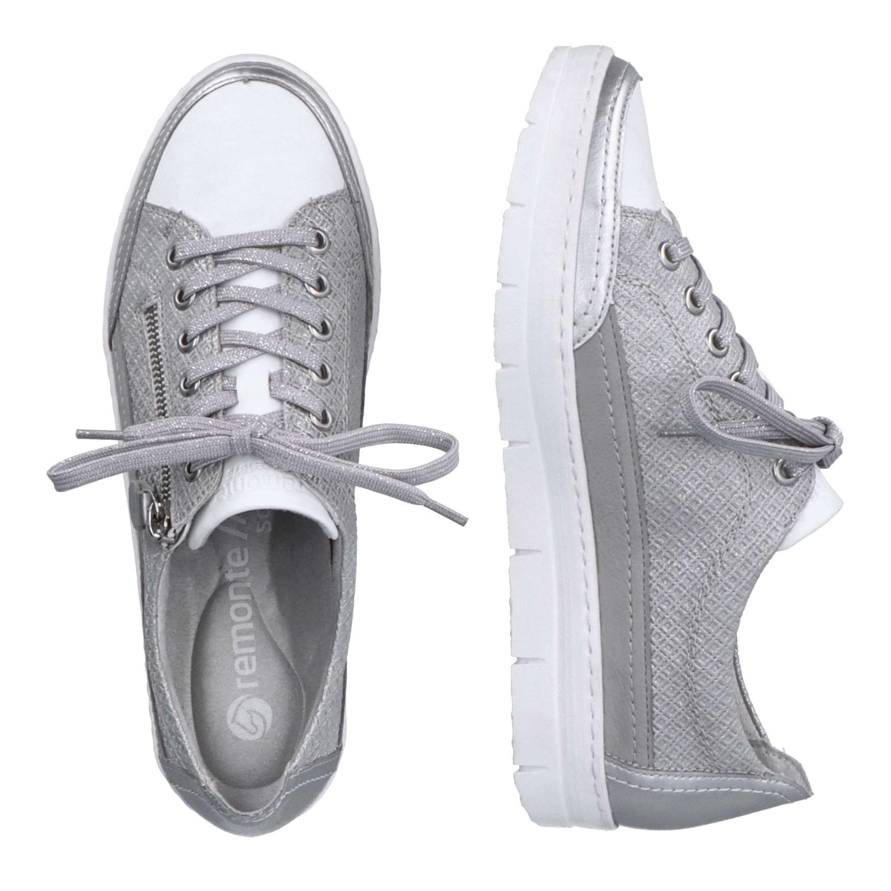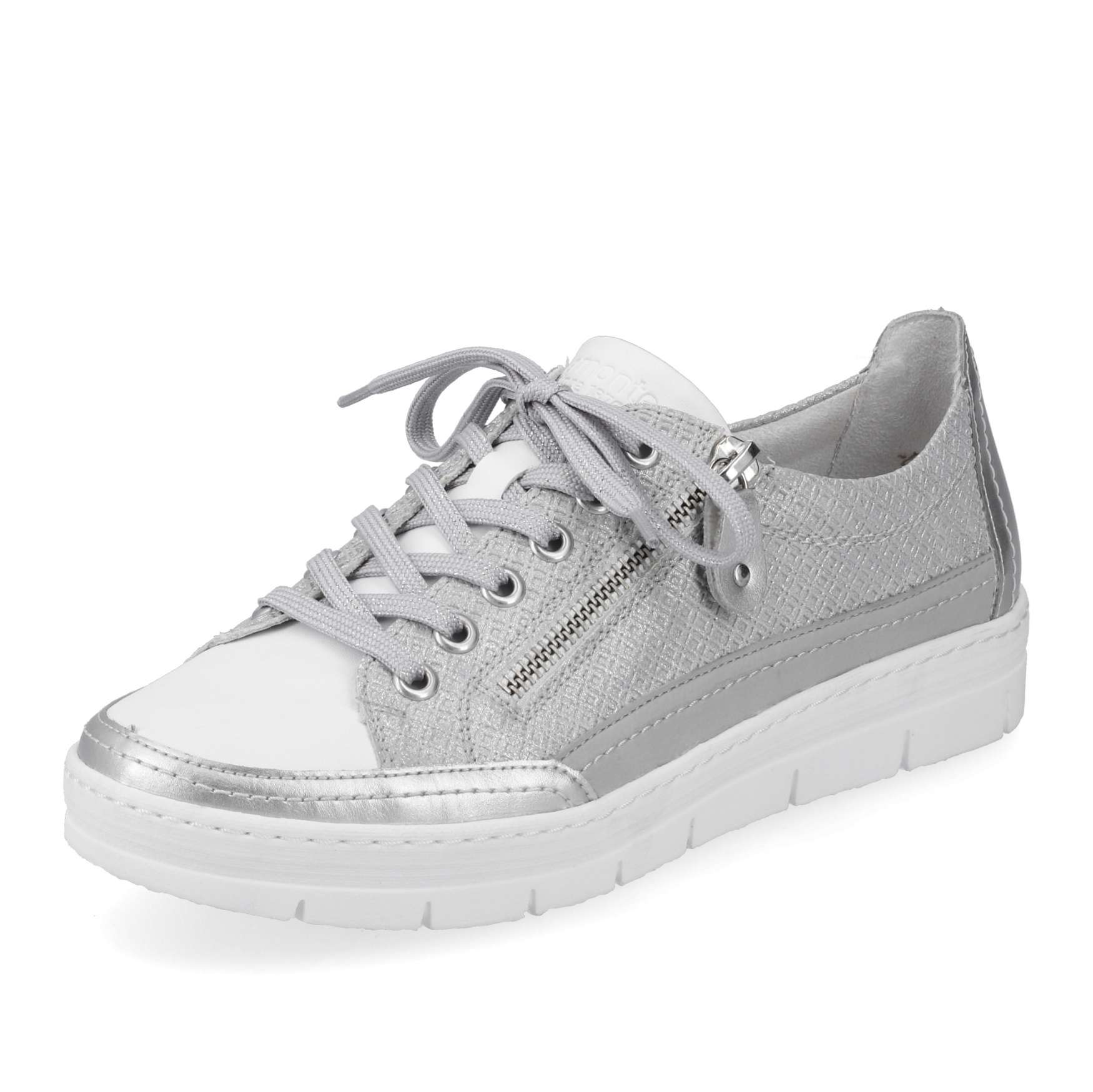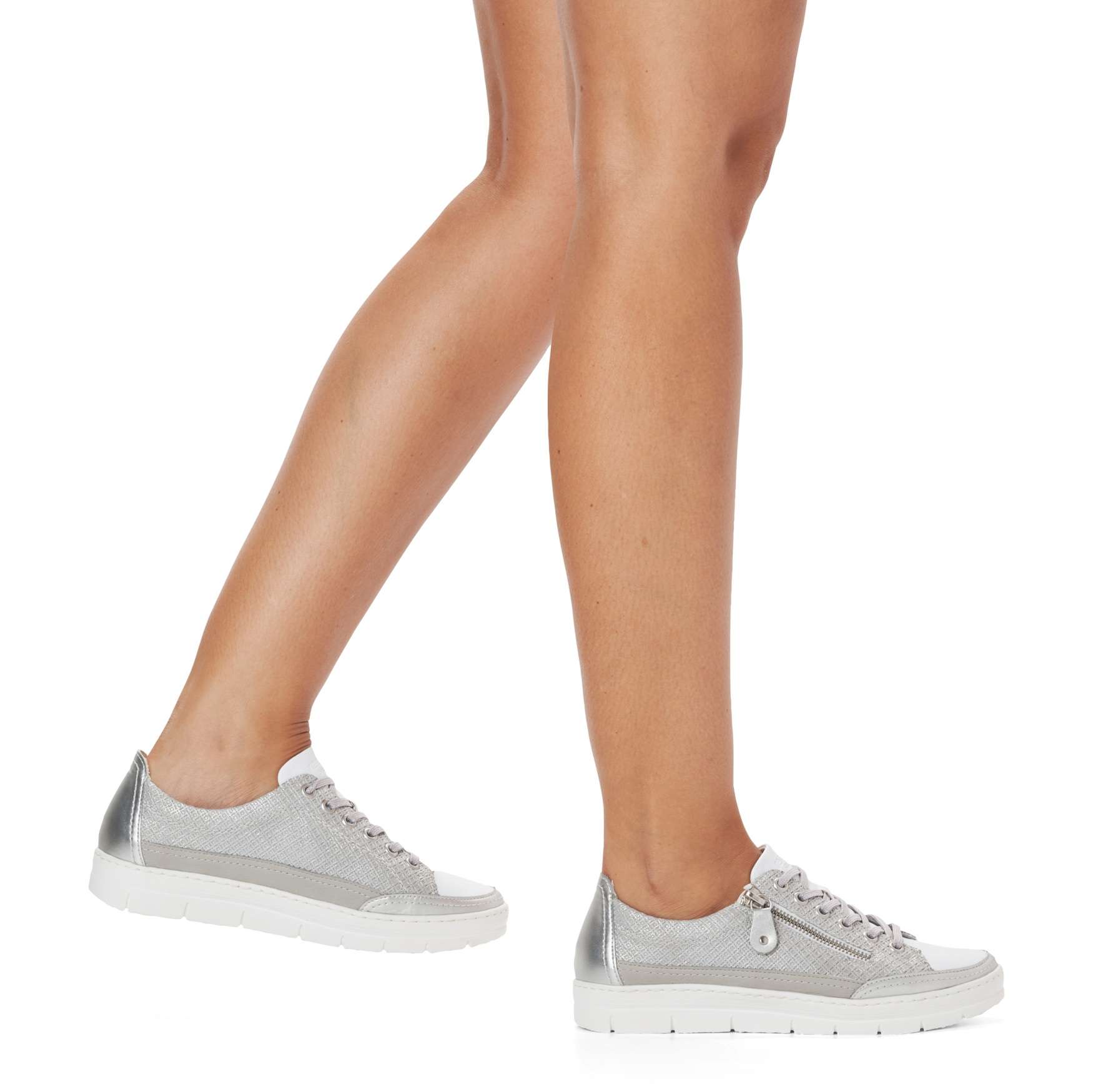 Detailní informace Obuv REMONTE je vyšší řadou značky RIEKER, obuv se vyznačuje kvalitou použitých materiálů. Tyto tenisky spojují eleganci a stylovou jistotu proto by neměly chybět ve Vaší skříňce na obuv. Zaručeně oceníte stylový vzhled svršku, který je ozdoben jemným prošíváním a lesklým materiálem. Jednoduché přizpůsobení dle Vašich požadavků zaručí šněrování šňůrkami a funkční zip. Pro Vaše maximální pohodlí na každém kroku je tady paměťová stélka, která je zároveň i vyjímatelná. Tento model tenisek oceníte na Vašich procházkách městem a skvěle budou vypadat snad se všemi outfity.