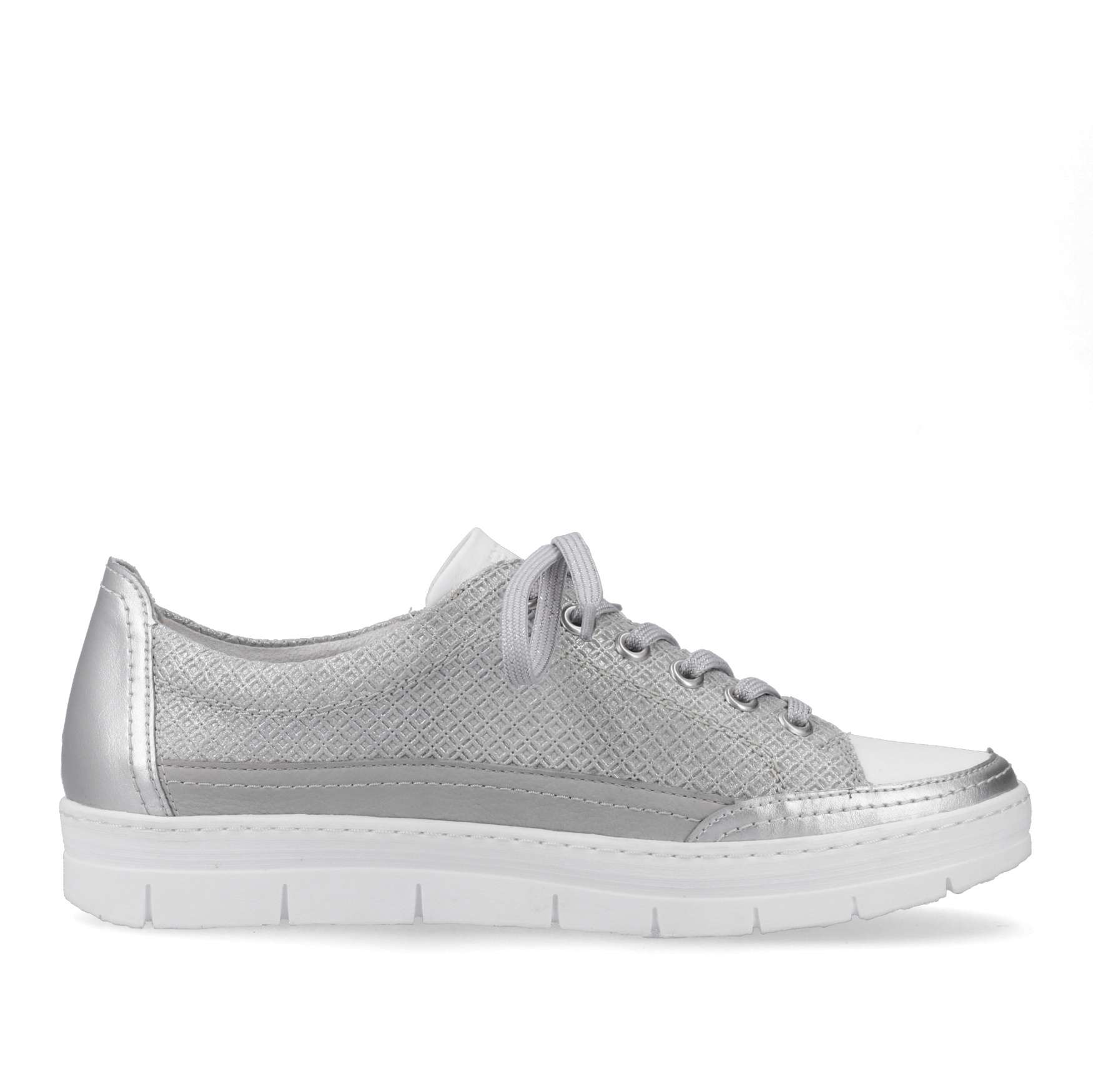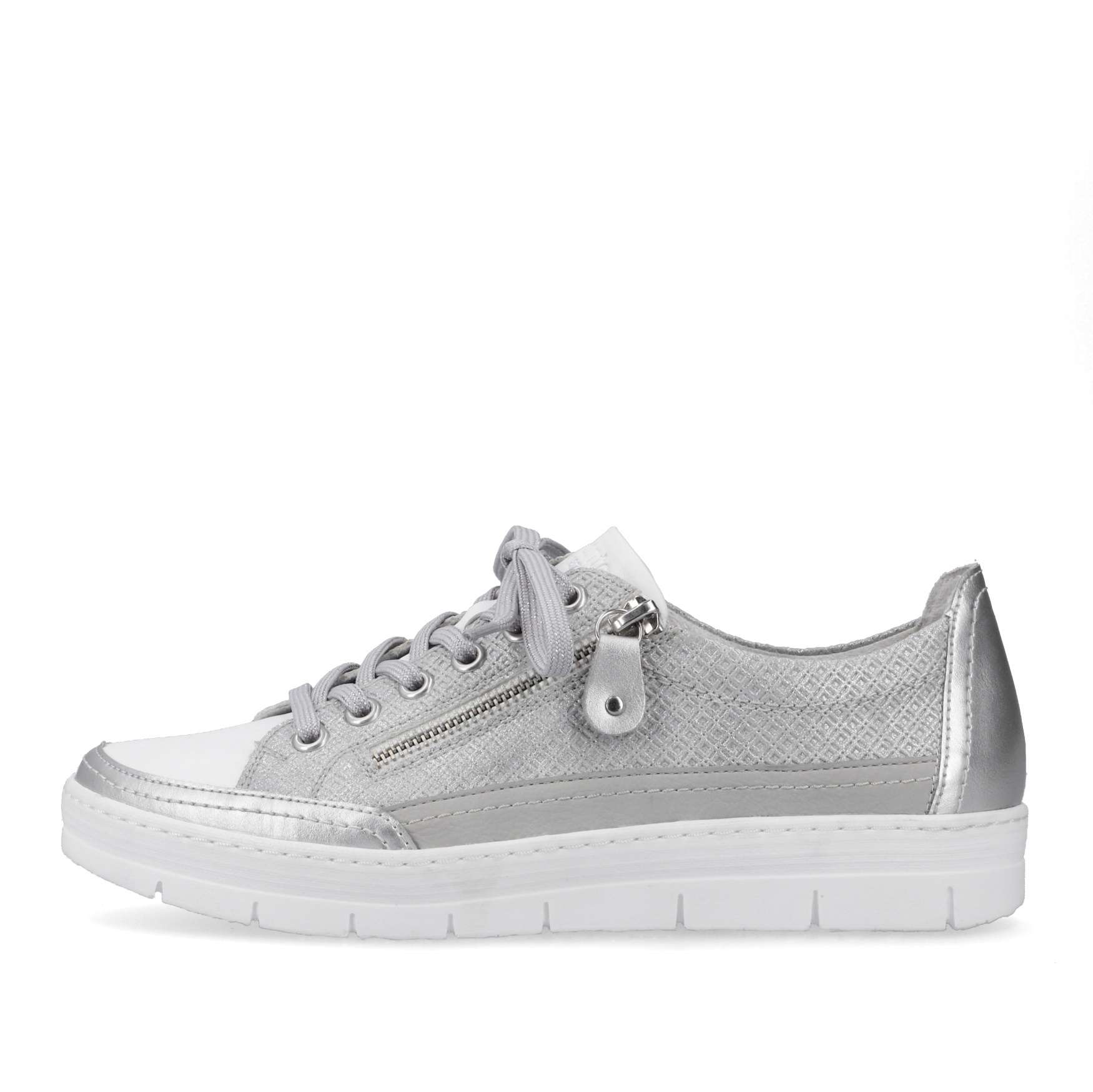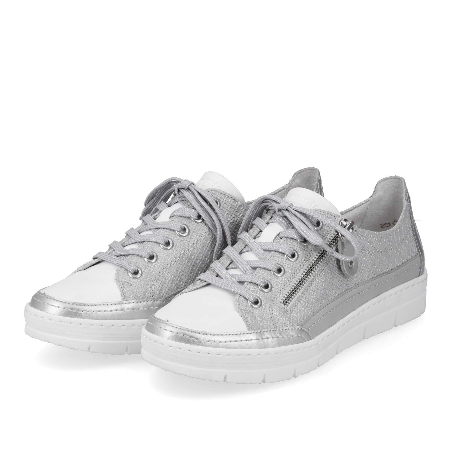 Detailní informace Obuv REMONTE je vyšší řadou značky RIEKER, obuv se vyznačuje kvalitou použitých materiálů. Tyto tenisky spojují eleganci a stylovou jistotu proto by neměly chybět ve Vaší skříňce na obuv. Zaručeně oceníte stylový vzhled svršku, který je ozdoben jemným prošíváním a lesklým materiálem. Jednoduché přizpůsobení dle Vašich požadavků zaručí šněrování šňůrkami a funkční zip. Pro Vaše maximální pohodlí na každém kroku je tady paměťová stélka, která je zároveň i vyjímatelná. Tento model tenisek oceníte na Vašich procházkách městem a skvěle budou vypadat snad se všemi outfity.