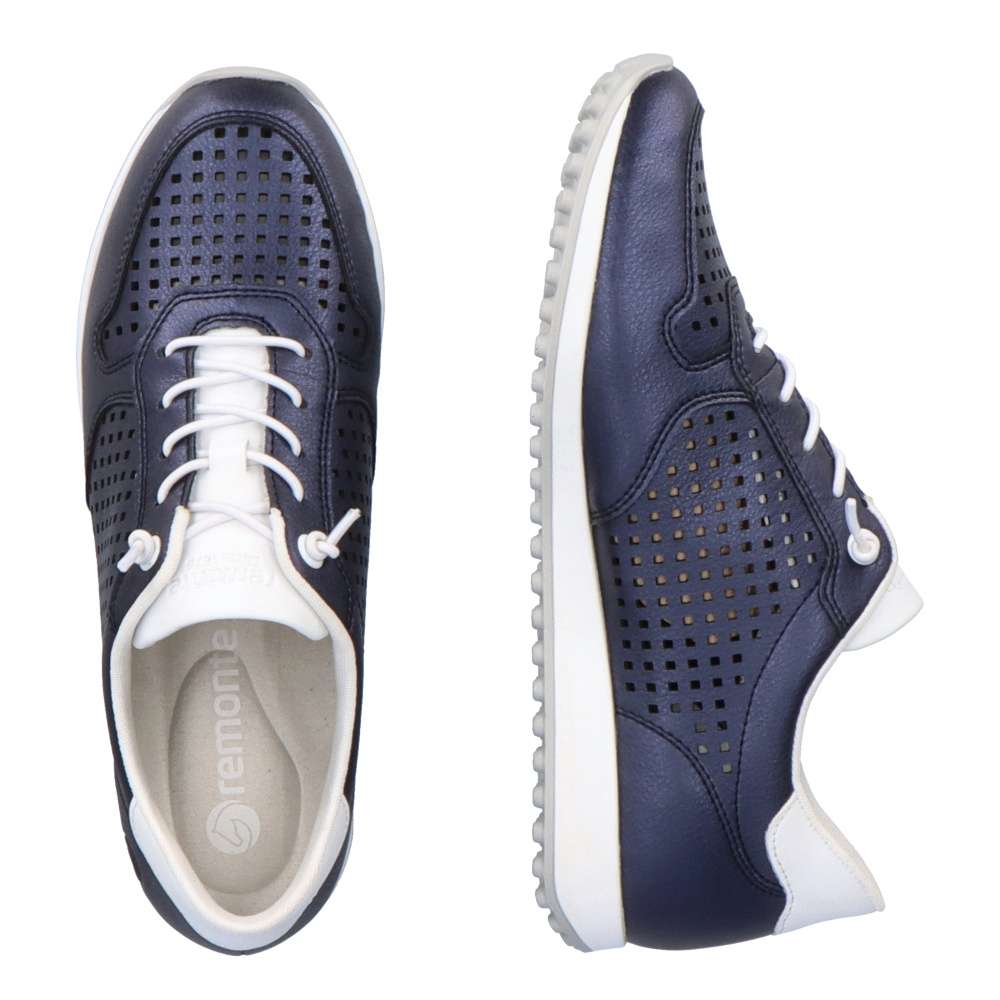 Obuv REMONTE je vyšší řadou značky RIEKER, obuv se vyznačuje kvalitou použitých materiálů. Nadčasová dámská teniska v koženém provedení, která Vás zaujme svojí perforací a střihem. Pro snadné obutí slouží šněrování v podobě pružných gumiček. Měkká vyjímatelná stélka zajistí zasloužený komfort při nošení. Celkový vzhled podtrhne stylová podešev. Tato stylová botička nesmí chybět ve vašem nákupním košíku.