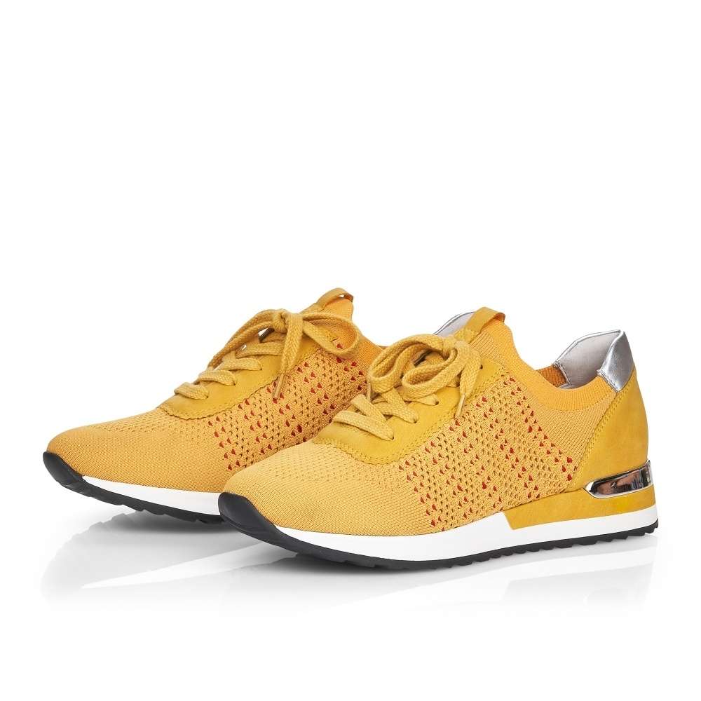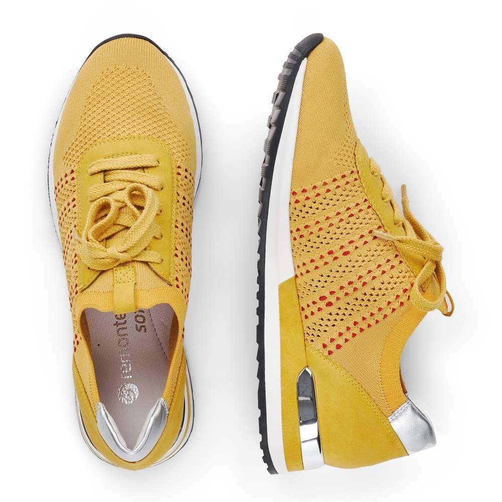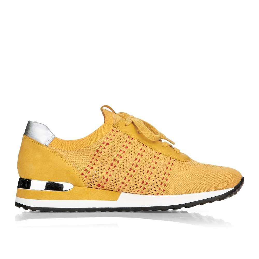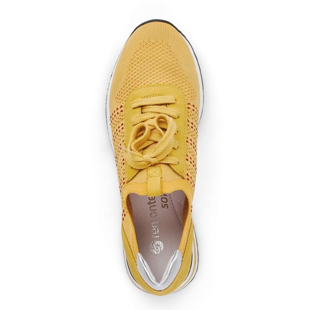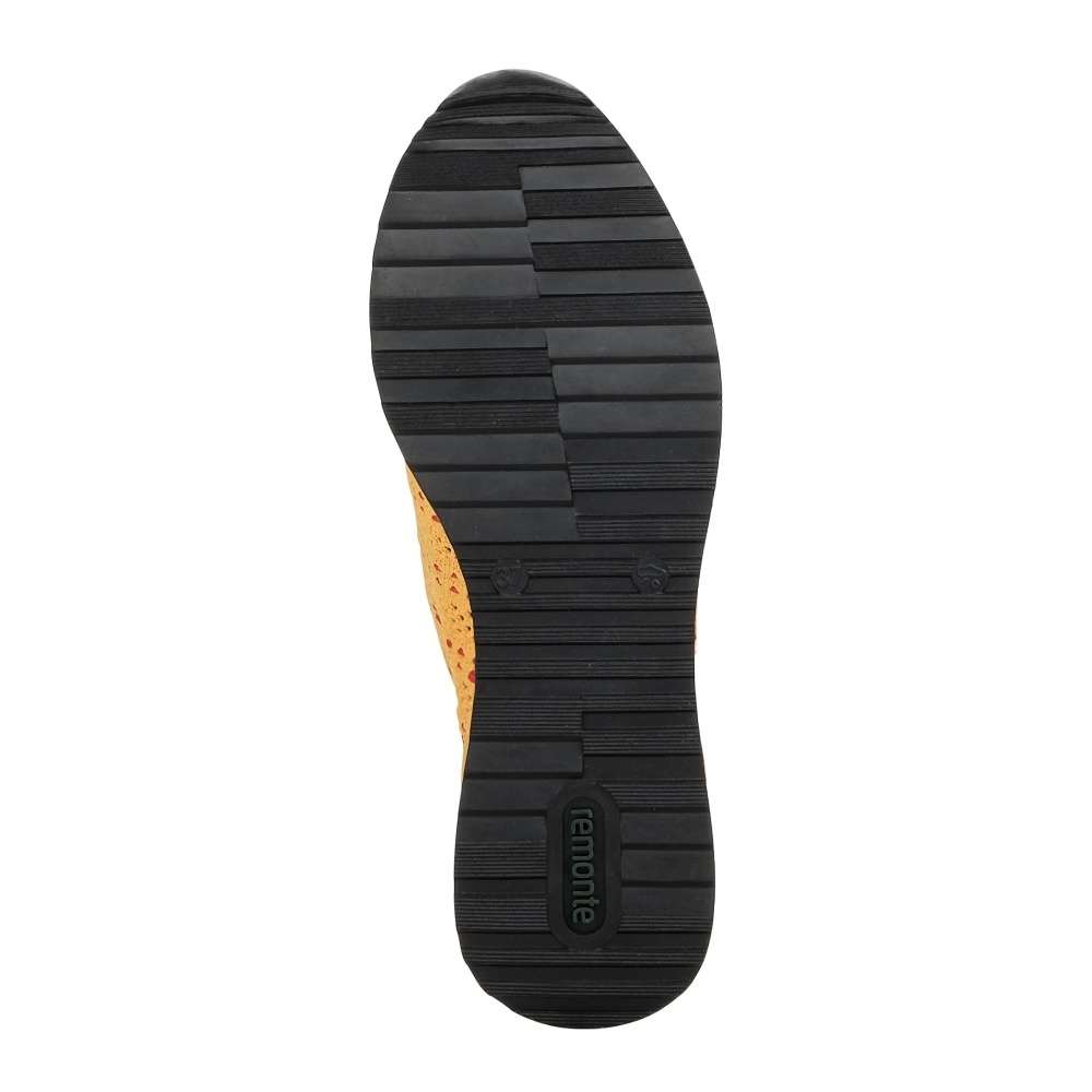 Obuv REMONTE je vyšší řadou značky RIEKER, obuv se vyznačuje kvalitou použitých materiálů, komfortnější šířkou a nadměrnými velikostmi. Tato dámská teniska Vás zaujme na první pohled svým jedinečným zpracováním. Propojení odlišných designových materiálů, jednoduché šněrování či kontrastní podešev se stříbrnou ozdobou to jsou zdobné znaky této obuvi. Pro Vaše pohodlí na každém kroku je paměťová stélka vyjímatelná. Tato obuv bude dobře vypadat s jakýmkoliv outfitem.