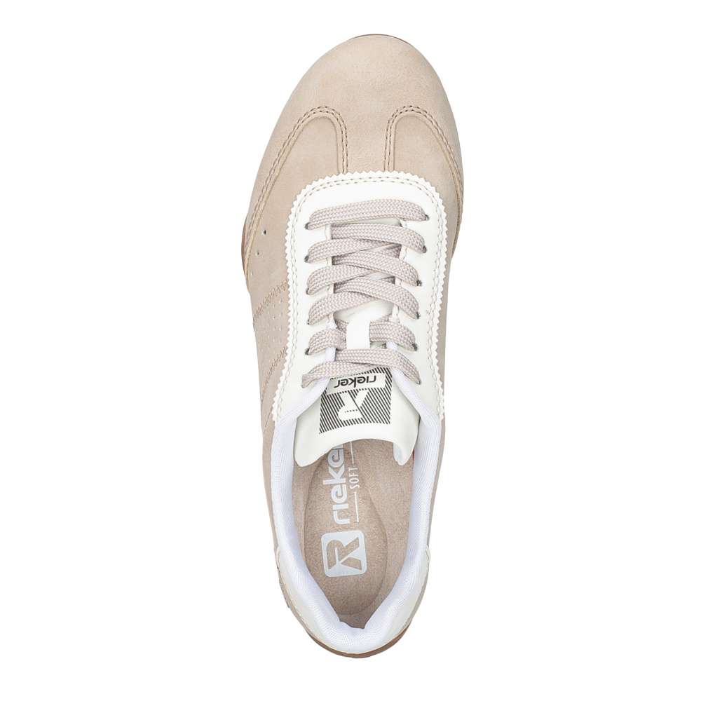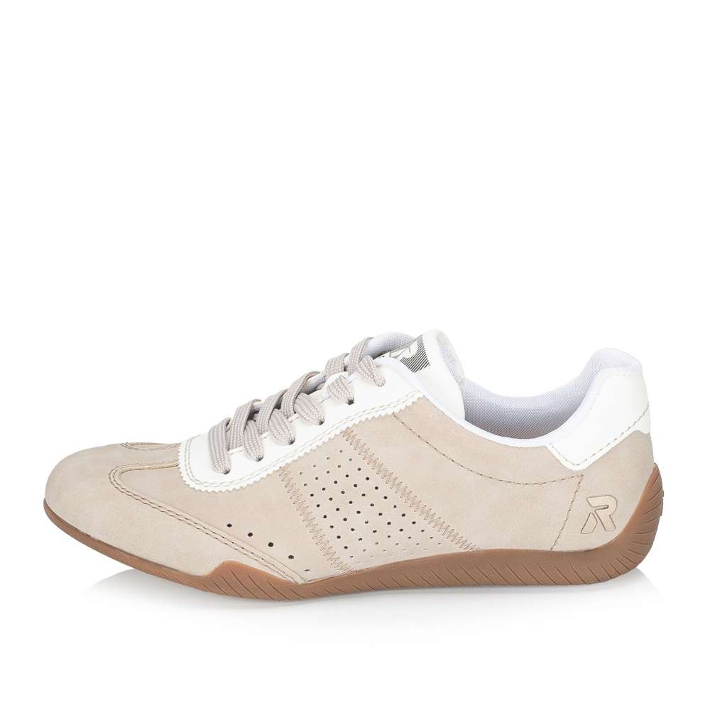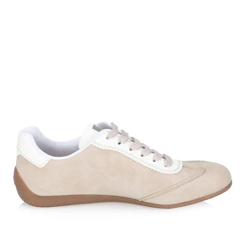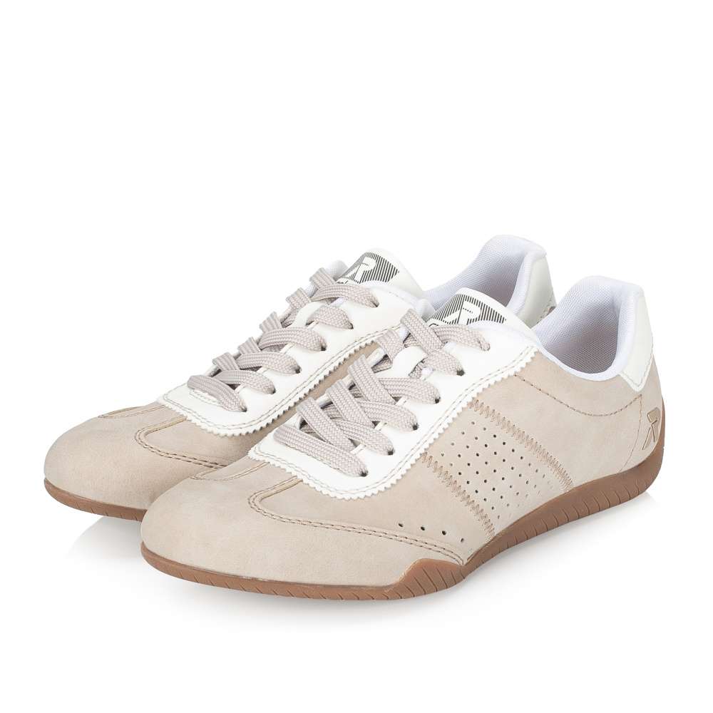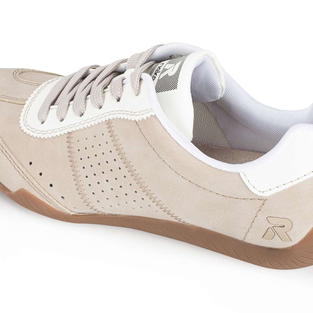 Vneste do svého šatníku svěží nádech stylu s těmito dámskými teniskami RIEKER v nadčasovém béžovém provedení. Design doplňují kontrastní bílé prvky, jemná perforace a logo značky, které botám dodávají atraktivní vzhled. Díky tomu působí tenisky stylově, ale zároveň si zachovávají univerzálnost pro každodenní nošení. O maximální pohodlí se stará vyjímatelná měkká stélka, která poskytuje příjemný pocit při každém kroku a zároveň zajišťuje optimální oporu chodidla během celého dne. Flexibilní podešev účinně tlumí nárazy při chůzi, čímž přispívá k ještě většímu komfortu. Tyto tenisky skvěle doplní každodenní outfity i volnočasové kombinace a stanou se oblíbeným kouskem ve vašem šatníku. Dokonalá souhra moderního vzhledu a maximálního pohodlí díky funkčním technologiím to jsou boty RIEKER Sport.