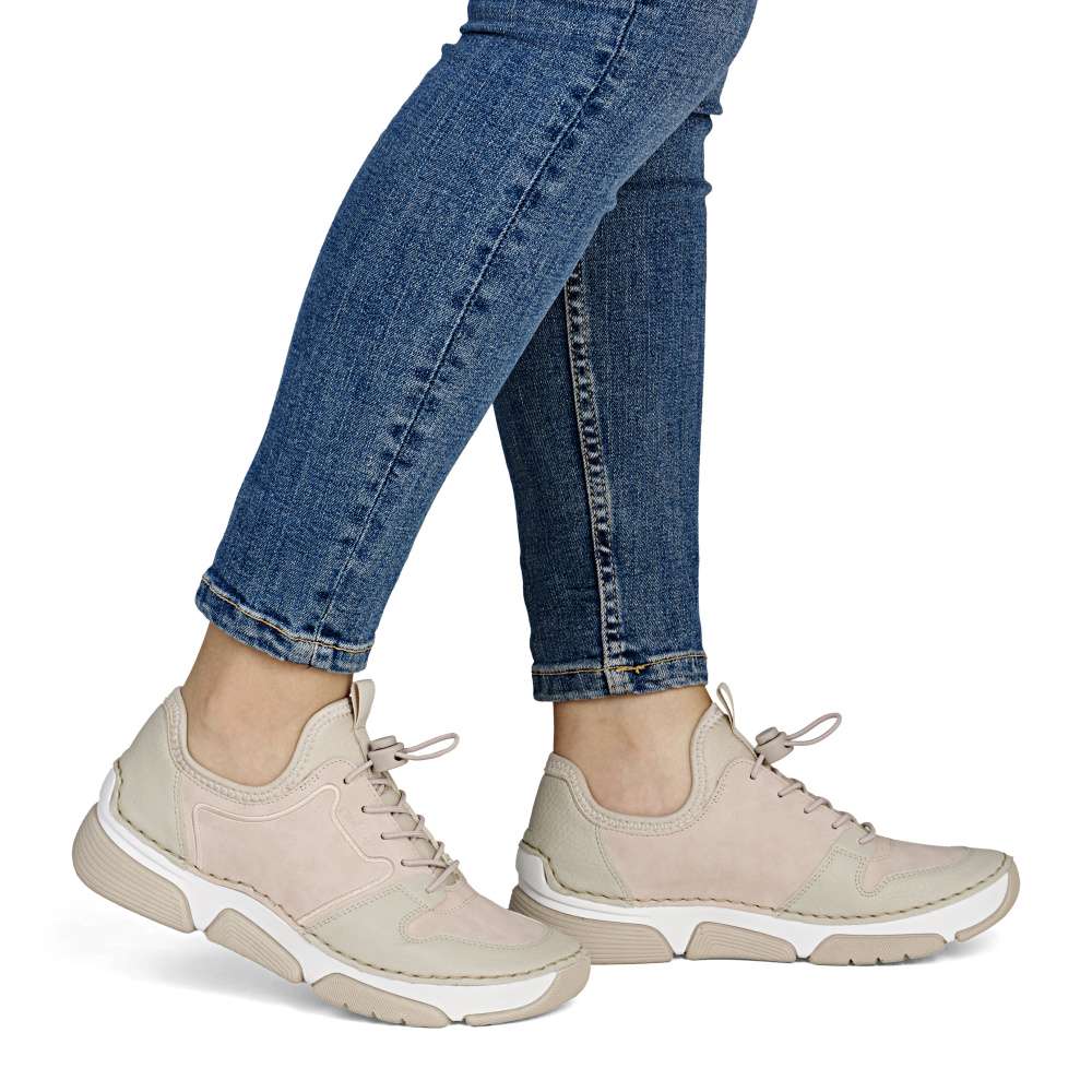 Tyto tenisky RIEKER jsou ideálním spojením originality, stylu a pohodlí. Jejich béžovo-růžový svršek je doplněný o pružný horní okraj, který umožňuje snadné obutí bez zbytečného zdržení. Šněrování gumičkou s praktickým stahovacím prvkem vám zajistí dokonalé přizpůsobení. Měkká kožená stélka se postará o celodenní komfort i při aktivním dni. Tyto tenisky se snadno kombinují s různými outfity a stanou se oblíbeným kouskem ve vašem botníku. Ať už je zvolíte pro běžné nošení, do práce nebo na víkendové procházky, vždy vám dopřejí pohodlí a stylový vzhled.