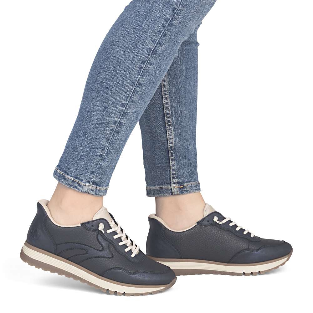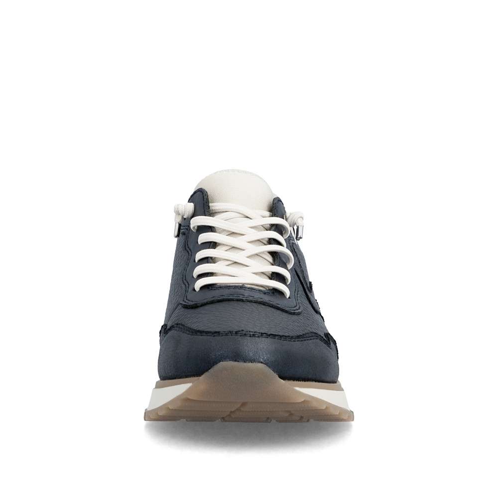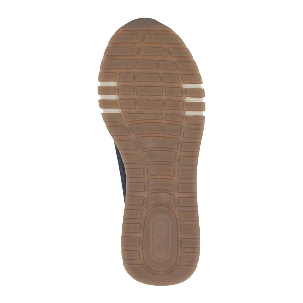Tyto tenisky RIEKER dokazují, že sportovní obuv nemusí být jen praktická – může být také stylová. Tmavě modrý svršek s působivými liniemi a světlý odstín na nártu vytváří moderní a svěží kontrast, který okamžitě upoutá pozornost. Namísto šněrování je pružná gumička usnadňující nazutí a vyjímatelná stélka svou měkkostí vytvoří dokonalý komfort při nošení. Podešev s propracovaným designem tlumí nárazy a zajistí pohodlí po celý den – ať už jste na procházce, ve městě nebo na rychlém výletu.