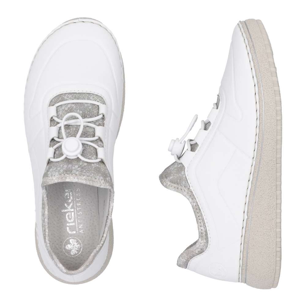 Ráda byste uvítala boty, ve kterých se vám bude chodit jako v bavlnce? Tak právě teď díváte na takové. Ano, jsou to přesně tyto kožené boty značky RIEKER, které mají namísto šněrování pružnou gumičku, která výrazně usnadní obouvání, protože stačí pouze utáhnout a hotovo. Velkou výhodou je také elastická textilie v oblasti horního okraje, díky čemuž se Vám do boty bude snazší dostávat. K botám si můžete klidně vzít vaše oblíbené kalhoty a vyjít za kamarádkami.