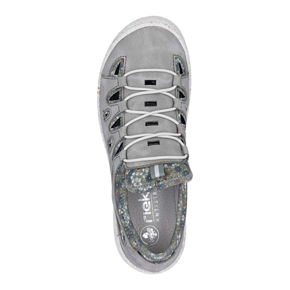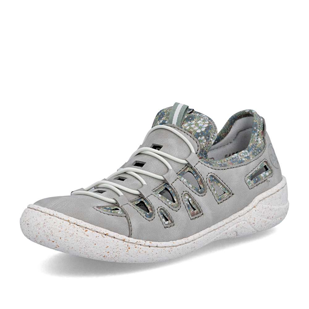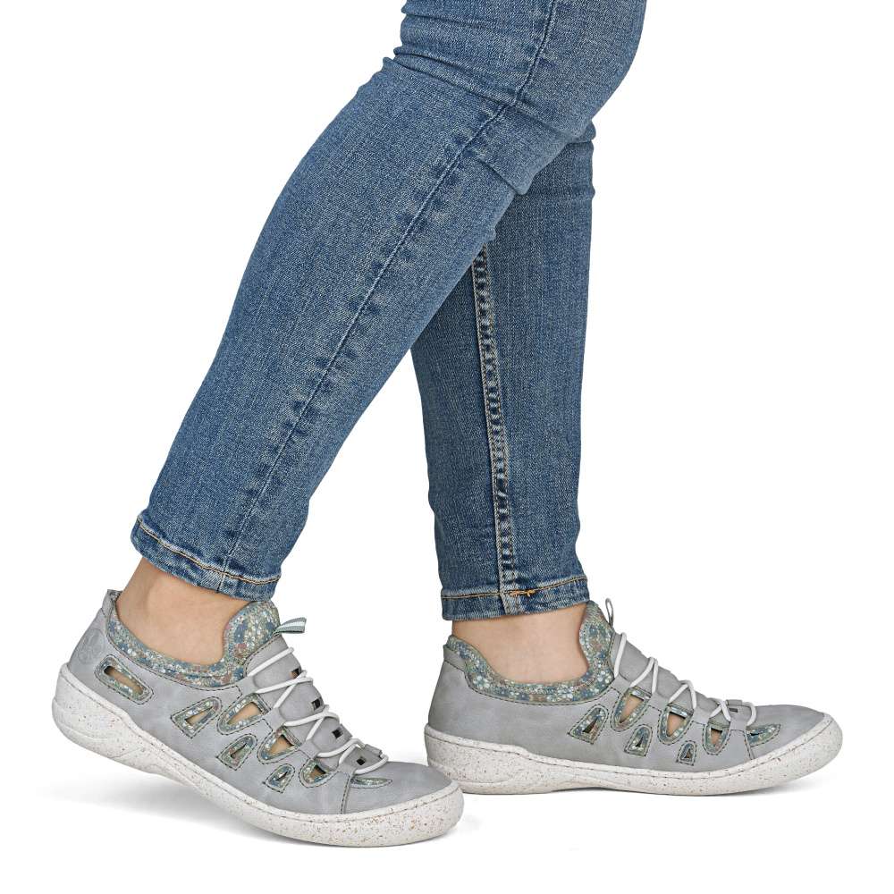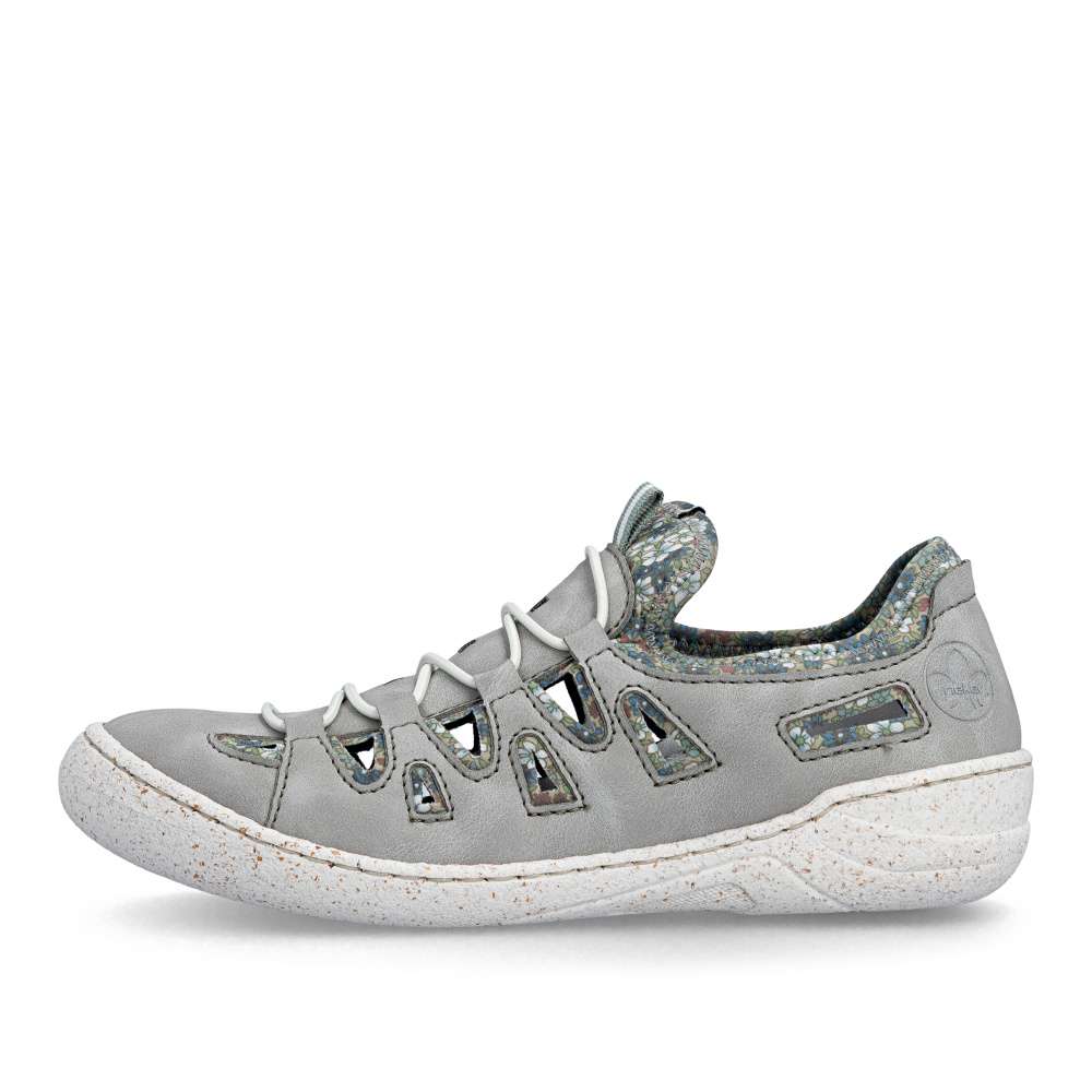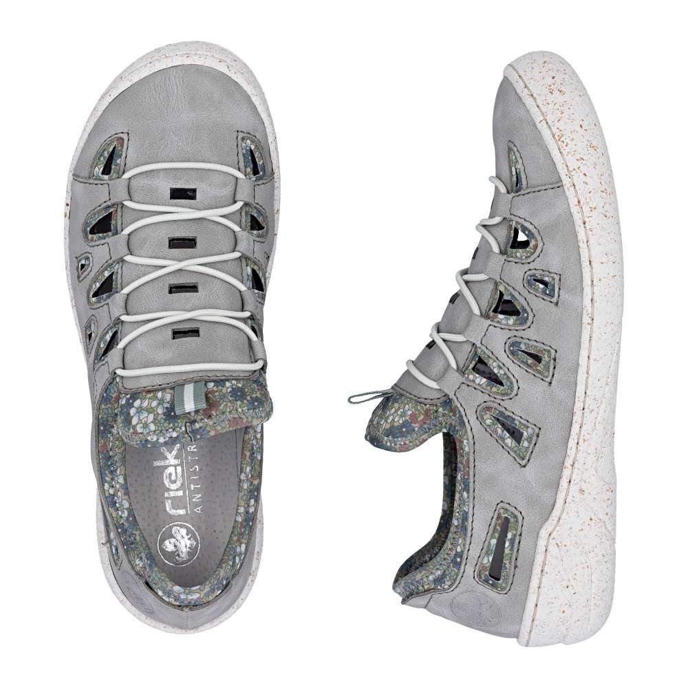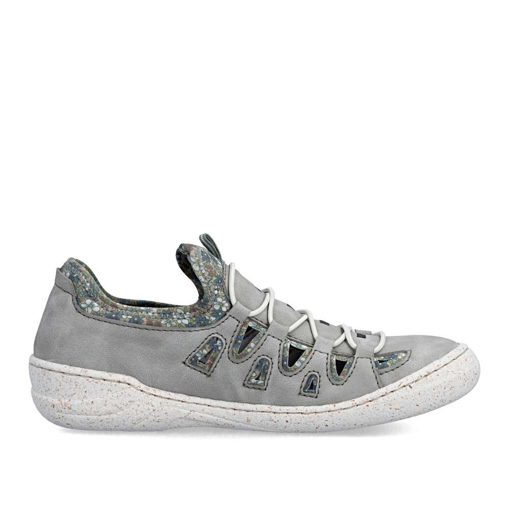 Tyto pohodlné boty značky Rieker jsou navrženy s ohledem na vaše pohodlí, s výraznou perforací na svršku umožňují maximální prodyšnost pro komfortní pocit i za horkého počasí. Atraktivní vzhled těchto bot vytváří kombinace šedého materiálu svršku a textilního materiálu s půvabným potiskem, který dodává obuvi originální charakter. Textilní část zároveň zajišťuje snadné a rychlé nazutí bez potřeby šněrování, takže si boty obujete pohodlně a bez námahy. Kožená stélka, širší střih a flexibilní podešev tlumící nárazy při chůzi poskytnou dokonalý komfort při nošení. Tyto boty RIEKER jsou ideální volbou pro ženy, které chtějí spojit styl, pohodlí a moderní design – ideální pro běžné nošení, do práce i pro volnočasové aktivity.