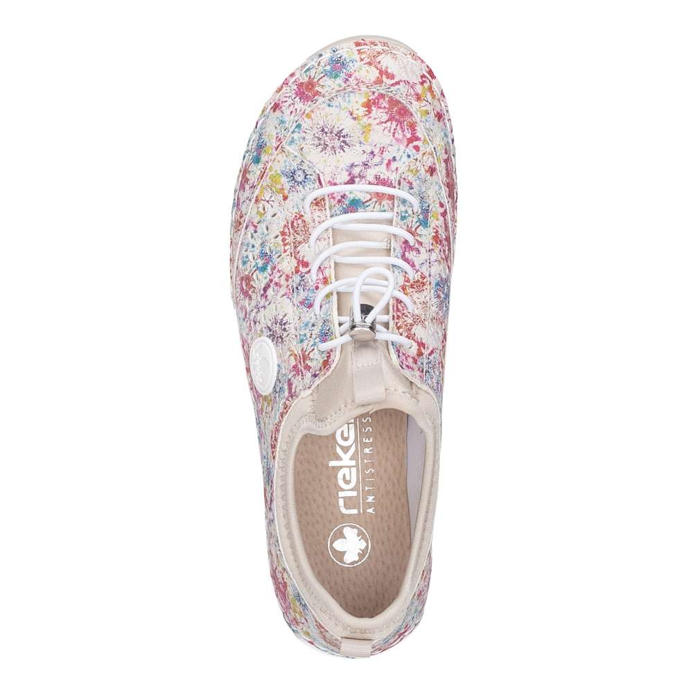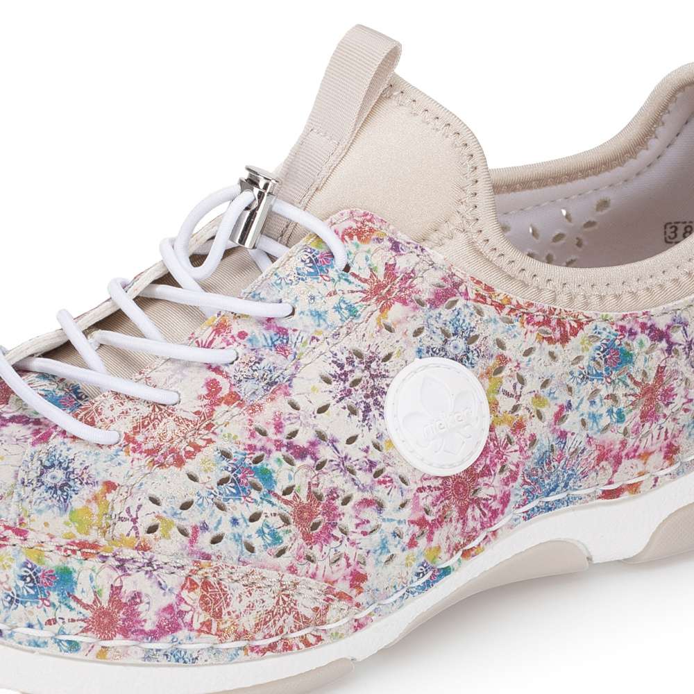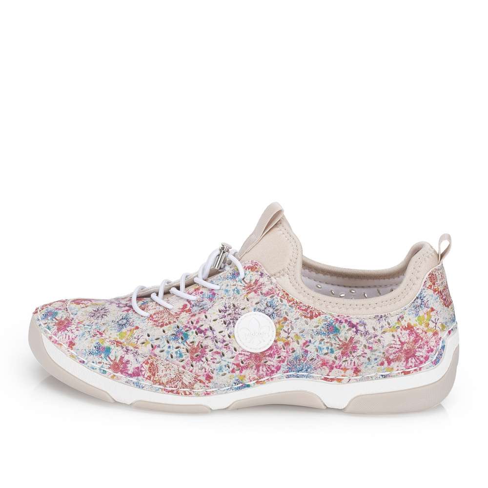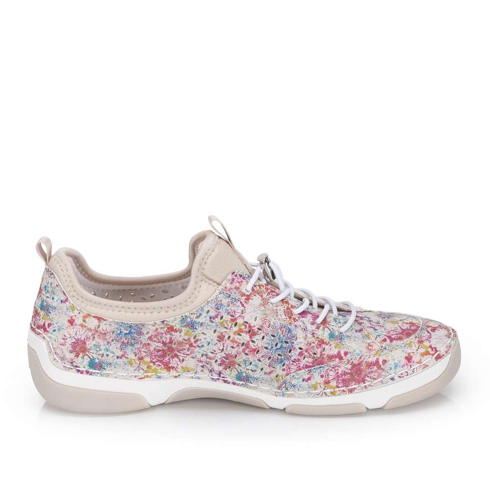 Nepřehlédnutelný model bot RIEKER zaujme na první pohled výrazným barevným potiskem, který dodává obuvi jedinečný charakter. Minimalistická perforace jemně doplňuje design a zároveň podporuje prodyšnost. Decentní logo značky podtrhuje originalitu a kvalitu zpracování. Pružný lem horního okraje usnadňuje obouvání a pružná gumička dotváří moderní vzhled modelu. Kožená stélka poskytuje příjemný došlap a flexibilní podešev s tlumením nárazů přináší lehkost kroku. Tento model RIEKER je ideální volbou pro ženy, které se nebojí barev, chtějí zaujmout a zároveň si dopřát maximální pohodlí.