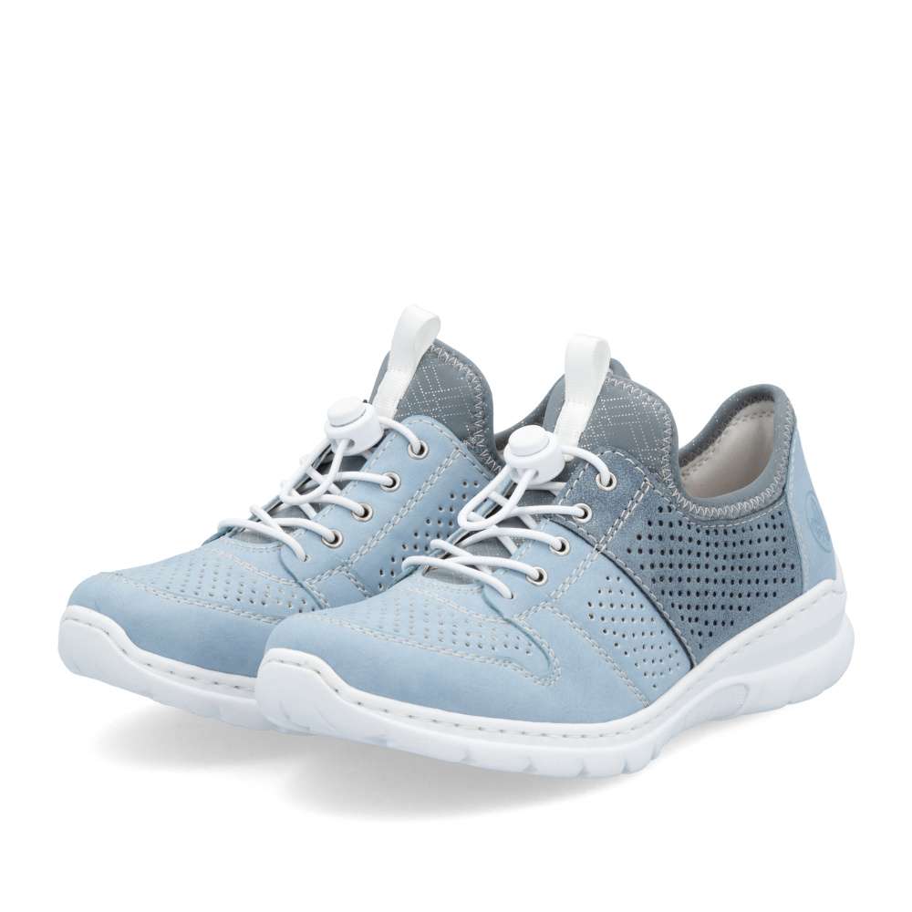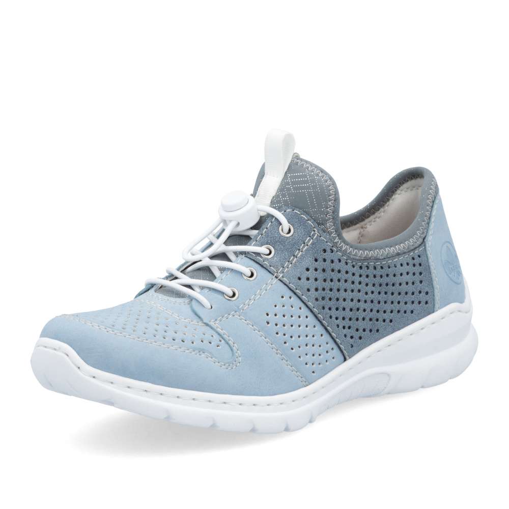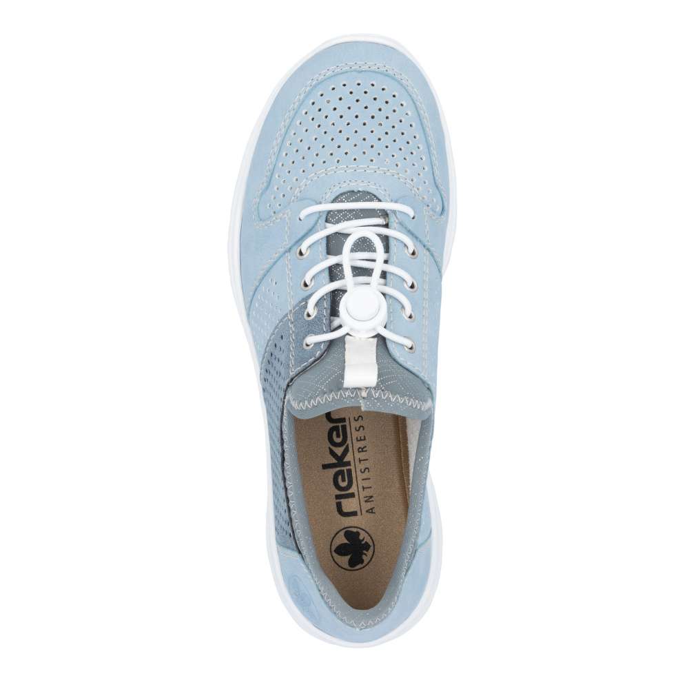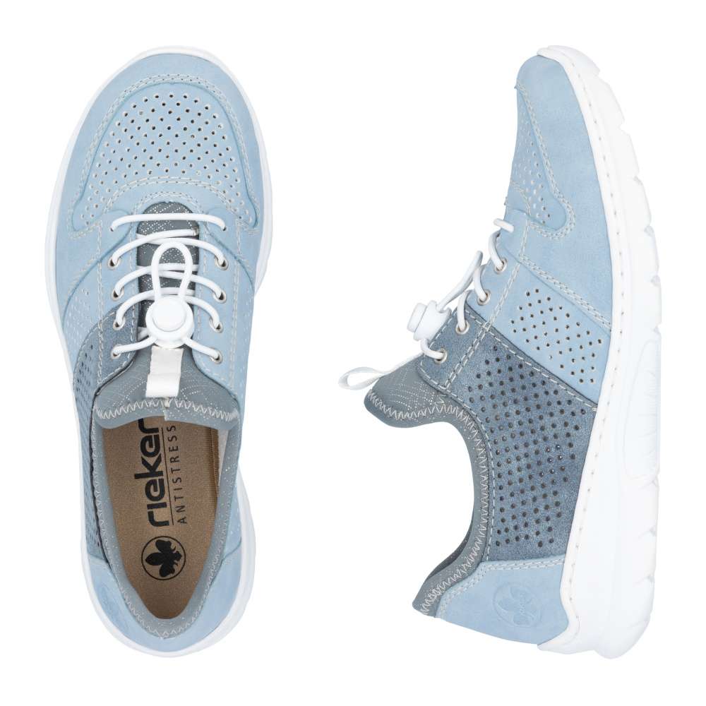 Tenisky RIEKER jsou ideálním spojením stylového vzhledu a vyjímečného pohodlí. Kombinace modrých odstínů s jemným perforovaným vzorem a logem značky působí velmi efektně. Pružný lem horního okraje spolu se šněrováním gumičkou se stahovacím prvkem zaručuje snadné obutí a skvělý komfort. Pohodlí při nošení vytváří měkká stélka z paměťové pěny a flexibilní podešev, které přispívají k dokonalému pocitu pohodlí po celý den. Ideální tenisky pro ženy hledající stylové a pohodlné boty pro aktivní dny i volnočasové aktivity. Technologie: Antistress – díky čtyřem antistresovým vlastnostem – lehkosti, pružnosti, prostornosti a vynikající absorpci nárazů – vám boty RIEKER nabídnou komfortnější chůzi. MemoSoft – unikátní stélka z paměťové pěny, která změkčuje došlap, maximálně se přizpůsobí tvaru Vašeho chodidla.