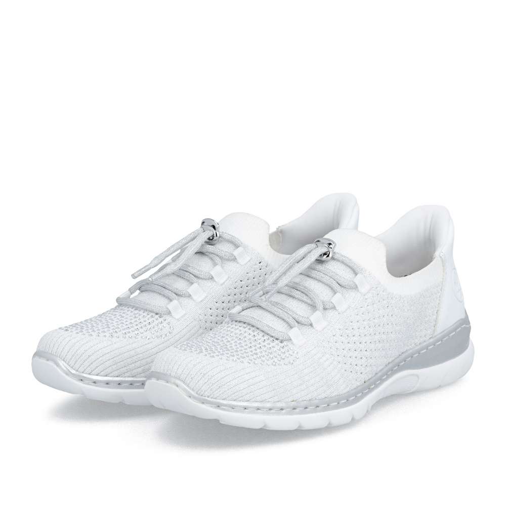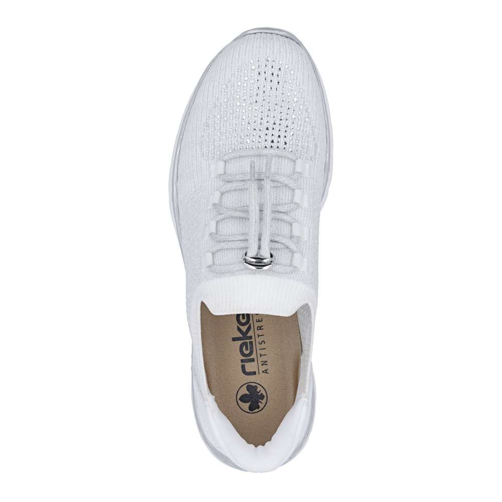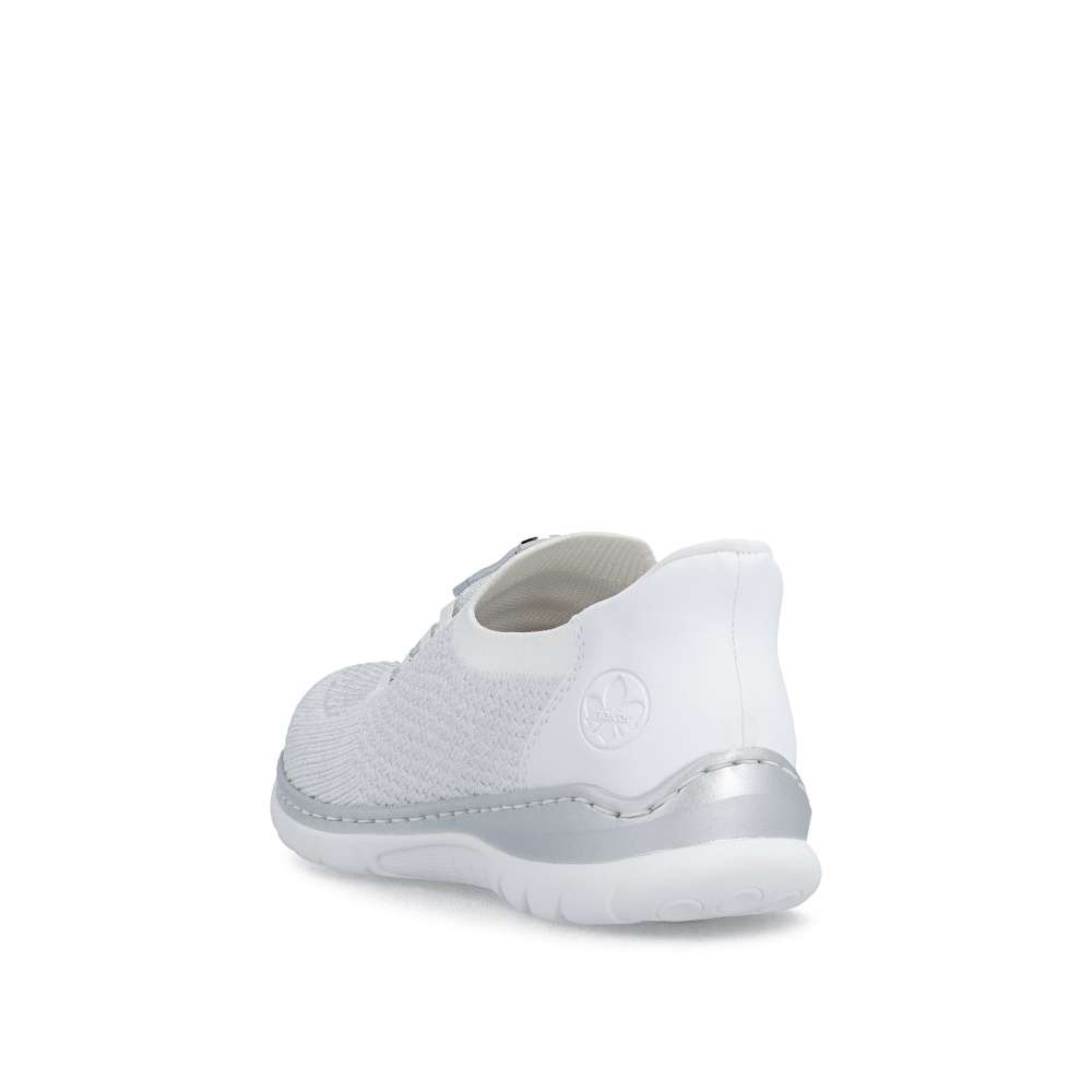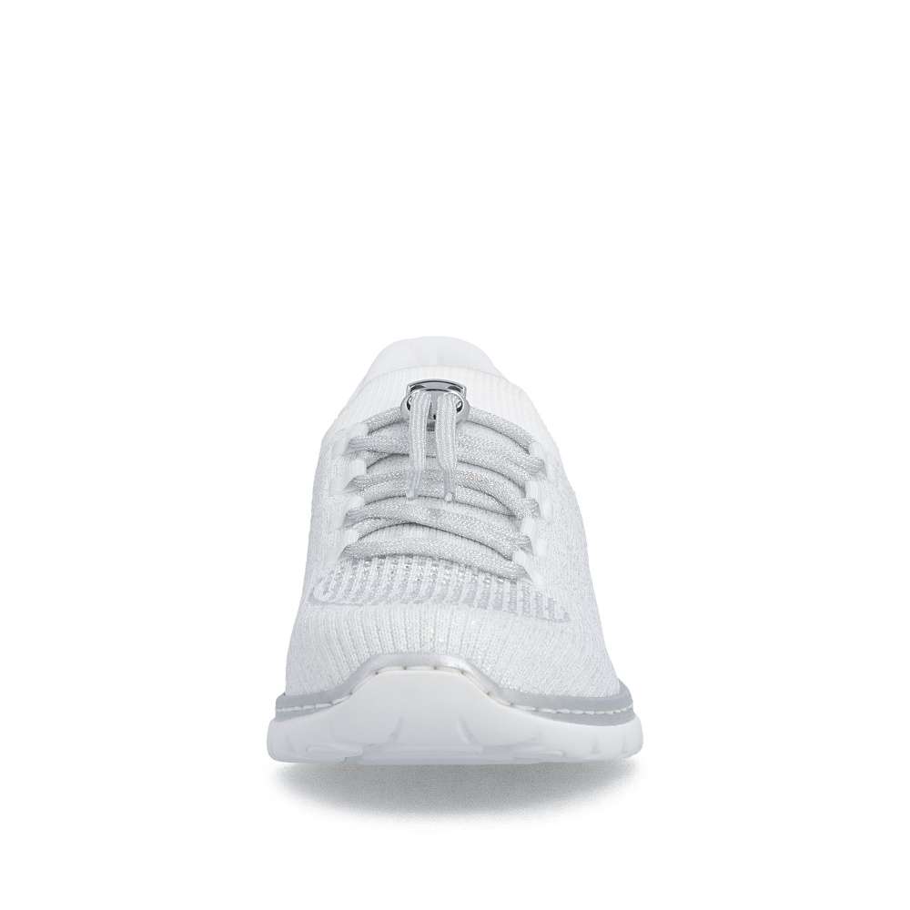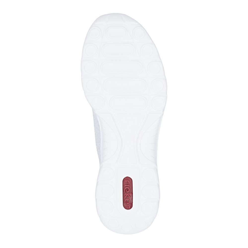 Tyto tenisky RIEKER přinášejí lehkost každého kroku díky promyšlené konstrukci a maximálnímu důrazu na pohodlí. Svěží bílé provedení s jemnými odlesky zaujme na první pohled a dodá vašemu outfitu moderní nádech, zatímco příjemný textilní svršek se přirozeně přizpůsobí tvaru chodidla. Jednoduché a rychlé obutí zajišťuje pružný materiál horní části, který se přirozeně přizpůsobí tvaru chodidla. Atraktivní gumička v oblasti nártu podtrhuje originalitu modelu a je pouze dekoračním prvkem. Uvnitř se nachází měkká stélka z paměťové pěny, která se přizpůsobí chodidlu a zjemní každý došlap. Stabilní a flexibilní podešev poskytuje jistotu při každém kroku, díky čemuž jsou tyto tenisky ideální pro městské procházky, volnočasové aktivity i celodenní nošení. Tyto tenisky jsou dokonalou kombinací stylu, praktických detailů a vyjímečného komfortu – ideální volba pro ženy, které chtějí vypadat moderně a cítit se skvěle během celého dne.
