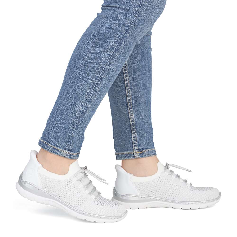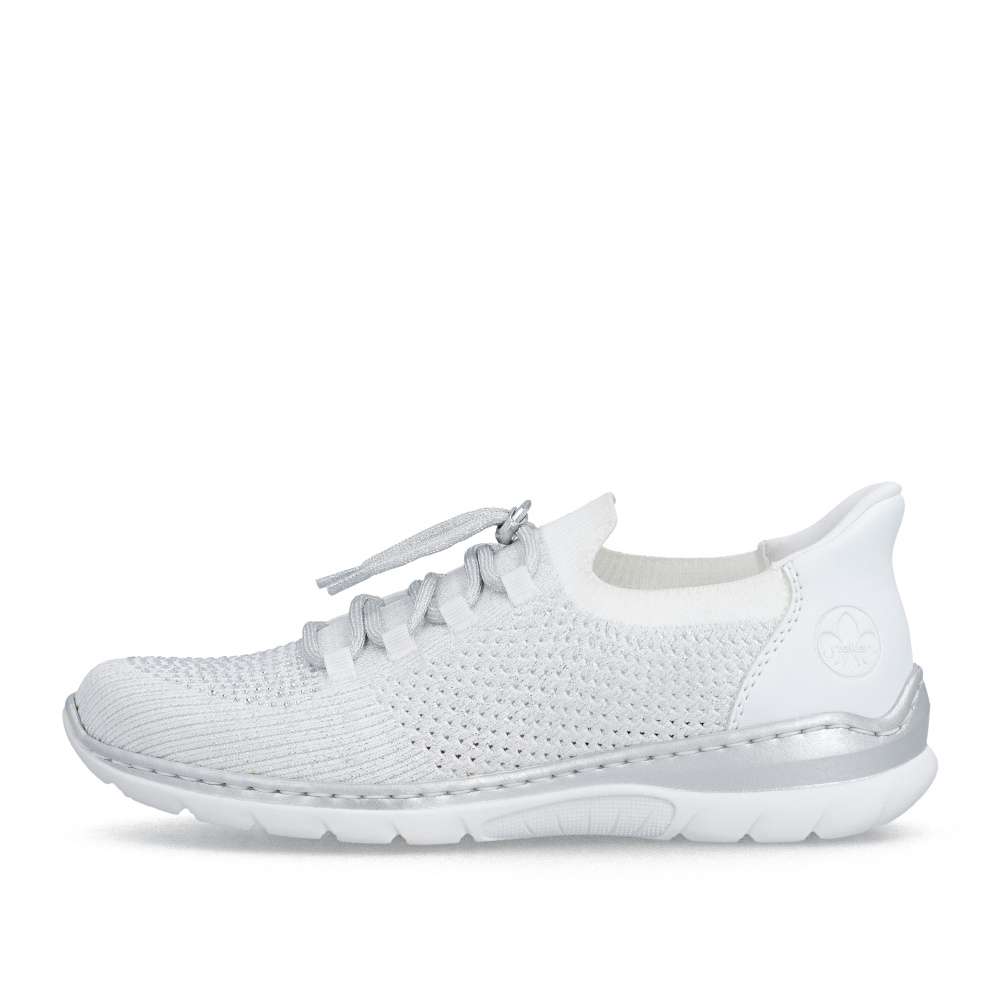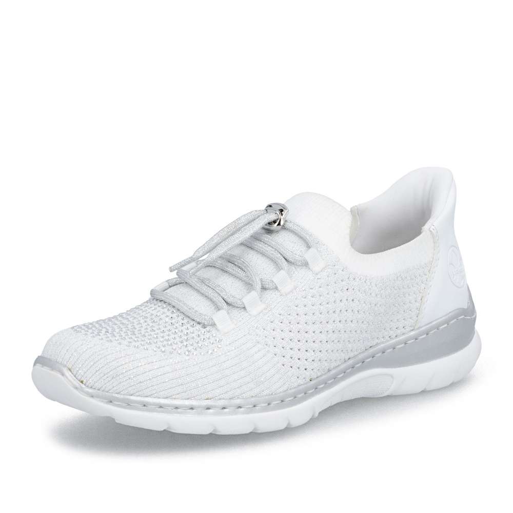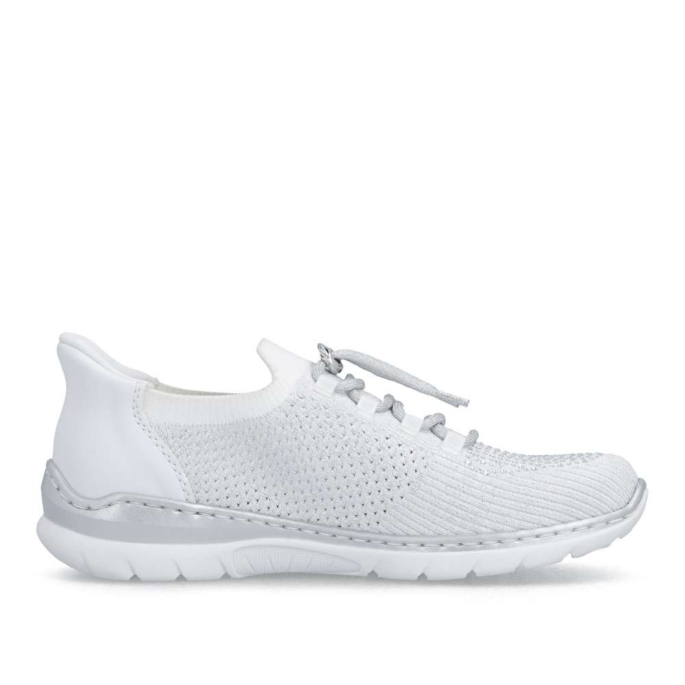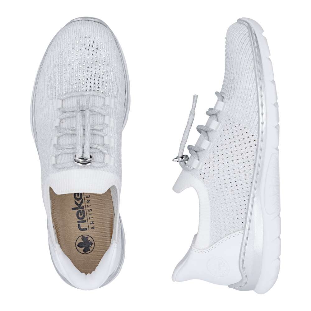 Tyto tenisky RIEKER přinášejí lehkost každého kroku díky promyšlené konstrukci a maximálnímu důrazu na pohodlí. Svěží bílé provedení s jemnými odlesky zaujme na první pohled a dodá vašemu outfitu moderní nádech, zatímco příjemný textilní svršek se přirozeně přizpůsobí tvaru chodidla. Jednoduché a rychlé obutí zajišťuje pružný materiál horní části, který se přirozeně přizpůsobí tvaru chodidla. Atraktivní gumička v oblasti nártu podtrhuje originalitu modelu a je pouze dekoračním prvkem. Uvnitř se nachází měkká stélka z paměťové pěny, která se přizpůsobí chodidlu a zjemní každý došlap. Stabilní a flexibilní podešev poskytuje jistotu při každém kroku, díky čemuž jsou tyto tenisky ideální pro městské procházky, volnočasové aktivity i celodenní nošení. Tyto tenisky jsou dokonalou kombinací stylu, praktických detailů a vyjímečného komfortu – ideální volba pro ženy, které chtějí vypadat moderně a cítit se skvěle během celého dne.