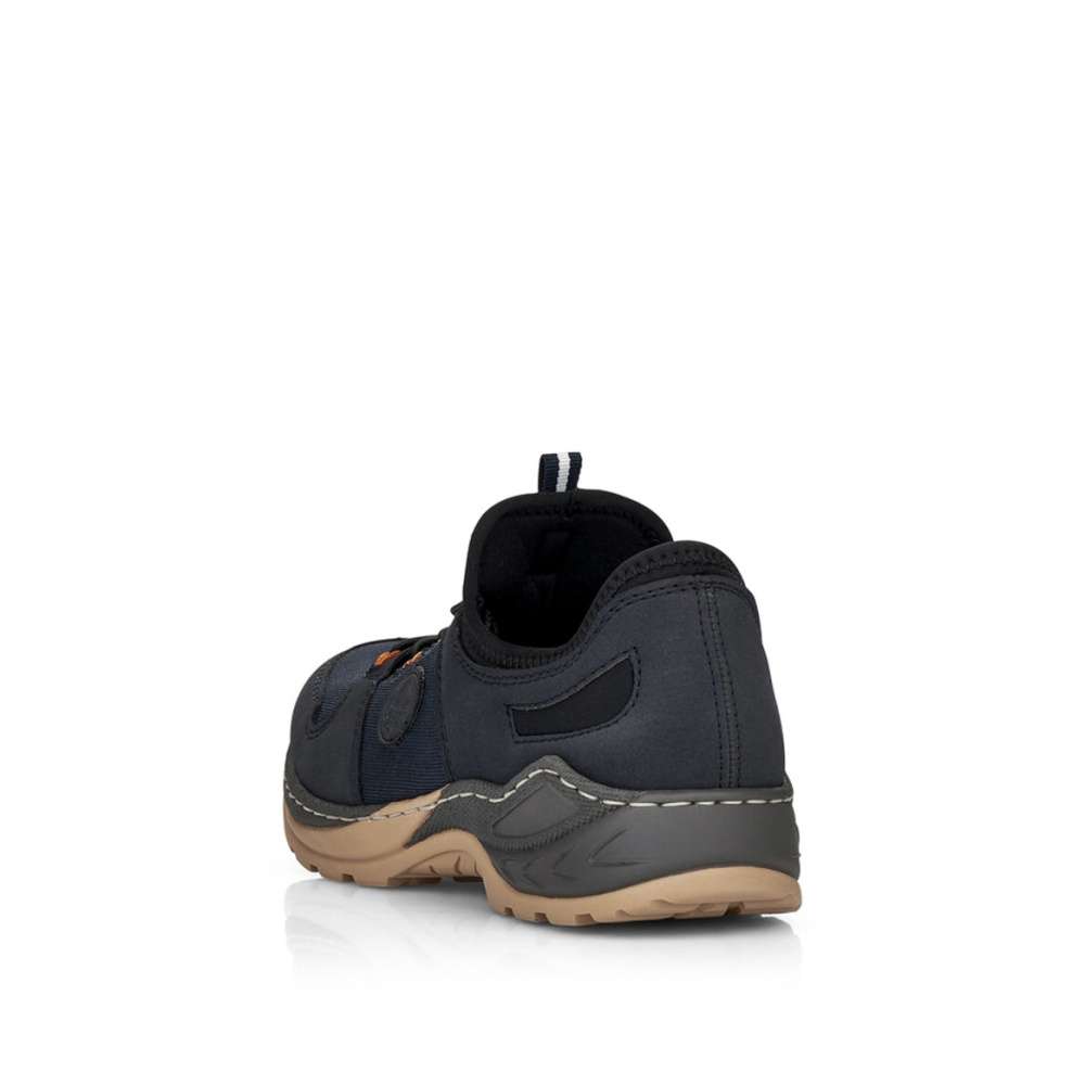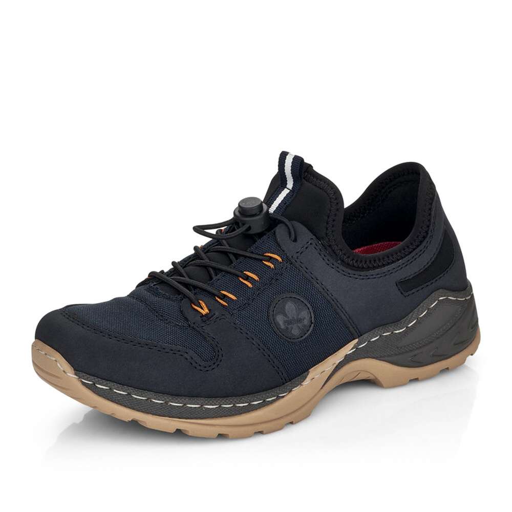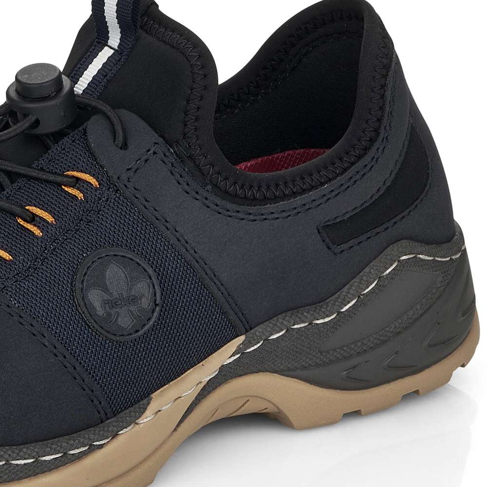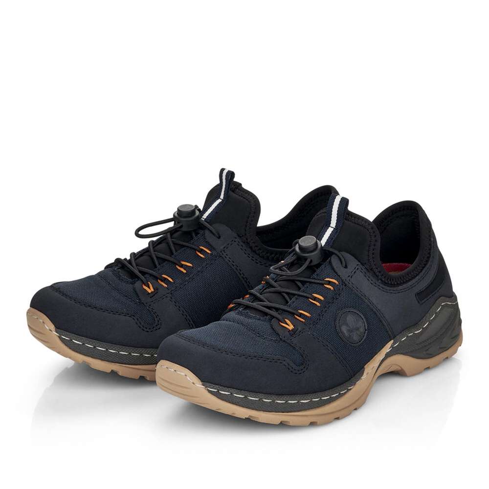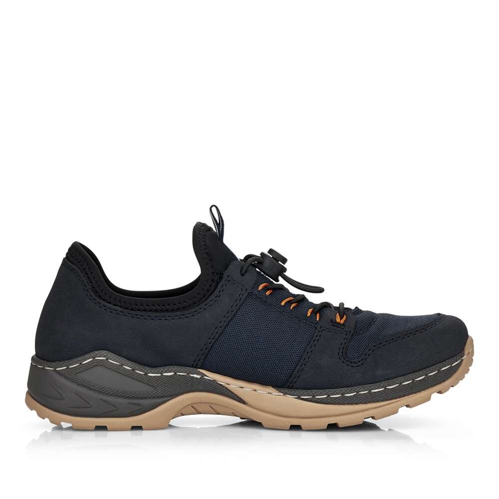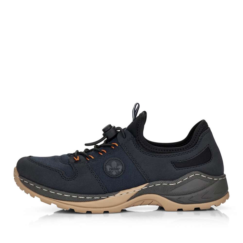 Detailní informace Dámská obuv od značky RIEKER s kontrastně barevnou podešví a tmavě modrým svrškem s kombinací materiálů. K obouvání Vám skvěle napomůže poutko při horním okraji a pružnou gumičkou si je můžete utáhnout přesně podle Vašich představ. Jistě také oceníte vyjímatelnou stélku z paměťové pěny, která dodá běžné chůzi pohodlnost a komfort. Tento model bude tím pravým pro vycházky do přírody nebo pro výlety s rodinou.