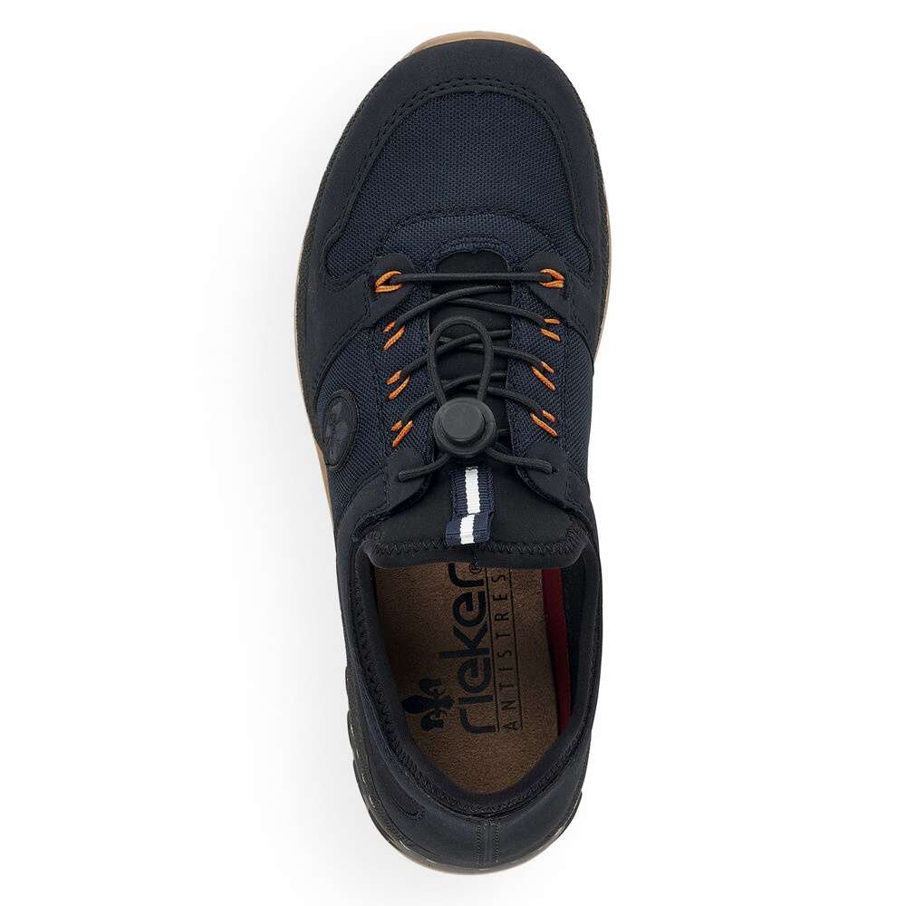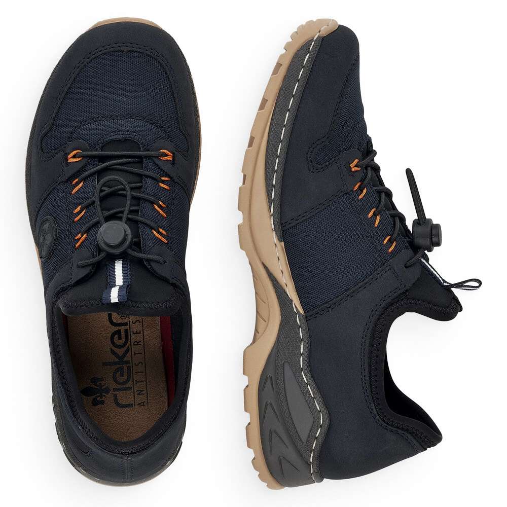Dámská obuv od značky RIEKER s kontrastně barevnou podešví a tmavě modrým svrškem s kombinací materiálů. K obouvání Vám skvěle napomůže poutko při horním okraji a pružnou gumičkou si je můžete utáhnout přesně podle Vašich představ. Jistě také oceníte vyjímatelnou stélku z paměťové pěny, která dodá běžné chůzi pohodlnost a komfort. Tento model bude tím pravým pro vycházky do přírody nebo pro výlety s rodinou. Technologie: Antistress – díky čtyřem antistresovým vlastnostem – lehkosti, pružnosti, prostornosti a vynikající absorpci nárazů – vám boty RIEKER nabídnou komfortnější chůzi. MemoSoft – unikátní stélka z paměťové pěny, která změkčuje došlap, ale také se maximálně přizpůsobí tvaru Vašeho chodidla. Tato bota je vybavena vyjímatelnou stélkou. ŠÍŘE H – širší střih bot, který vytvoří dostatečný prostor Vašemu chodidlu a zajistí dokonalý komfort při nošení.