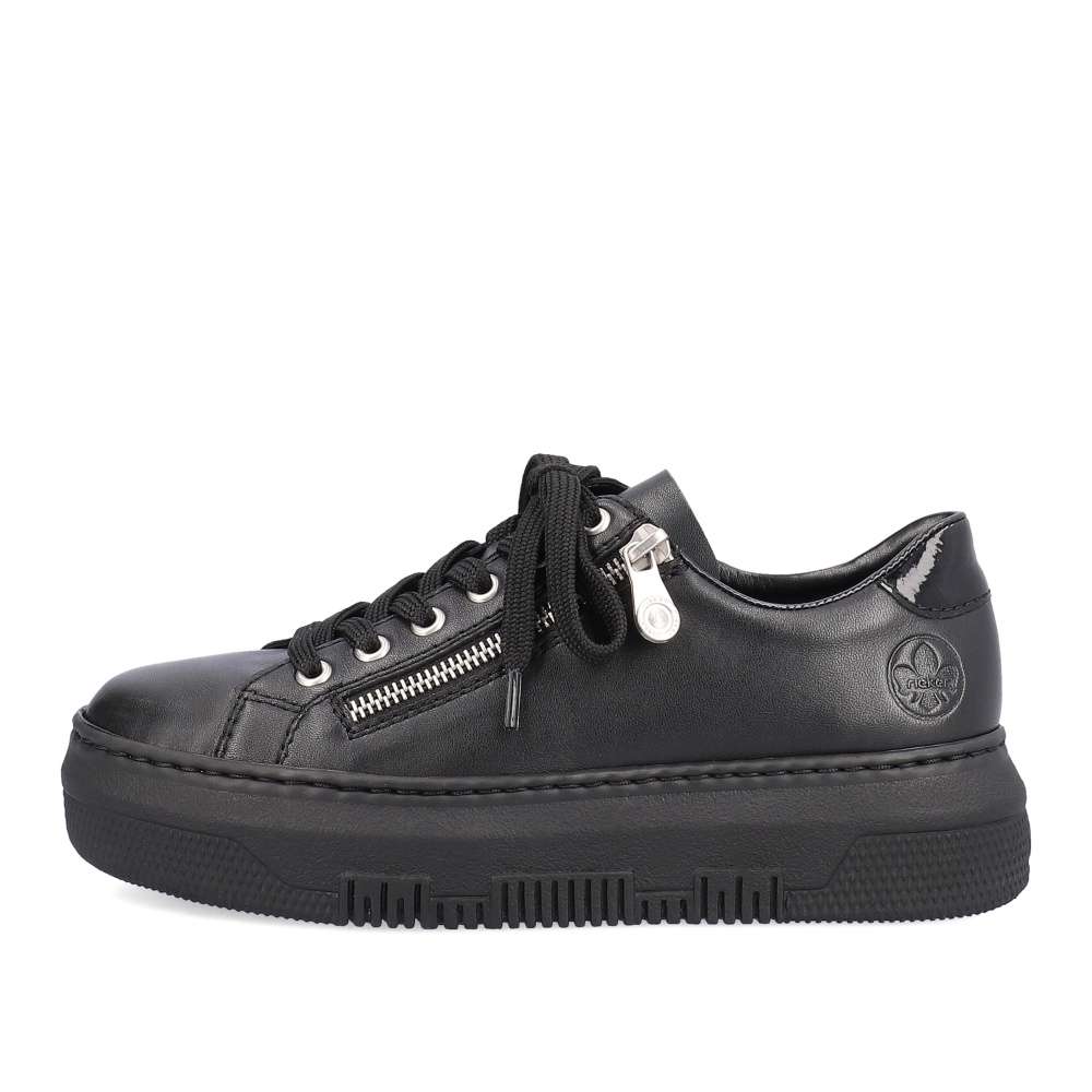 Detailní informace Nadčasová černá kožená dámská teniska, která Vás zaujme na první pohled. Nejen díky snadnému nazutí za což vděčí funkčnímu zipu s logem Rieker, ale také vkusnou tkaničkou na šněrování, díky které si botu dokonale přizpůsobíte. Měkká stélka z kůže spolu s Antistress podešví, zajistí, že se budete cítit jako na obláčku. Jednoduchý elegantní vzhled těchto tenisek lehce sladíte se sukní, šaty nebo i kalhoty. V jednoduchosti je krása a tyto boty jsou toho čirým důkazem. Tak šup s nimi do košíku!