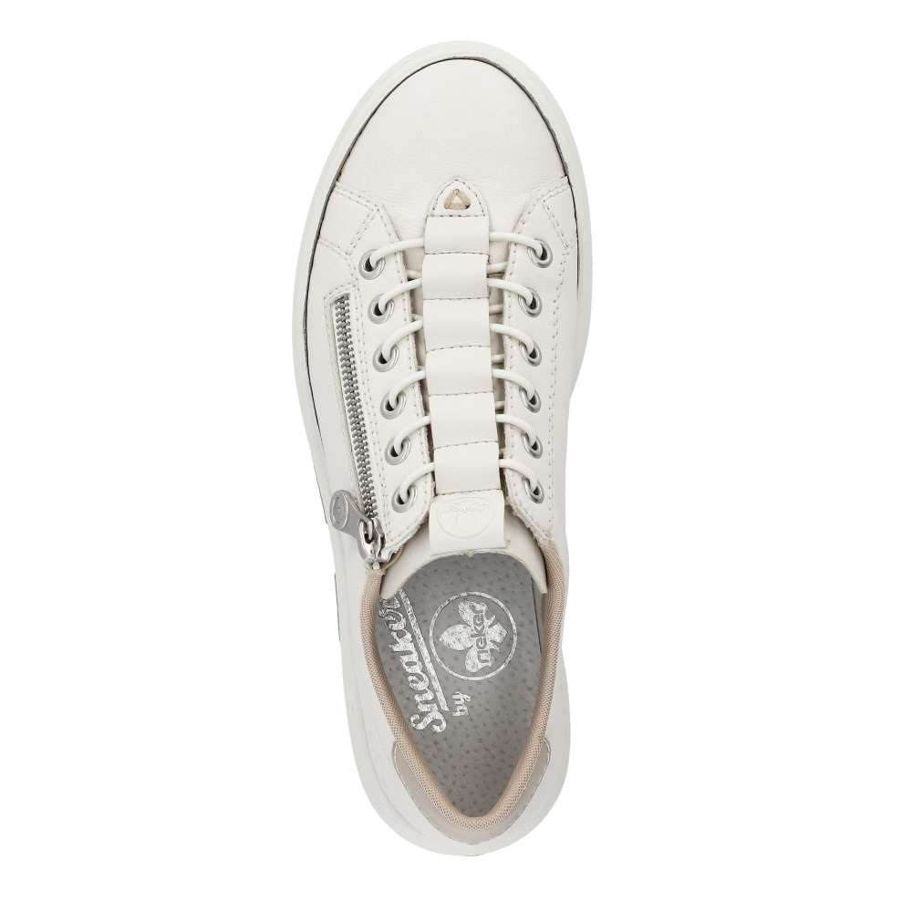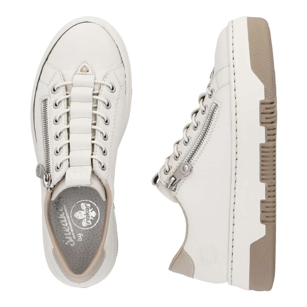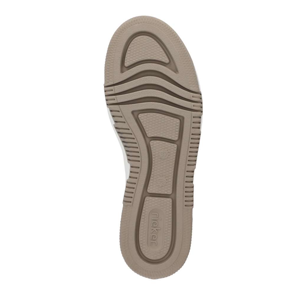 Vzhůru do víru městské džungle v těchto úžasných botkách světlé barvy s kontrastním prvkem v patní části. Tyto atraktivní tenisky nazujete jednoduše díky zipu a funkčnímu gumičkovému šněrování, které zajišťuje pohodlné nazouvání. Podešev je lehká, flexibilní, a navíc obdařena technologii Antistress, která absorbuje nárazy a otřesy. Německá obuv Rieker zaručuje díky patentované technologii příjemné celodenní nošení. Jednoduše zkombinujete s kalhotami, sukní i šortkami a hurá do města! Technologie: Antistress – podešev je díky této technologii lehká, flexibilní, absorbuje nárazy při došlapu a snadno se přizpůsobí každé noze. Rieker Lite – ultralehká podešev pro komfortní pocit při chůzi.