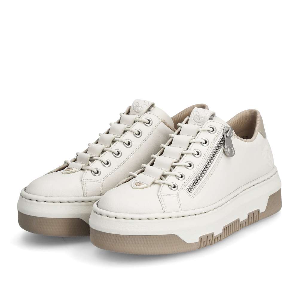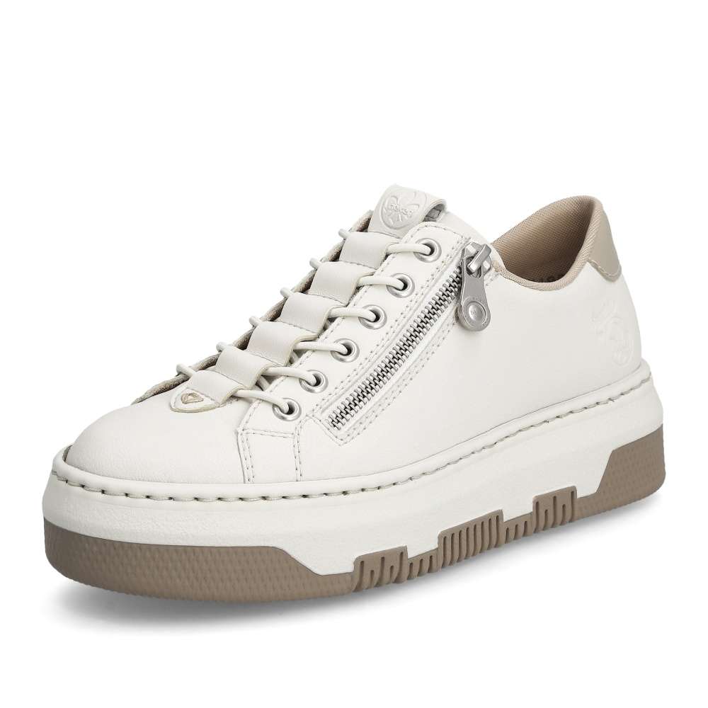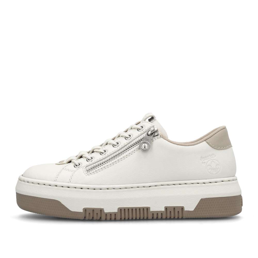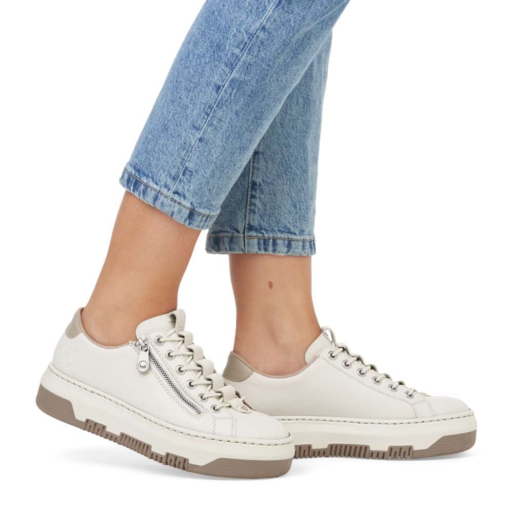 Vzhůru do víru městské džungle v těchto úžasných botkách světlé barvy s kontrastním prvkem v patní části. Tyto atraktivní tenisky nazujete jednoduše díky zipu a funkčnímu gumičkovému šněrování, které zajišťuje pohodlné nazouvání. Podešev je lehká, flexibilní, a navíc obdařena technologii Antistress, která absorbuje nárazy a otřesy. Německá obuv Rieker zaručuje díky patentované technologii příjemné celodenní nošení. Jednoduše zkombinujete s kalhotami, sukní i šortkami a hurá do města! Technologie: Antistress – podešev je díky této technologii lehká, flexibilní, absorbuje nárazy při došlapu a snadno se přizpůsobí každé noze. Rieker Lite – ultralehká podešev pro komfortní pocit při chůzi.
