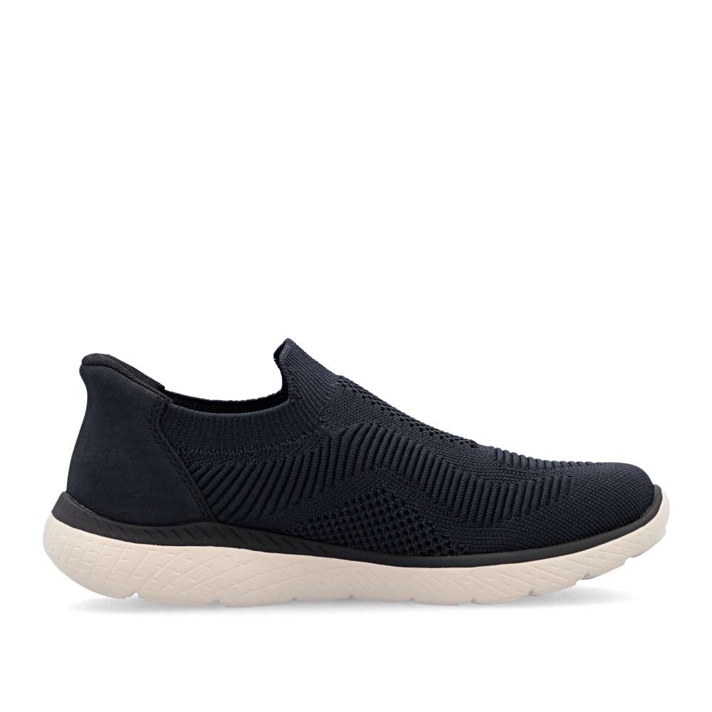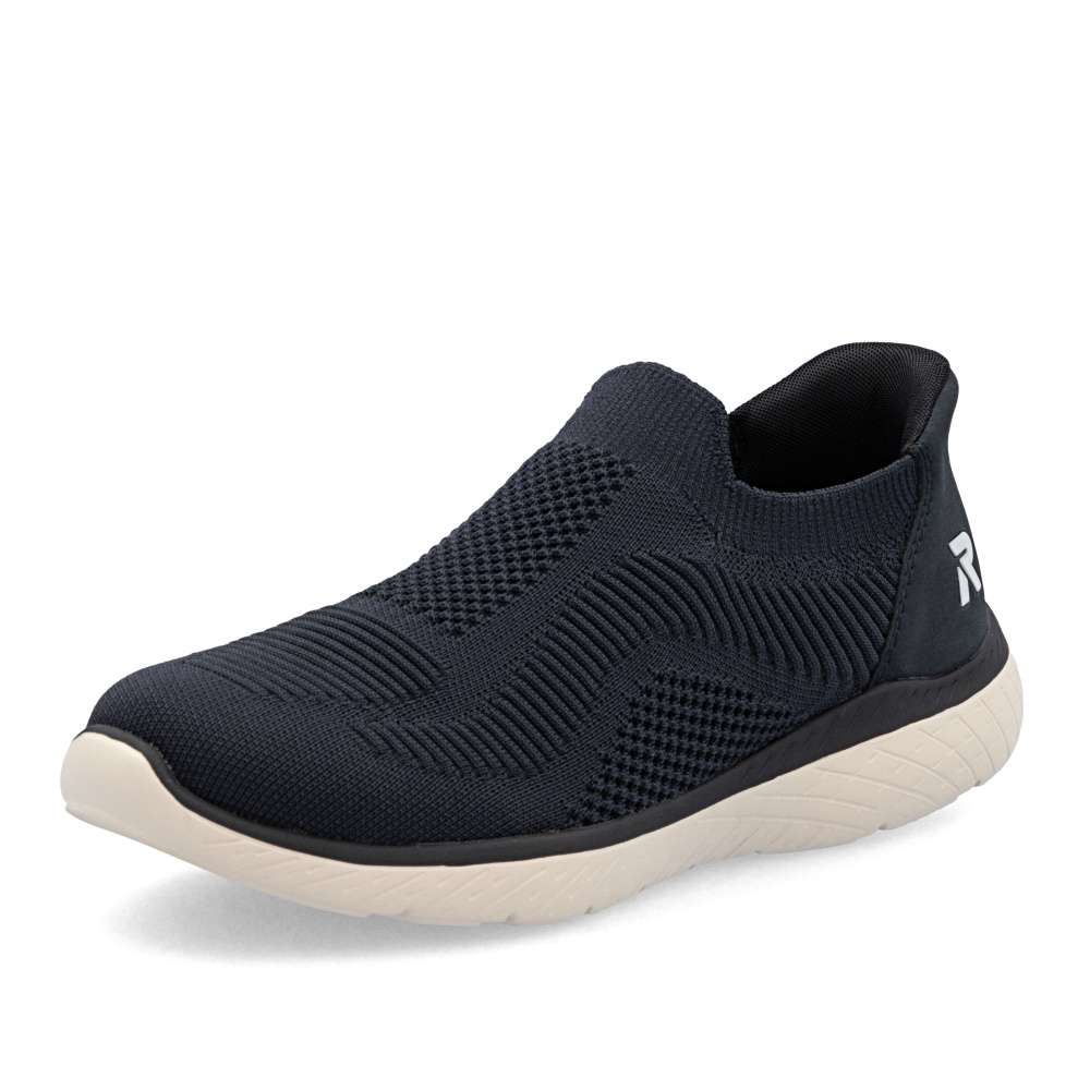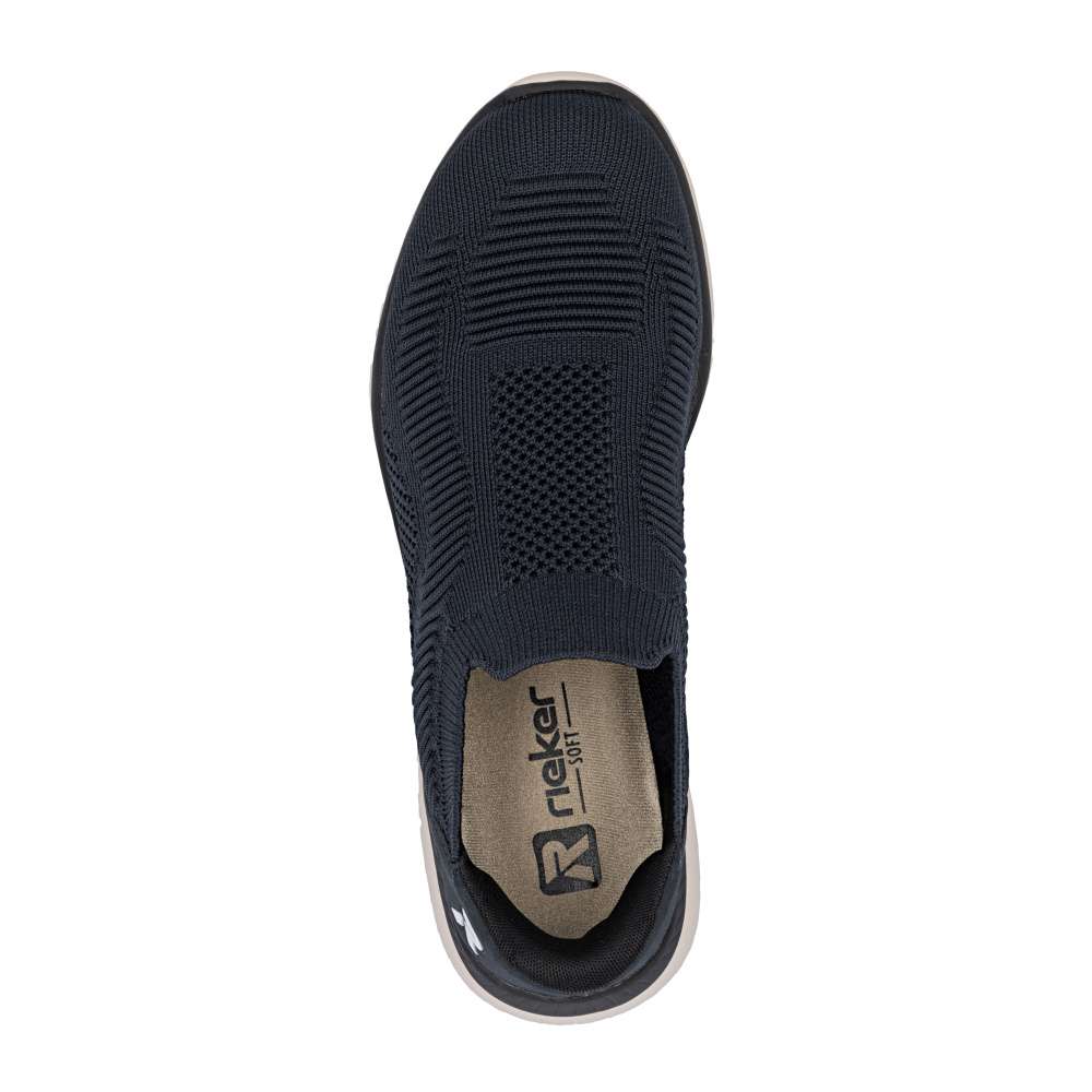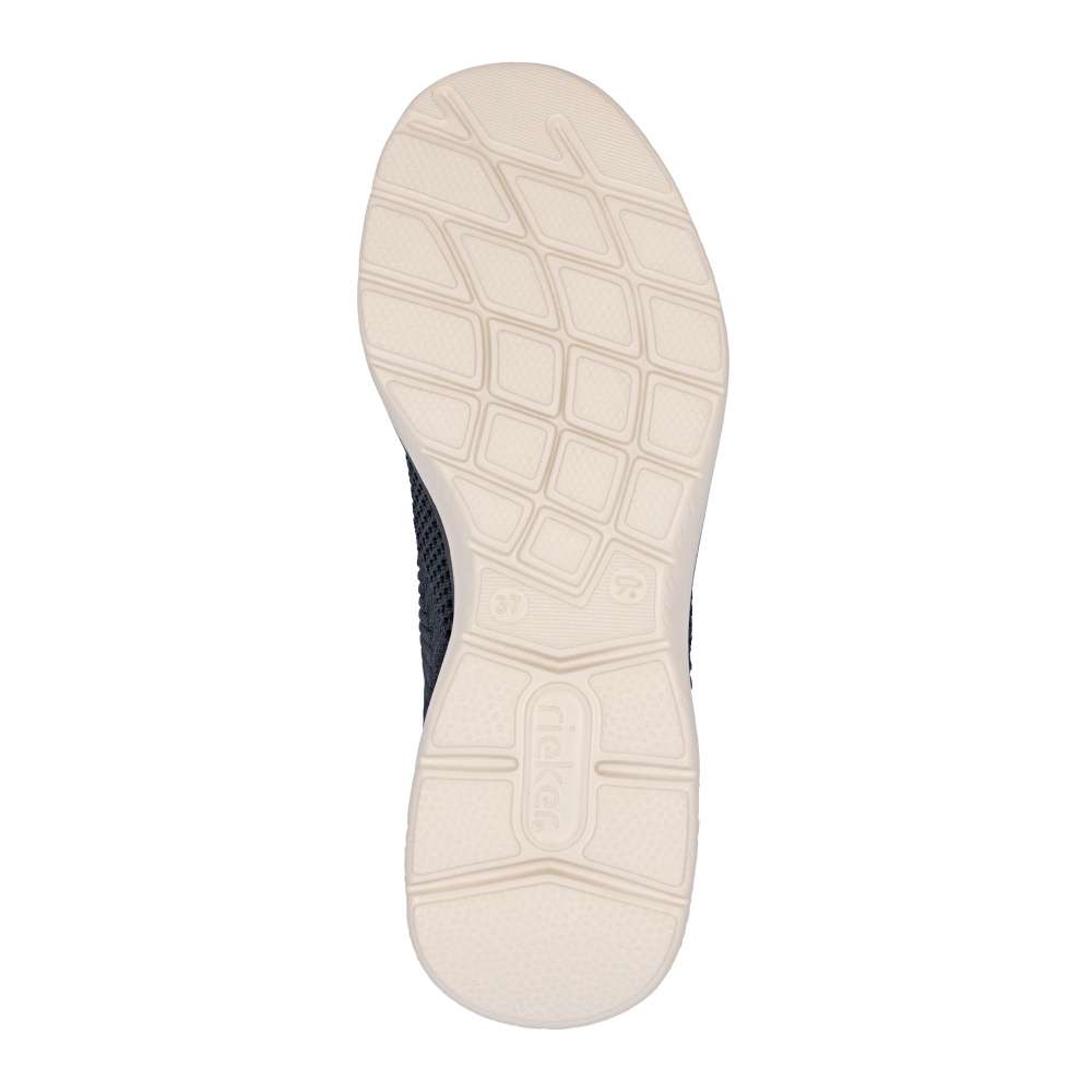 Detailní informace Tenisky RIEKER, které snadno obujete a s lehkostí vykročíte do nového dne. Textilní svršek tmavě modré barvy a zpevněná pata zajišťují snadné obutí a přizpůsobení tvaru vaší nohy. Celodenní pohodlí vytváří měkká stélka z paměťové pěny, která se dokonale přizpůsobí chodidlu a poskytne maximální pohodlí při každém kroku. Podešev tlumící nárazy při chůzi dodává teniskám moderní vzhled. Ideální volba pro pohodlné a stylové nošení do práce i trávení volného času. Dokonalá souhra moderního vzhledu a maximálního pohodlí díky funkčním technologiím to jsou boty RIEKER Sport.