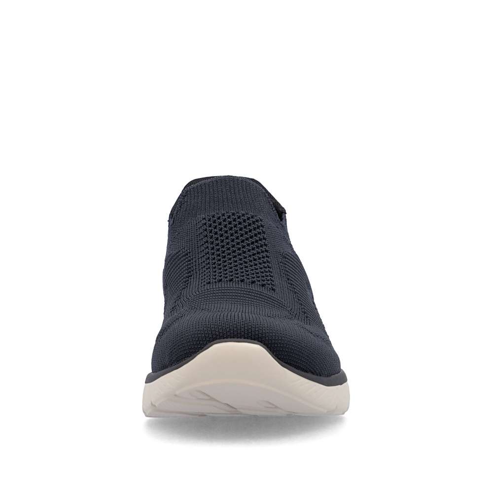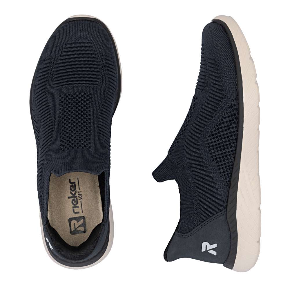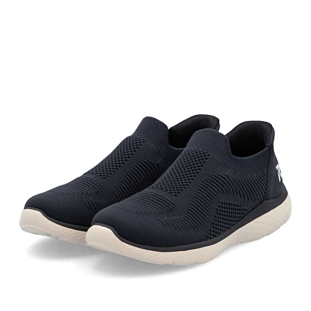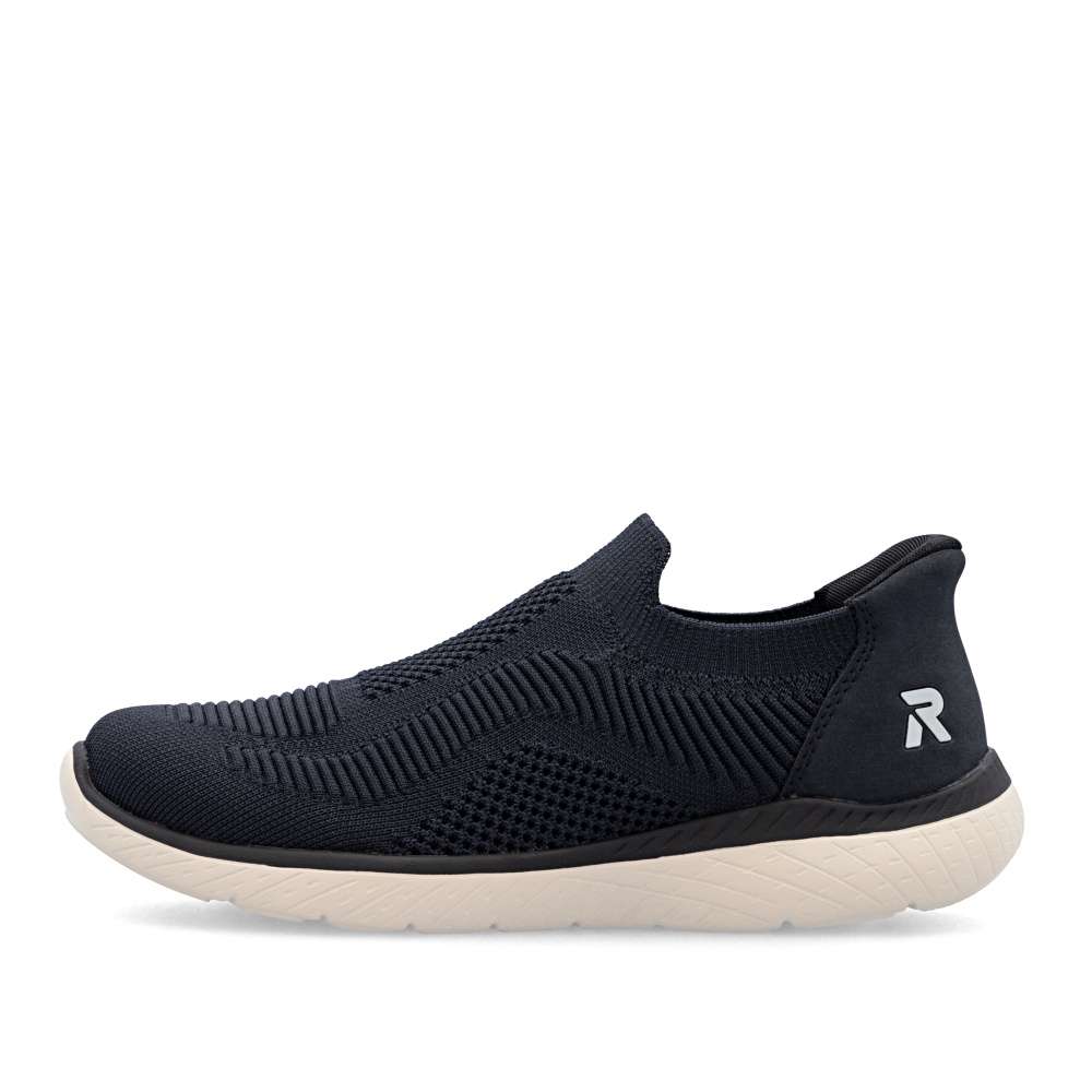 Detailní informace Tenisky RIEKER, které snadno obujete a s lehkostí vykročíte do nového dne. Textilní svršek tmavě modré barvy a zpevněná pata zajišťují snadné obutí a přizpůsobení tvaru vaší nohy. Celodenní pohodlí vytváří měkká stélka z paměťové pěny, která se dokonale přizpůsobí chodidlu a poskytne maximální pohodlí při každém kroku. Podešev tlumící nárazy při chůzi dodává teniskám moderní vzhled. Ideální volba pro pohodlné a stylové nošení do práce i trávení volného času. Dokonalá souhra moderního vzhledu a maximálního pohodlí díky funkčním technologiím to jsou boty RIEKER Sport.