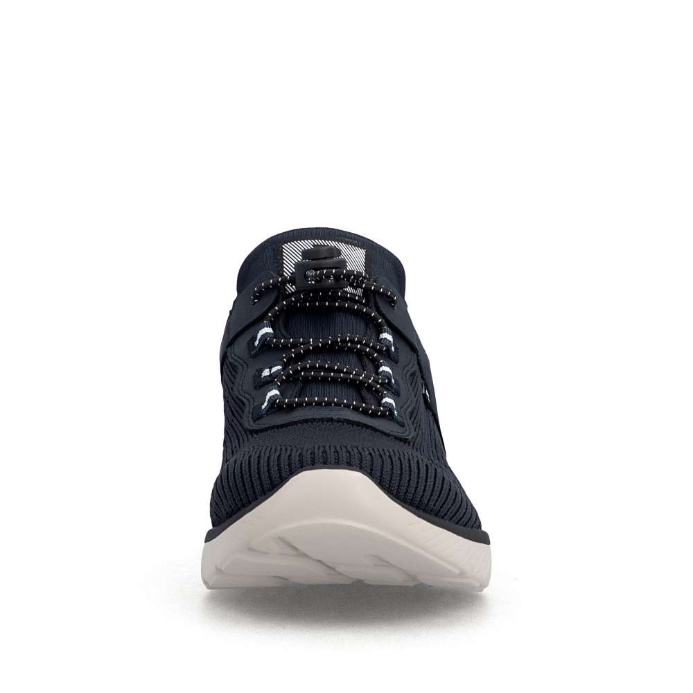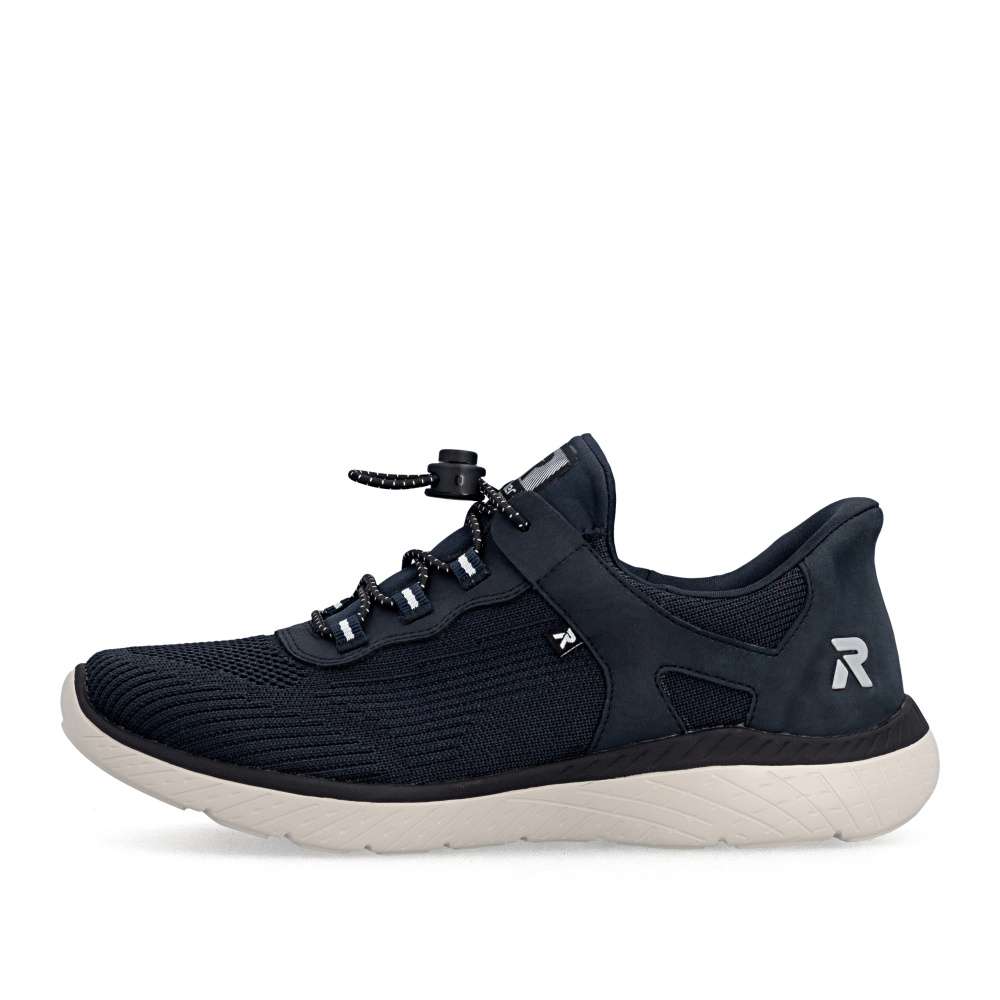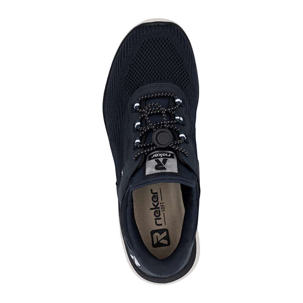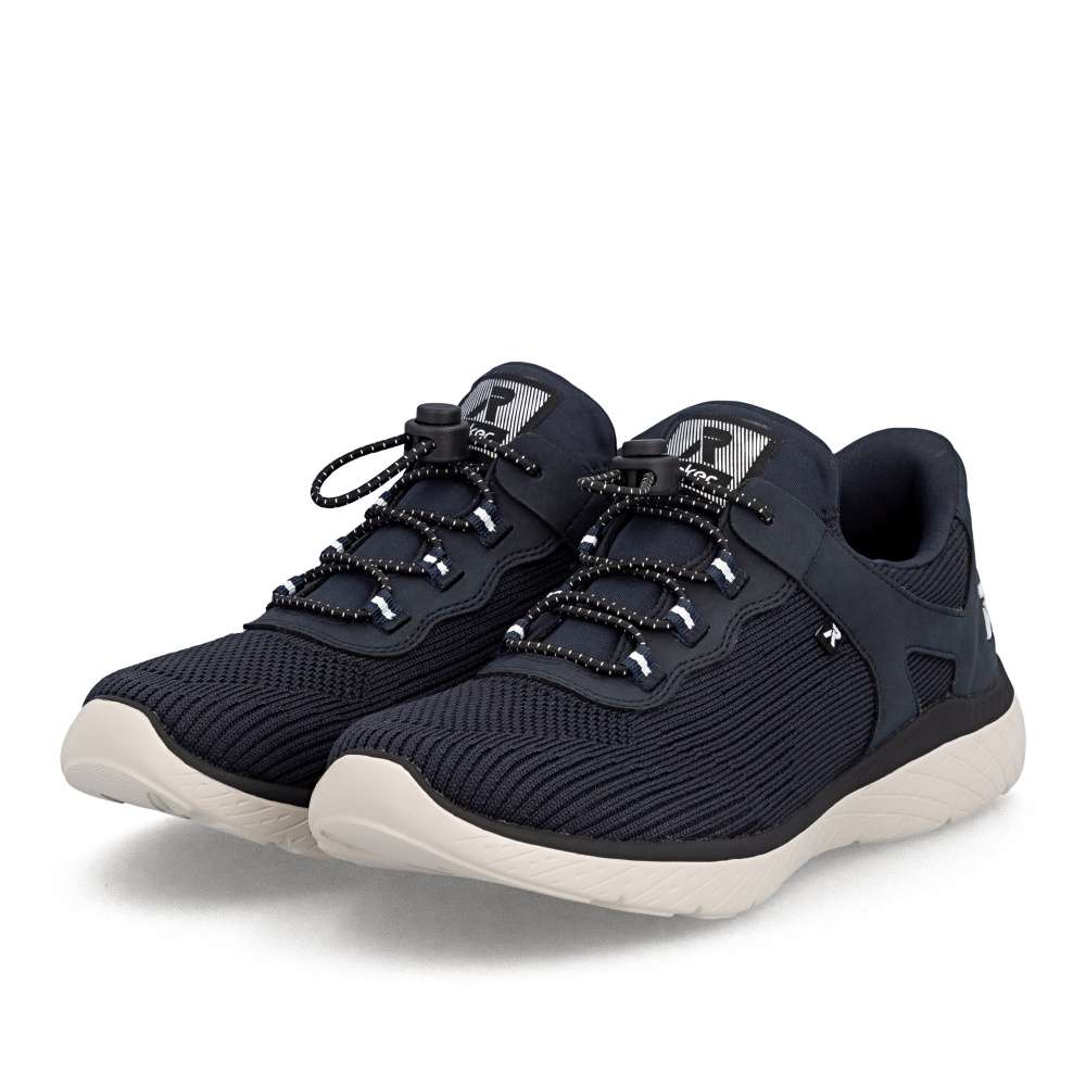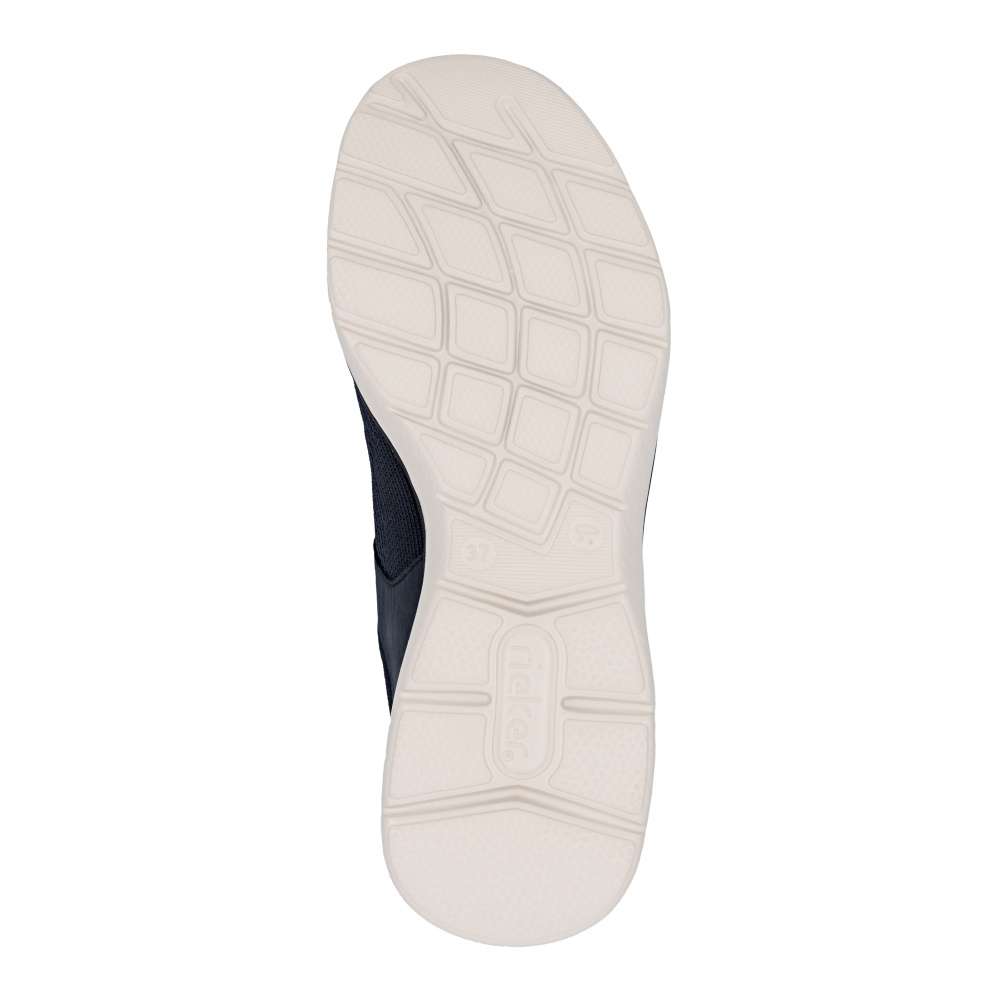 Tenisky RIEKER, které snadno obujete a s lehkostí vykročíte do nového dne. Textilní svršek tmavě modré barvy je ozvláštněn kontrastními bílými prvky a hladkými částmi. Do obuvi snadno vklouznete a přizpůsobíte si ji ještě snadněji díky šněrování pružnou gumičkou. Celodenní pohodlí vytváří měkká stélka z paměťové pěny, která se dokonale přizpůsobí chodidlu a poskytne maximální pohodlí při každém kroku. Podešev tlumící nárazy při chůzi dodává teniskám moderní vzhled. Dokonalá souhra moderního vzhledu a maximálního pohodlí díky funkčním technologiím to jsou boty RIEKER. Technologie: MemoSoft – unikátní stélka z paměťové pěny, která změkčuje došlap, ale také se maximálně přizpůsobí tvaru Vašeho chodidla. RIEKER Lite – maximální komfort při nošení vytváří kombinace lehké podešve, velmi příjemných materiálů a komfortní stélky. Ready2GO – nazout a jít, díky tvarově stabilní patní částí je nazouvání snadné bez použití pomůcek a rukou. Antistress – díky čtyřem antistresovým vlastnostem – lehkosti, pružnosti, prostornosti a vynikající absorpci nárazů – vám boty RIEKER nabídnou komfortnější chůzi.