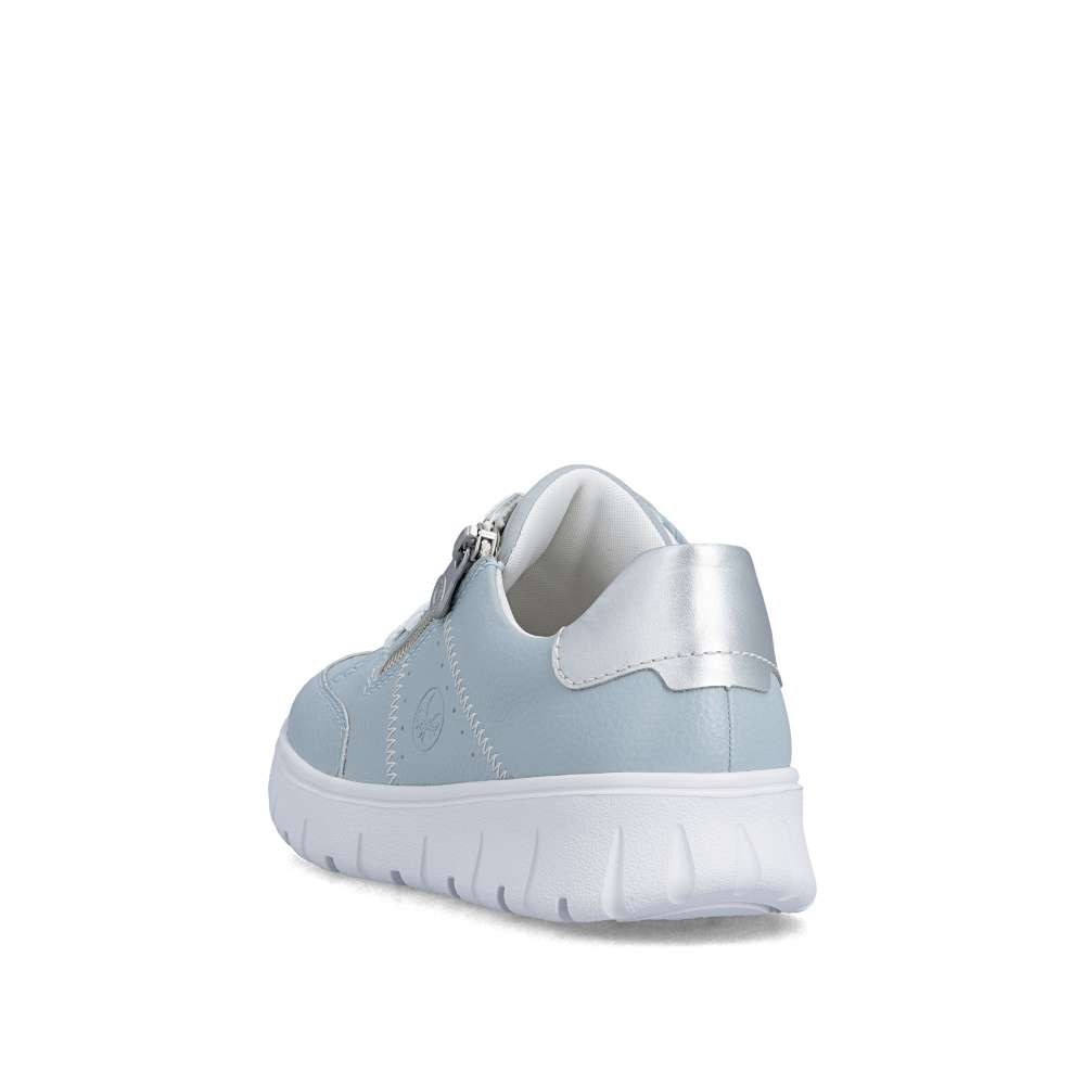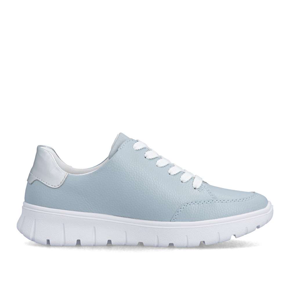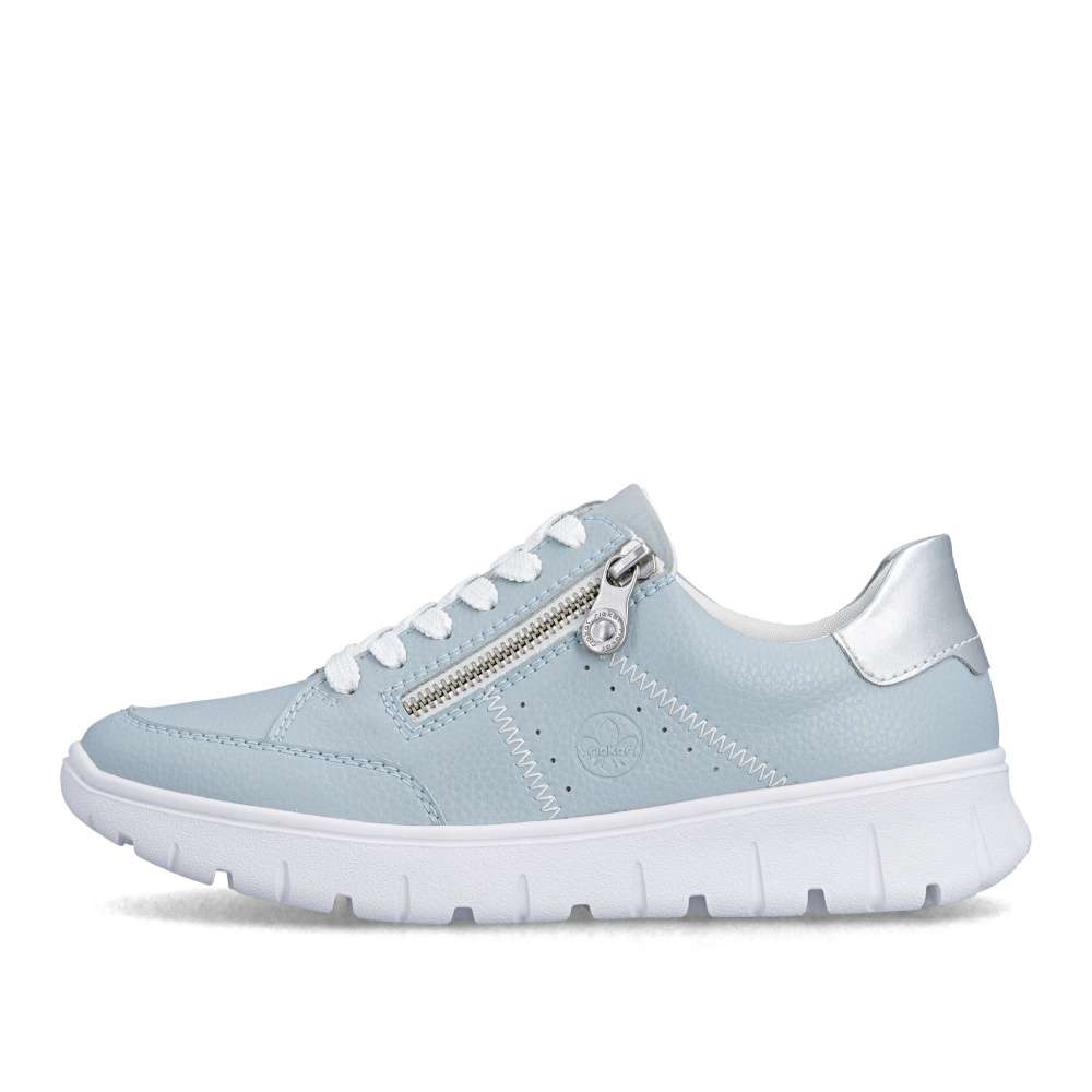 Tyto tenisky RIEKER nabízí dokonalé spojení moderního stylu a pohodlí pro každodenní nošení. Modrý kožený svršek je doplněn výrazným prošitím a na patě se nachází ozdobný prvek s odlesky, který působí stylově, zatímco logo značky na boční straně zdůrazňuje originalitu a kvalitu. Praktické prvky dělají tyto tenisky komfortními a funkčními. Zip umožňuje rychlé a snadné obouvání a šněrování zaručuje přesné přizpůsobení boty tvaru nohy. Vyjímatelná stélka, tvarovaná pro optimální komfort, poskytuje měkkost a podporu chodidla. Vyšší podešev nejen dodává botám moderní vzhled, ale také poskytuje stabilitu a tlumí nárazy. Tyto tenisky jsou ideální pro každodenní aktivity, do práce, pro volný čas, procházky nebo cestování. Jejich univerzální a nadčasový design umožňuje kombinovat je s různými outfity a styly.