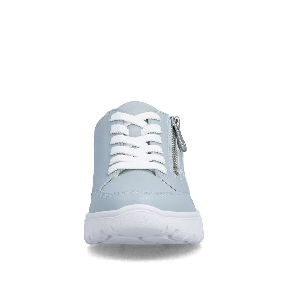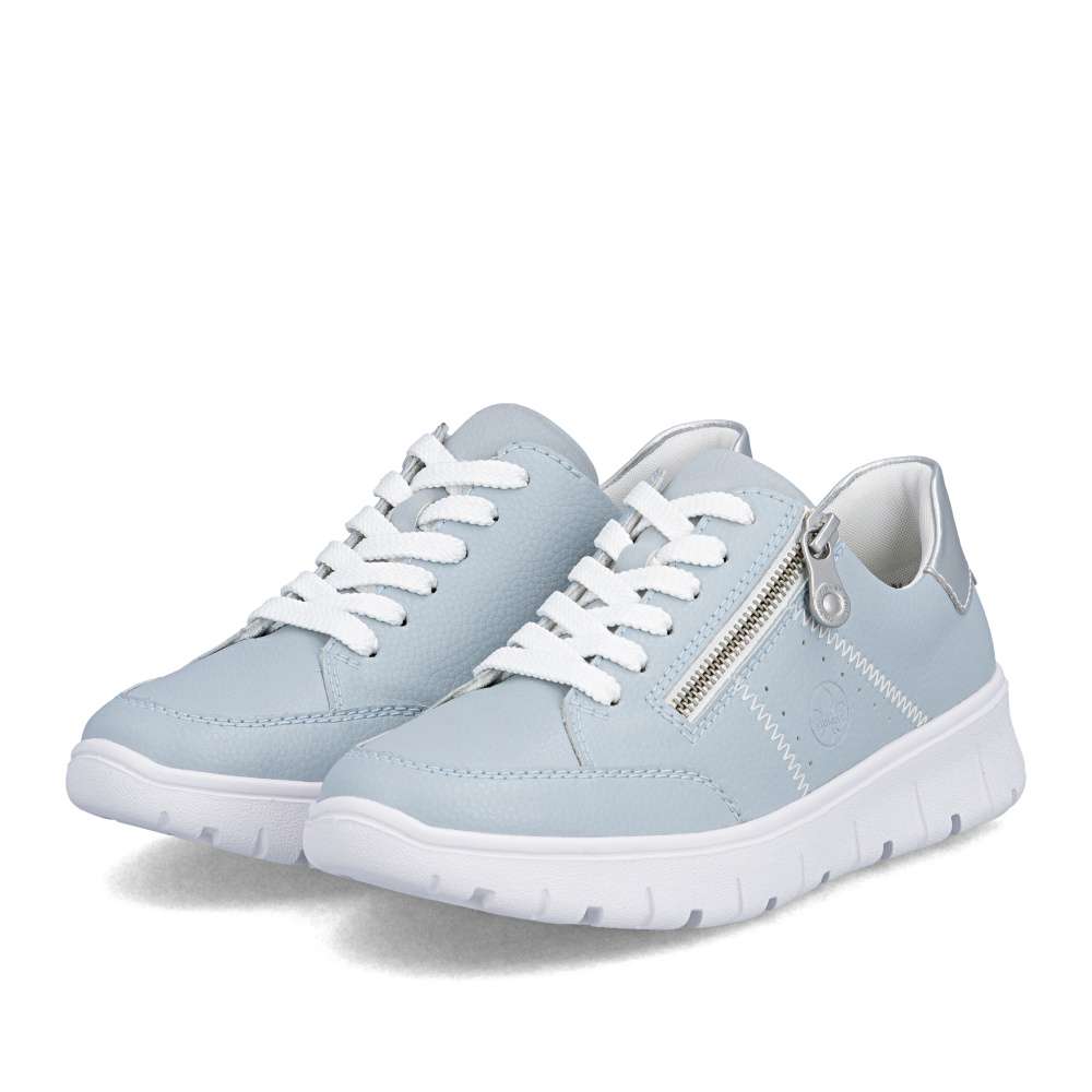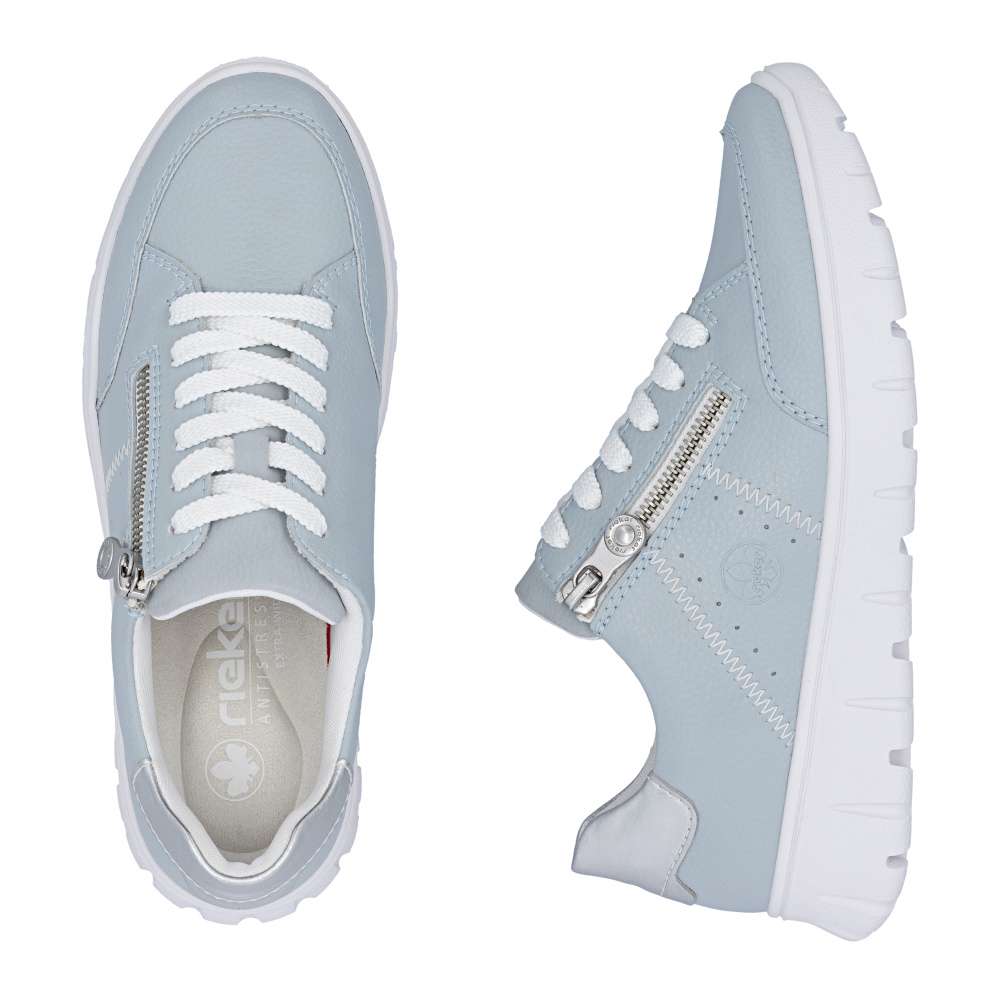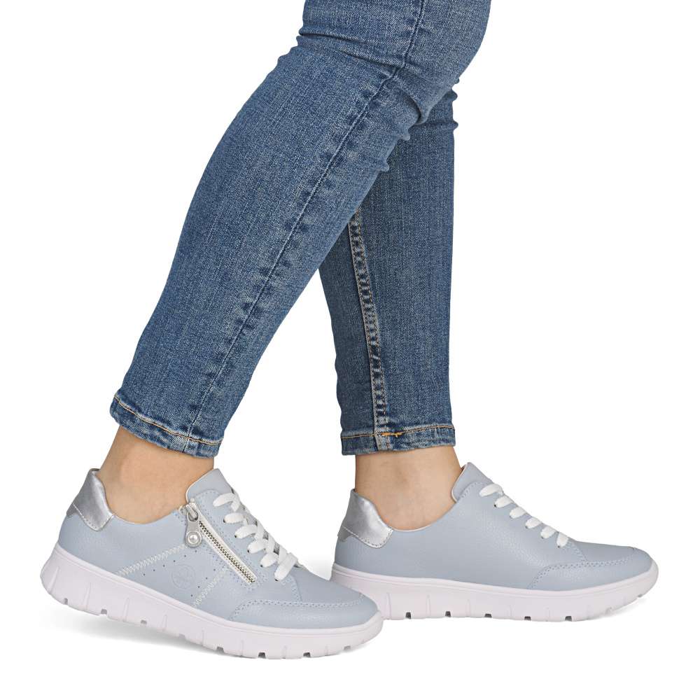 Tyto tenisky RIEKER nabízí dokonalé spojení moderního stylu a pohodlí pro každodenní nošení. Modrý kožený svršek je doplněn výrazným prošitím a na patě se nachází ozdobný prvek s odlesky, který působí stylově, zatímco logo značky na boční straně zdůrazňuje originalitu a kvalitu. Praktické prvky dělají tyto tenisky komfortními a funkčními. Zip umožňuje rychlé a snadné obouvání a šněrování zaručuje přesné přizpůsobení boty tvaru nohy. Vyjímatelná stélka, tvarovaná pro optimální komfort, poskytuje měkkost a podporu chodidla. Vyšší podešev nejen dodává botám moderní vzhled, ale také poskytuje stabilitu a tlumí nárazy. Tyto tenisky jsou ideální pro každodenní aktivity, do práce, pro volný čas, procházky nebo cestování. Jejich univerzální a nadčasový design umožňuje kombinovat je s různými outfity a styly.