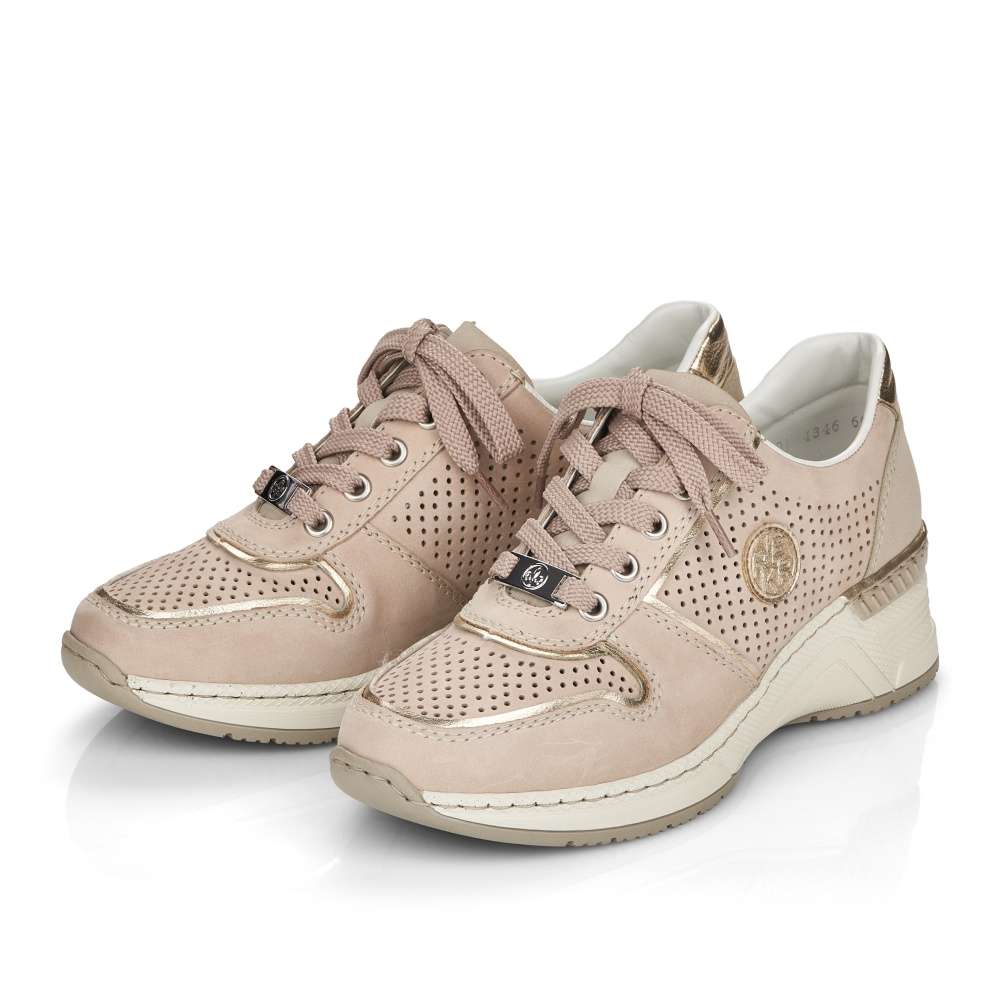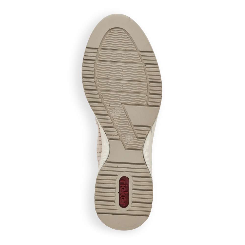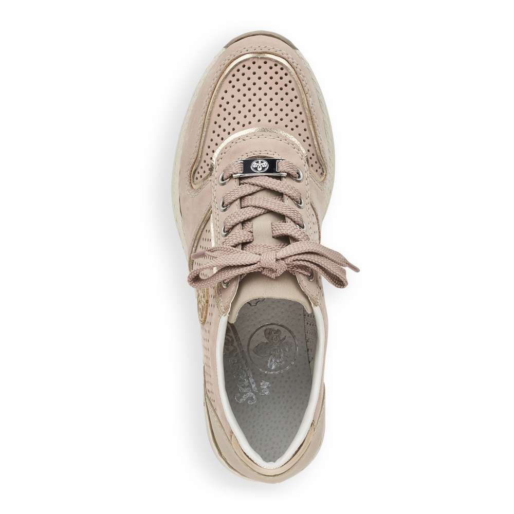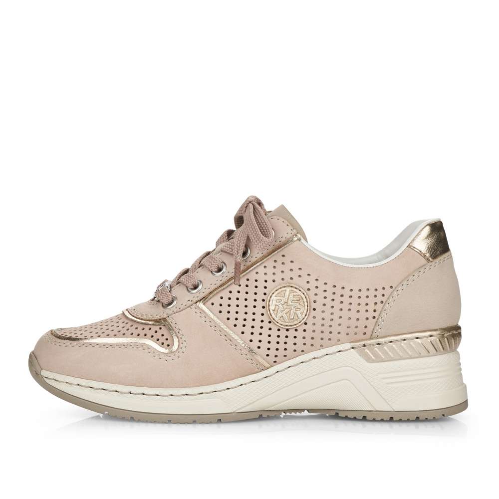 Krásná stylová šněrovací teniska značky RIEKER, ve které se budete cítit vyjímečná. Svrchní materiál se vyznačuje perforací, zajímavým logem a decentní barvičkou. Pro snadné obutí Vám poslouží šněrování, které je dozdobeno lesklými kroužky a krásně doplňuje tenisku. Jistě oceníte pohodlnou stélku, která lze vyměnit nebo vyvětrat podle potřeby. Tento model na vyšší podešvi krásně prodlouží Vaše nohy a docílíte s ním dokonalého outfitu pro každý váš den a ještě se budete cítit pohodlně na každém kroku.