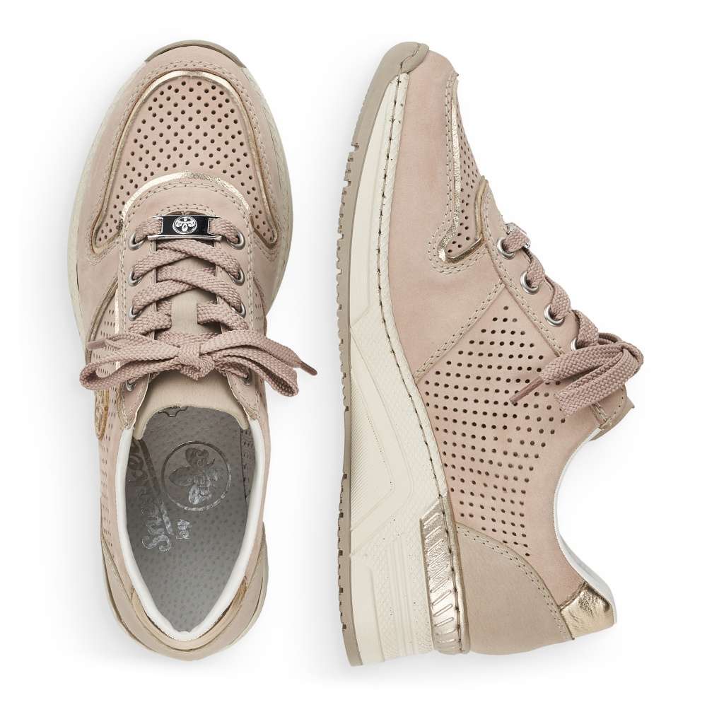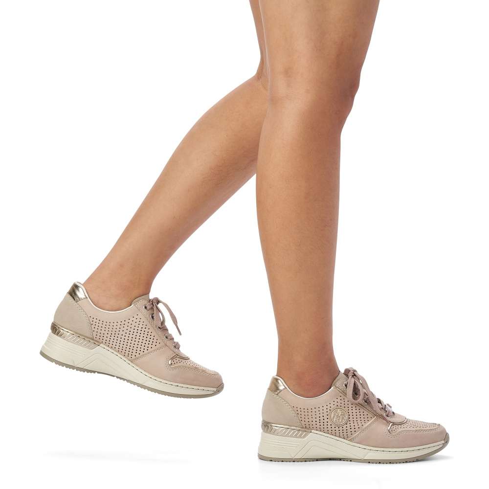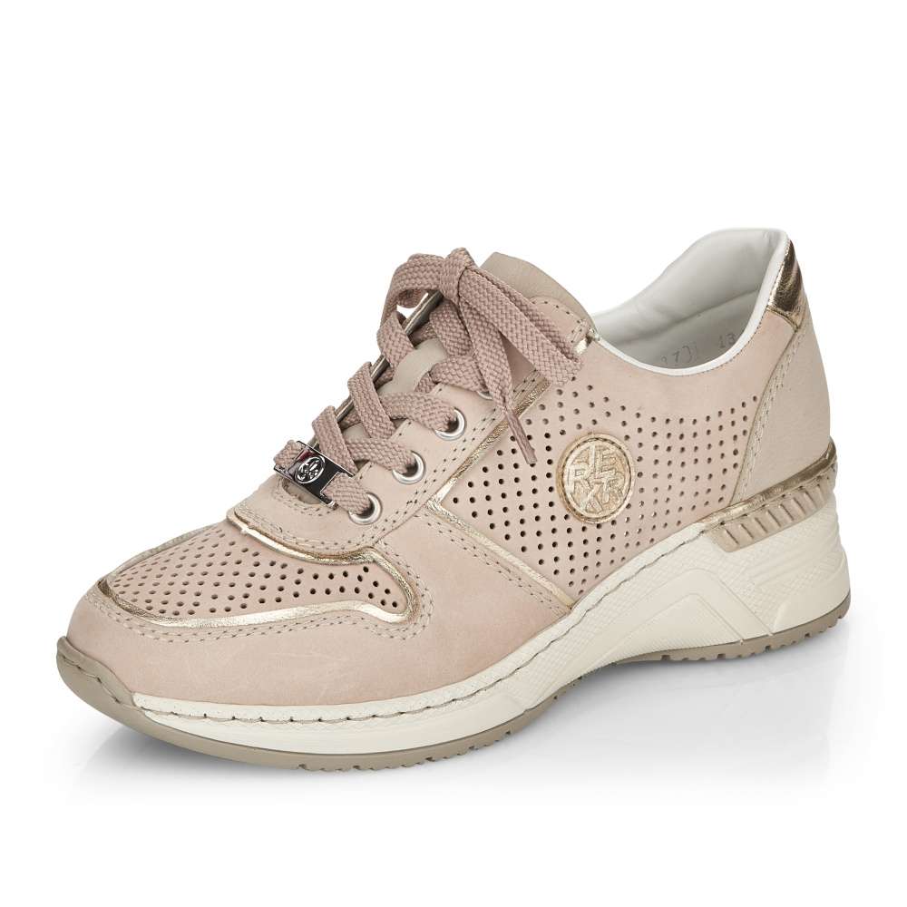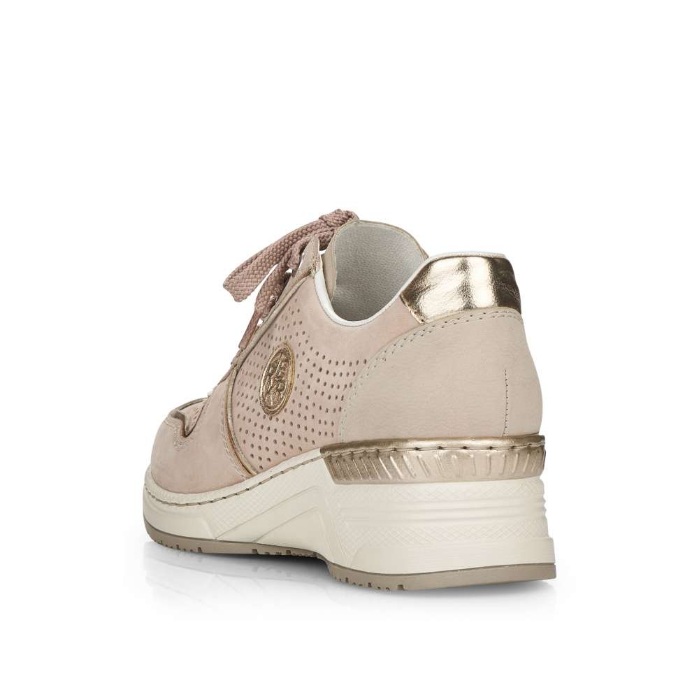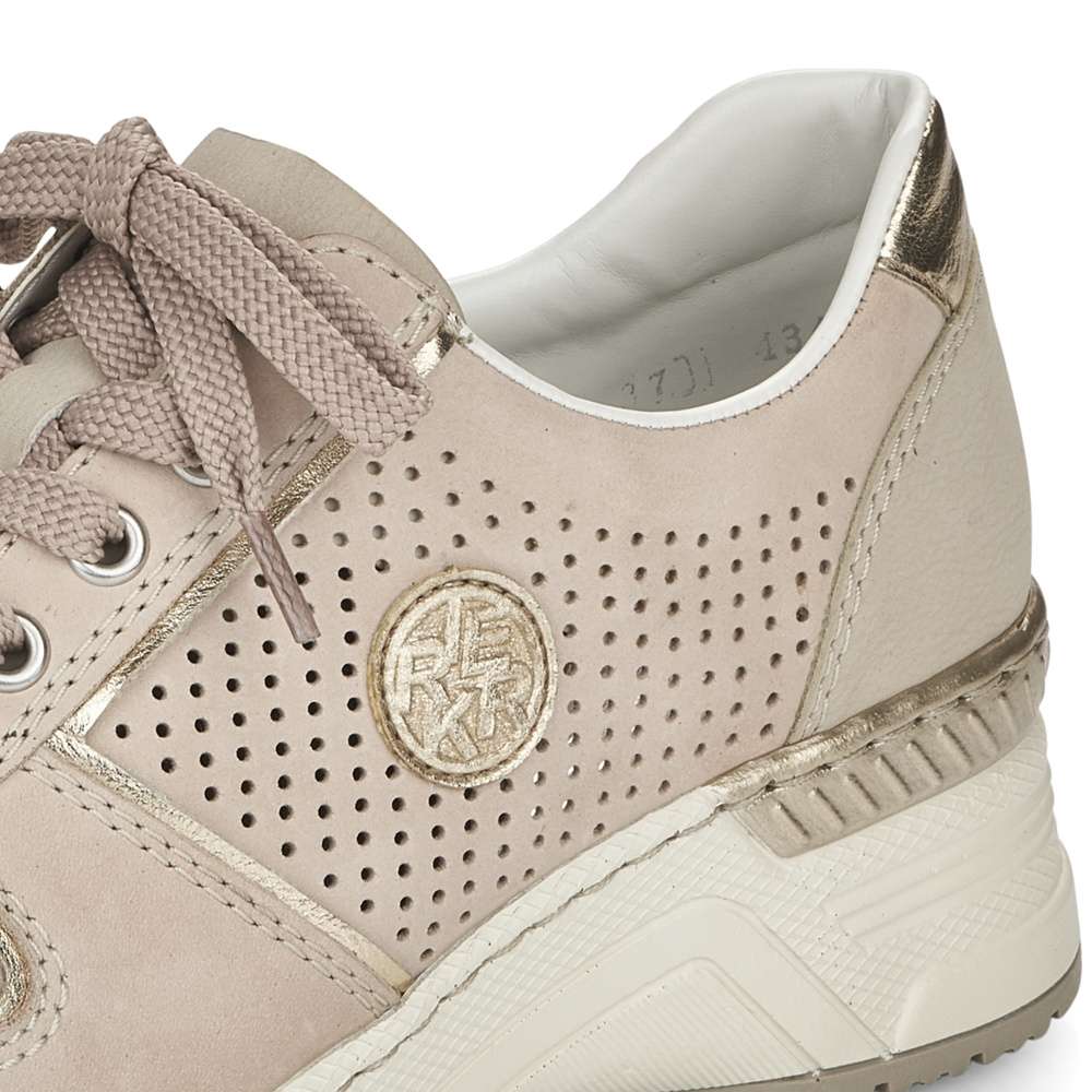Krásná stylová šněrovací teniska značky RIEKER, ve které se budete cítit vyjímečná. Svrchní materiál se vyznačuje perforací, zajímavým logem a decentní barvičkou. Pro snadné obutí Vám poslouží šněrování, které je dozdobeno lesklými kroužky a krásně doplňuje tenisku. Jistě oceníte pohodlnou stélku, která lze vyměnit nebo vyvětrat podle potřeby. Tento model na vyšší podešvi krásně prodlouží Vaše nohy a docílíte s ním dokonalého outfitu pro každý váš den a ještě se budete cítit pohodlně na každém kroku.