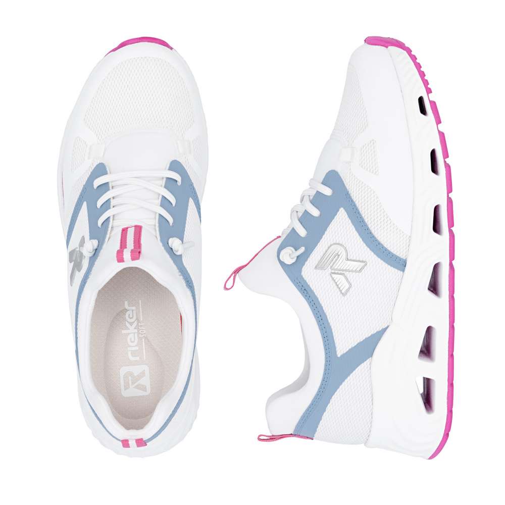 Super stylové, super in! To jsou tyto vícebarevné tenisky RIEKER. Svršek je složen z hladkých a textilních částí, díky kterým bude v teniskách dobře proudit vzduch. Šněrováním pružnou gumičkou si obuv utáhnete dle svých potřeb a o snadné nazouvání se postarají pružný materiál kolem horního okraje a poutko umístěné na jazyku. Pohodlí na každém kroku zajistí měkká stélka, která se dá snadno vyjmout a tím pádem i vyměnit. Tento model vynosíte na procházku městem, do práce a bude ideální volbou k celodennímu pohodlí. Dokonalá souhra moderního vzhledu a maximálního pohodlí díky funkčním technologiím to jsou boty RIEKER Sport.