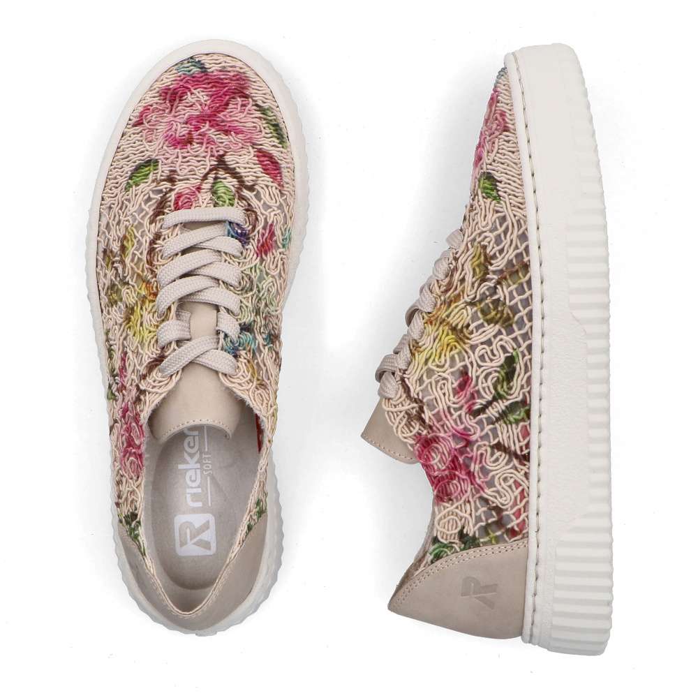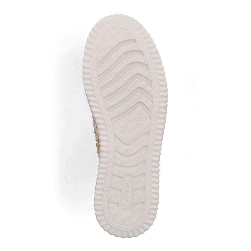 Módním unikátem jsou tyto tenisky RIEKER, které na první pohled zaujmou výraznou strukturou materiálu a odvážnými barevnými kontrasty, vytvářejícími dynamický a originální vzhled. Decentně umístěné logo značky podtrhuje jedinečný charakter tohoto stylového modelu. Klasické šněrování zajišťuje přesné přizpůsobení boty tvaru chodidla, zatímco měkká, vyjímatelná stélka uvnitř se přirozeně přizpůsobí noze a umožňuje snadnou údržbu či výměnu za individuální stélku. Podešev tlumící nárazy poskytuje optimální oporu a stabilitu při každém kroku, čímž zvyšuje komfort i při delším nošení. Tyto tenisky se stanou výrazným doplňkem vašeho outfitu a zároveň spolehlivým společníkem pro každodenní nošení, procházky městem, volnočasové aktivity i cestování, kde oceníte spojení stylu a pohodlí. Dokonalá souhra moderního vzhledu a maximálního pohodlí díky funkčním technologiím to jsou boty RIEKER Sport.