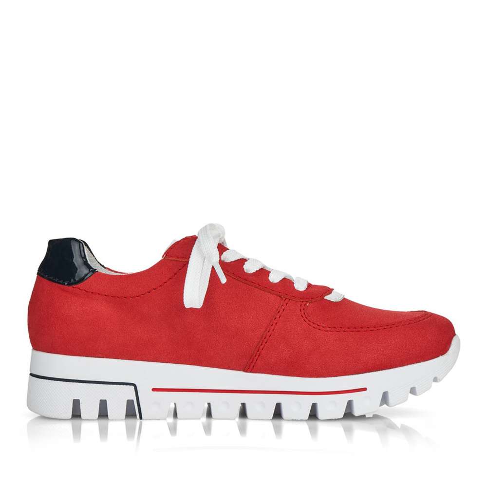 Svršek výrazné červené barvy je na patě ozdoben černou částí a na vnější straně logem značky. Kontrastním bílým šněrováním si obuv snadno přizpůsobíte dle svých požadavků.