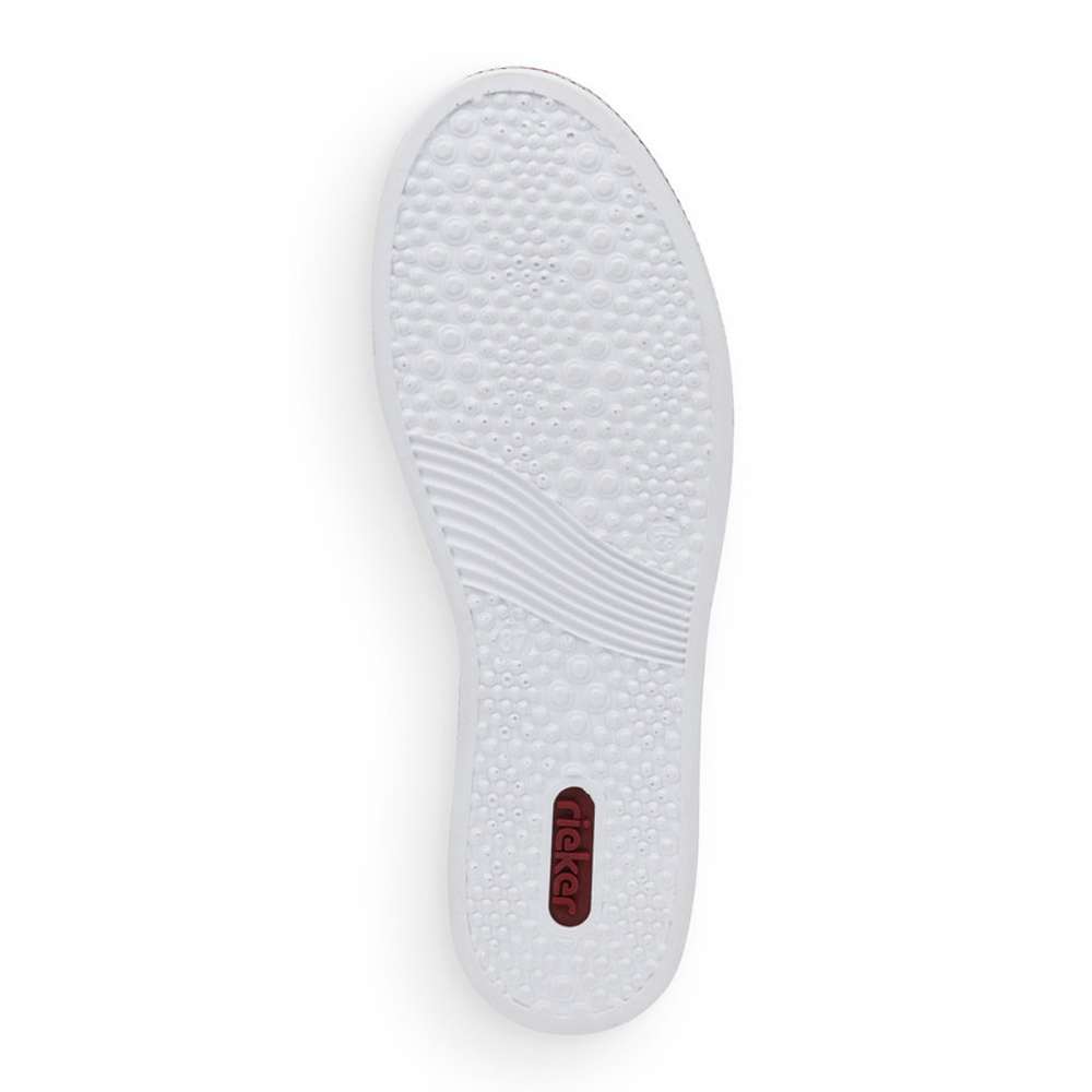 Pohodlí a jistota je heslo, kterým se řídili návrháři při výrobě těchto tenisek značky RIEKER. Hladký svršek zdobný jemným prošíváním, zipem, vytlačeným logem a červenou patní částí je doplněn pruhovanými tkaničkami, díky kterým si obuv snadno nazujete a přizpůsobíte. Kožená stélka je pro Vaše pohodlí vyrobena z měkké pěny a podešev svým designem doladí celkový vzhled obuvi k dokonalosti. Tyto tenisky budou Vašim neocenitelným společníkem ať už se vydáte kamkoliv. Technologie: Antistress – podešev je díky této technologii lehká, flexibilní, absorbuje nárazy při došlapu a snadno se přizpůsobí každé noze.