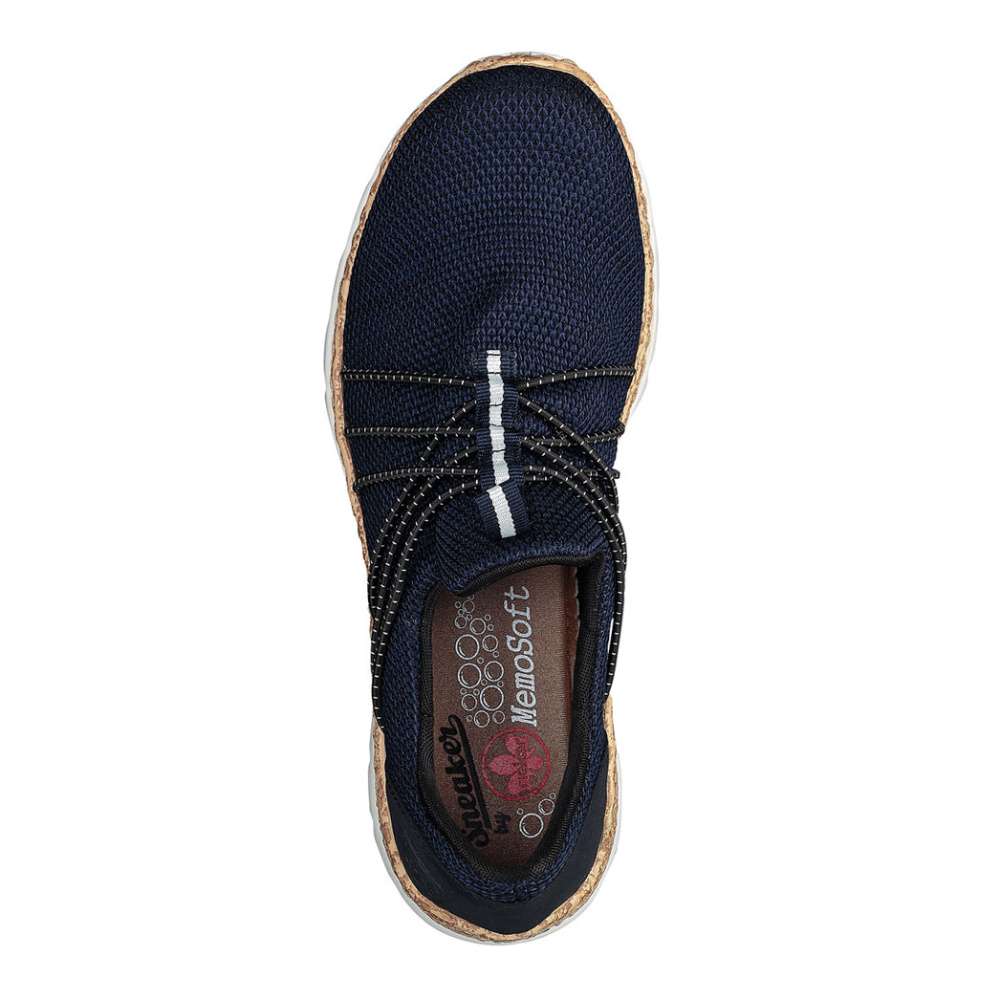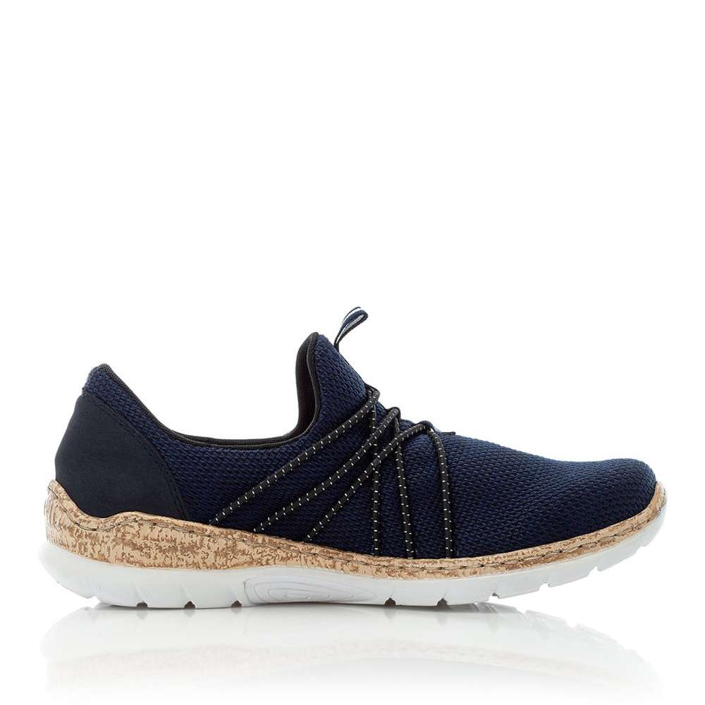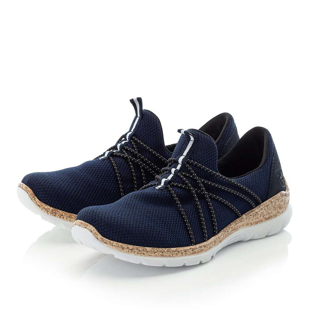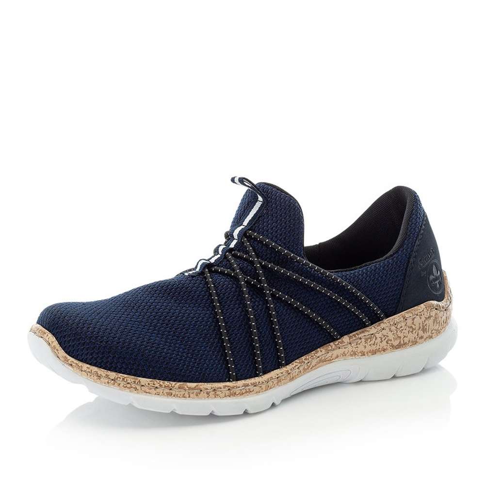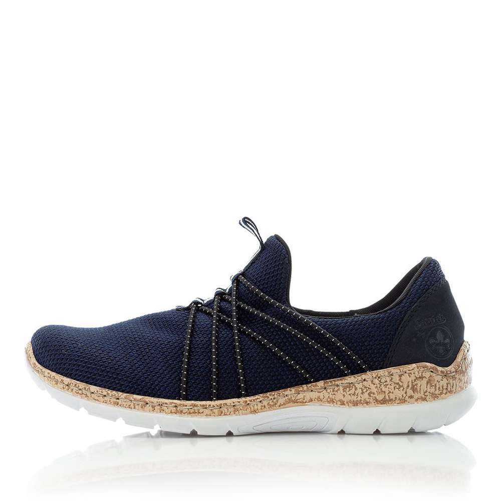 Moderní tenisky RIEKER s textilním svrškem v modré barvě Vás především zaujmou překříženými gumičkami v oblasti nártu a logo značky Rieker u kotníku. Obutí Vám skvěle usnadní pomocné poutko. Kvalitní paměťová stélka Vám zaručí pohodlí a komfort i při celodenním nošení. Tento nápaditý model můžete využít na výlet s rodinou nebo na každodenní chůzi do práce. Technologie: Antistress – podešev je díky této technologii lehká, flexibilní, absorbuje nárazy při došlapu a snadno se přizpůsobí každé noze. MemoSoft – unikátní stélka z paměťové pěny, která změkčuje došlap, ale také se maximálně přizpůsobí tvaru Vašeho chodidla.