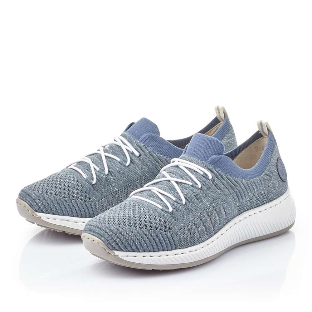 Textilní obuv od značky Rieker s prodyšným povrchem je sportovní ale zároveň velice vkusnou záležitostí. Obutí Vám usnadní pružný lem a poutko v patní části.