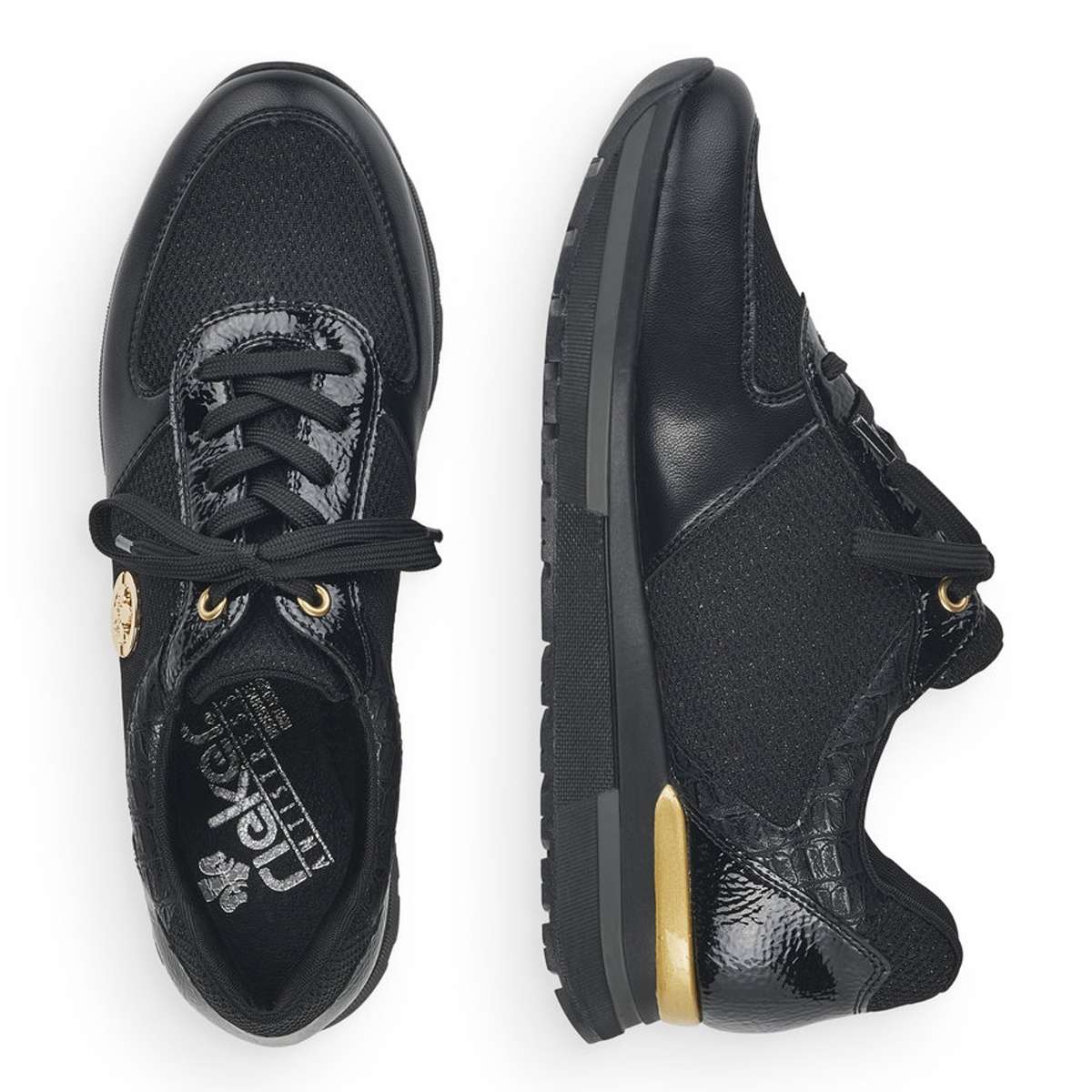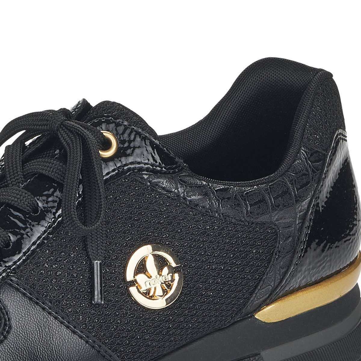 Šněrování Vám ulehčí nazouvání, kvalitní svršek se zlatým logem značky RIEKER a kožená měkká vyjímatelná stélka zaručí celkové pohodlí i při dlouhodobém nošení.
