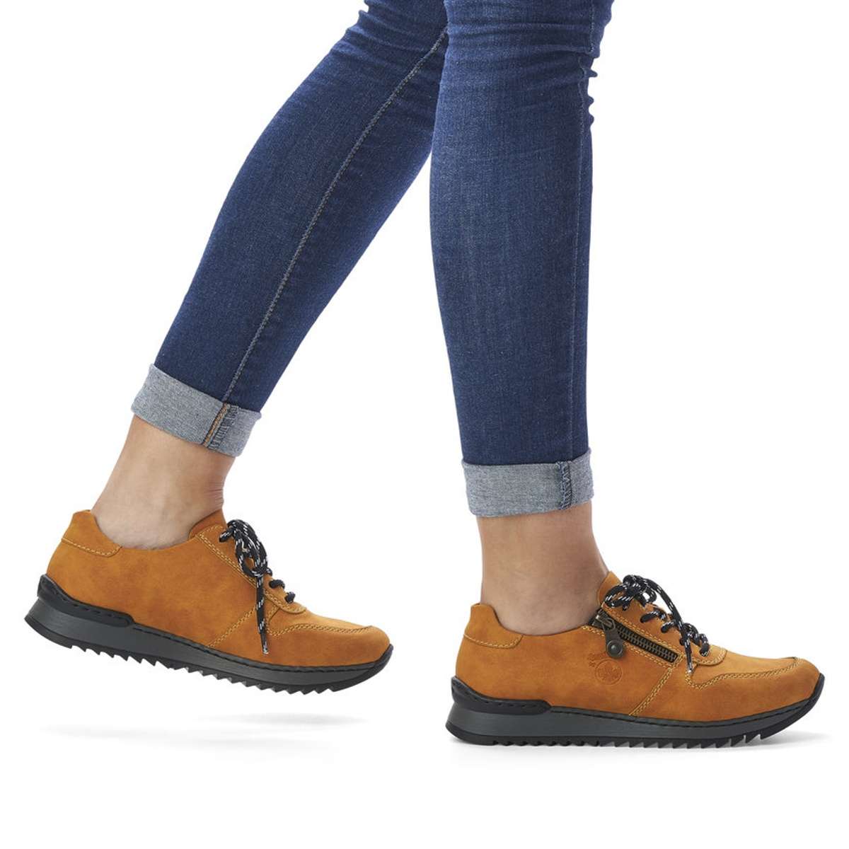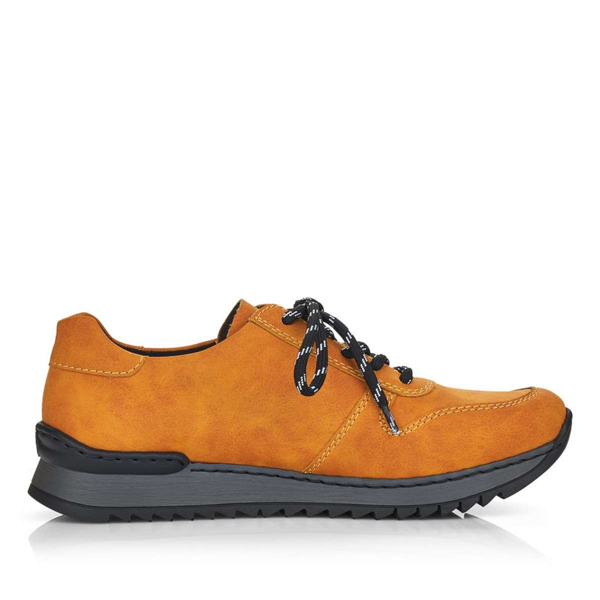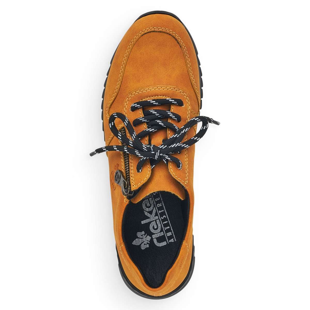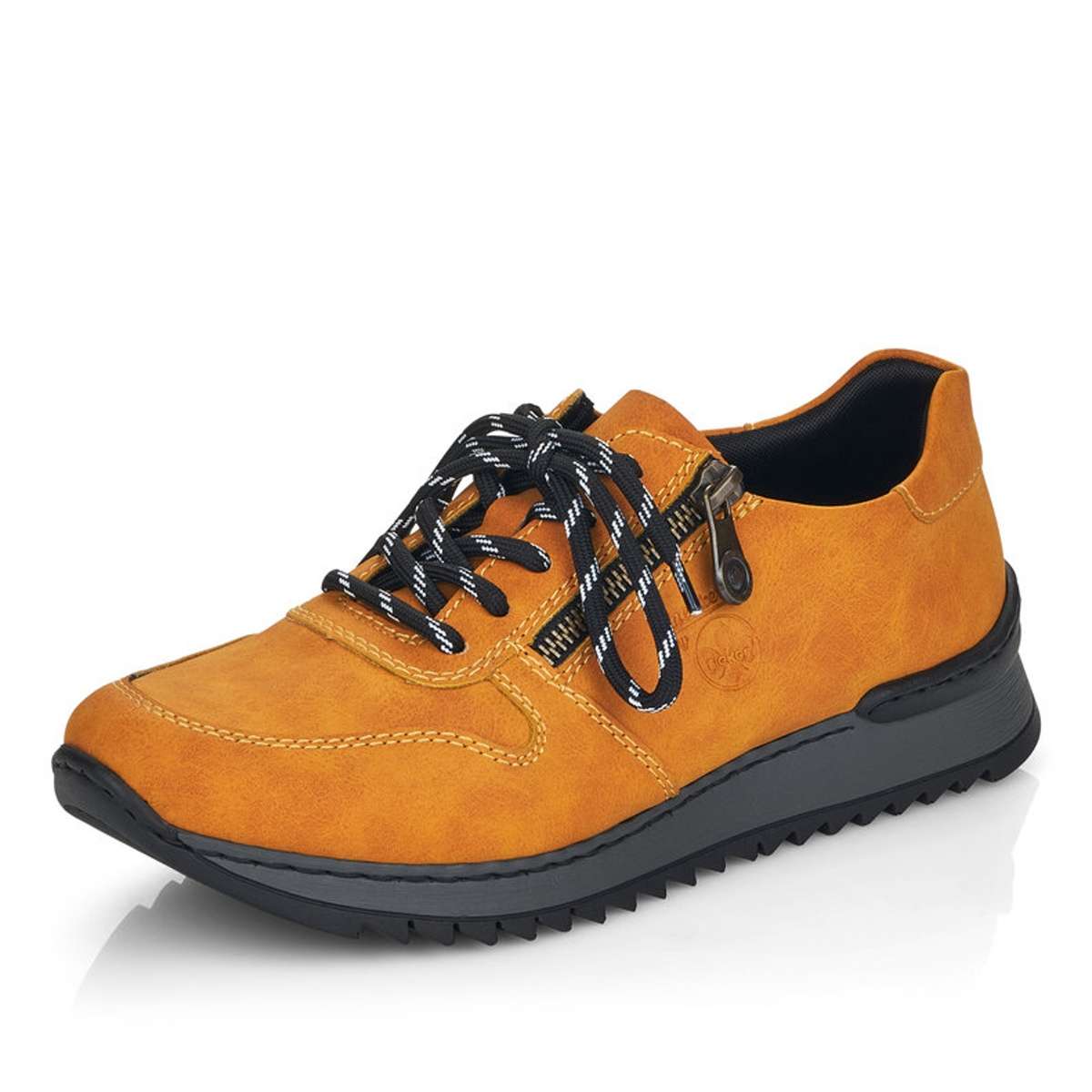 S těmito krásnými sportovními dámskými polobotkami značky RIEKER se budete cítit příjemně a podzim Vás nezaskočí. Svršek této boty je díky své barvičce nepřehlédnutelný, zipem a tkaničkami si boty krásně přizpůsobíte noze. Vtištěné logo značky rieker a jemné prošití vede obuv k dokonalosti. Výška podešve v nejvyšším bodě je cca 3,3 cm a její hrubší vzor Vám dodá komfort, který s Vámi bude celý den. Tento model si oblíbíte ať už vyrazíte do práce nebo jen tak s přáteli do města. Technologie: Antistress - podešev je díky této technologii lehká, flexibilní a absorbuje nárazy při došlapu a snadno se přizpůsobí každé noze.
