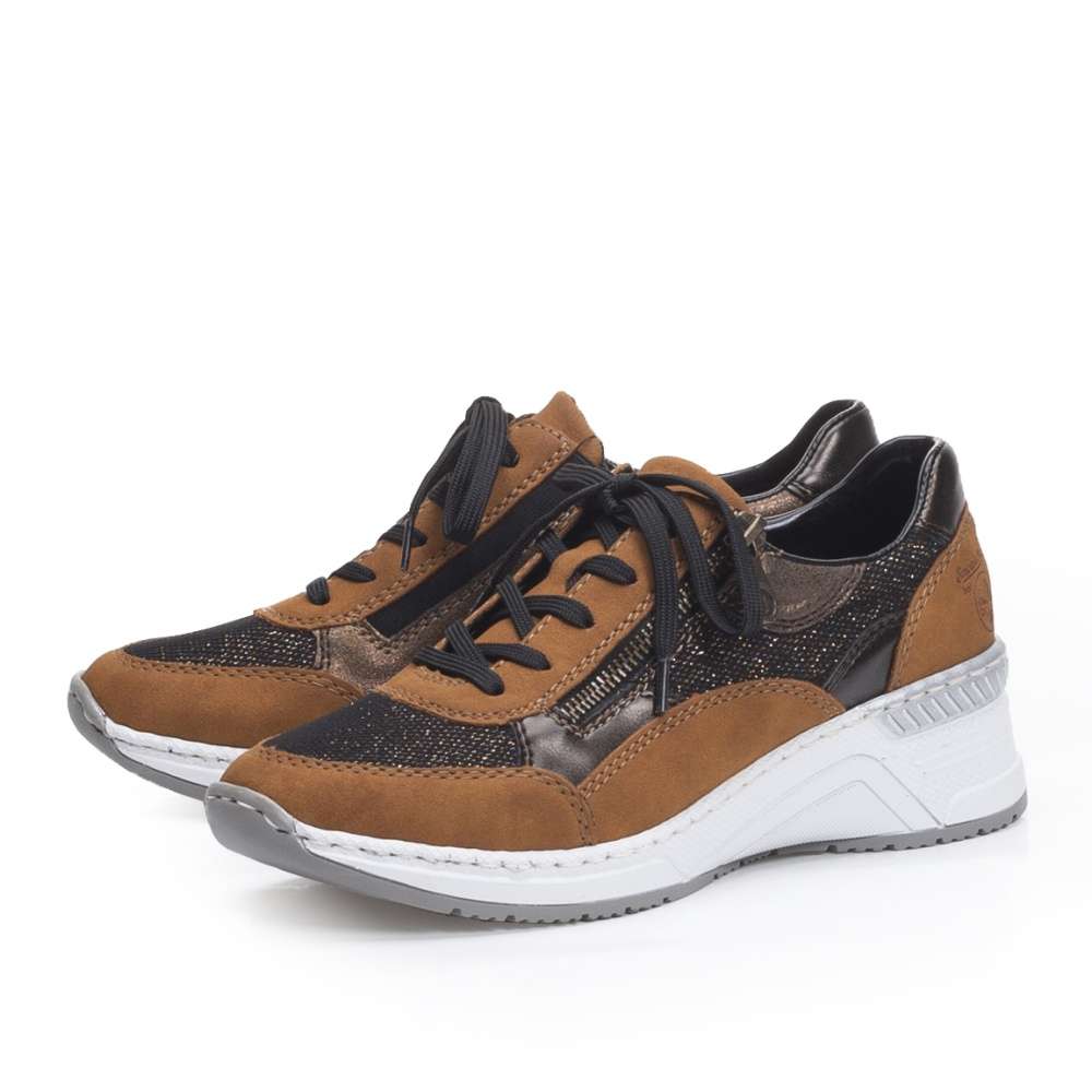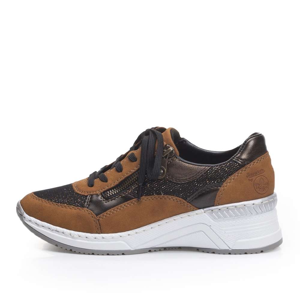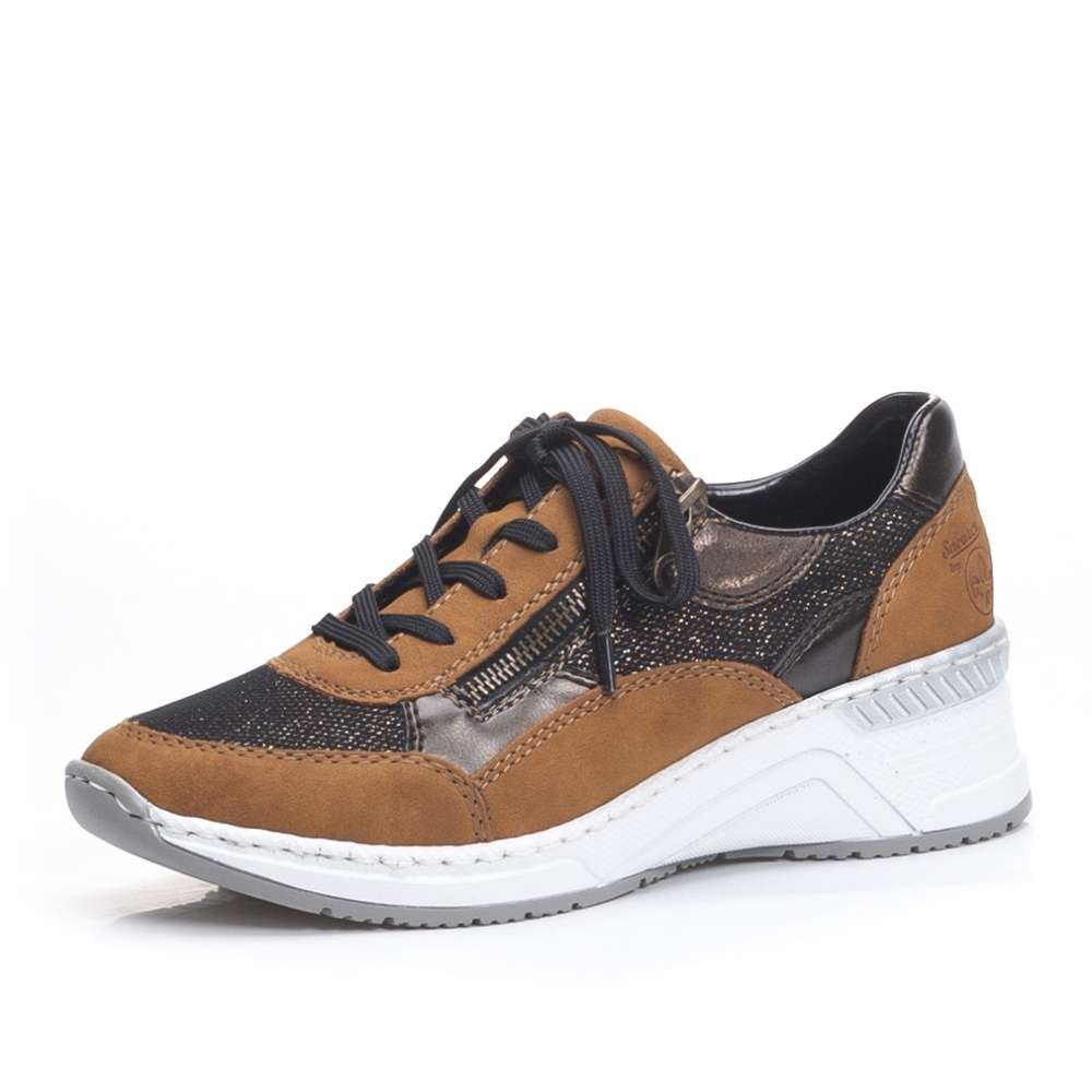 Tato obuv značky RIEKER je vhodná pro ženy, které se nebojí si vzít si na sebe i něco odvážnějšího a přidat si pár centimetrů navíc.