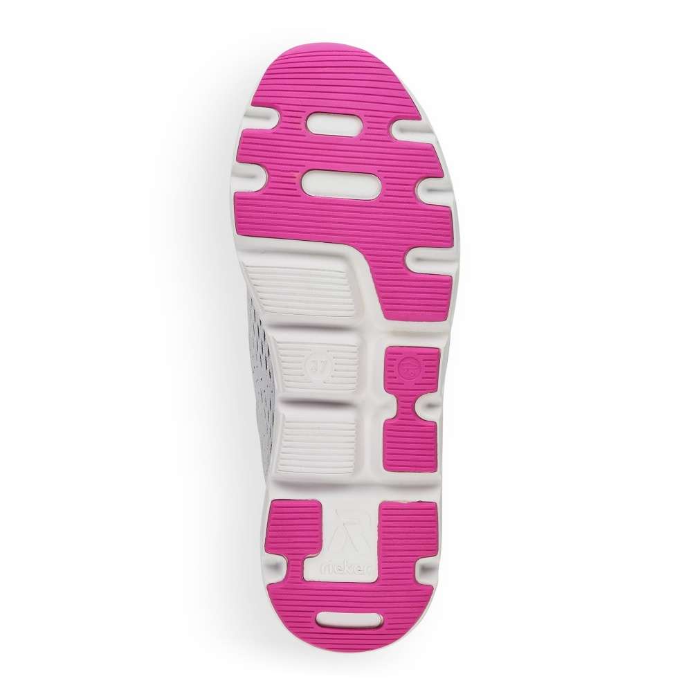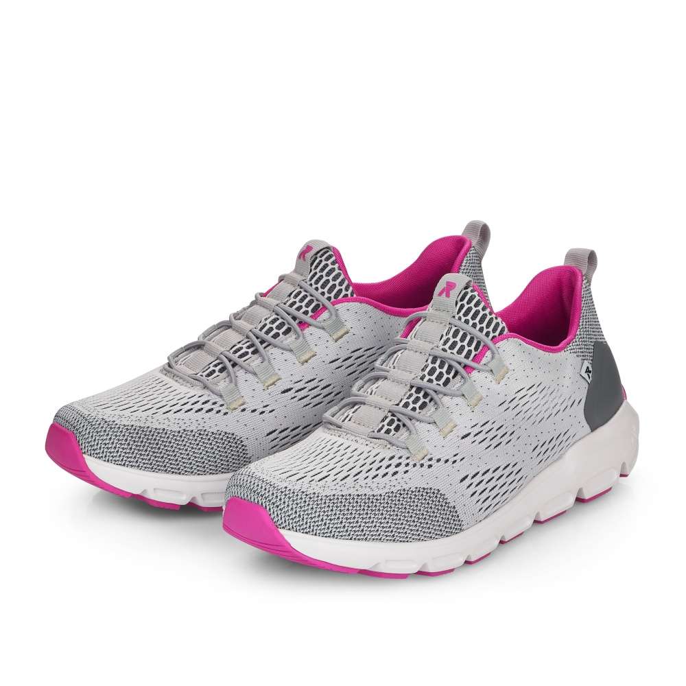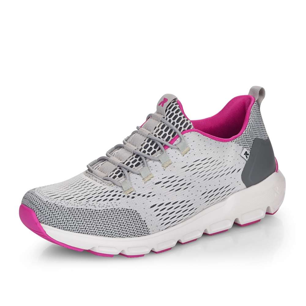 Skvělé sportovní dámské tenisky s textilním povrchem a logem značky RIEKER. Stylovou gumičkou si je můžete utáhnout přesně podle Vaší potřeby. Měkká vyjímatelná stélka zaručí pohodlí i při celodenním nošení a kvalitní podešev Vám zajistí bezpečnou chůzi. Využijete je jak při sportovních aktivitách, tak na denní nošení.