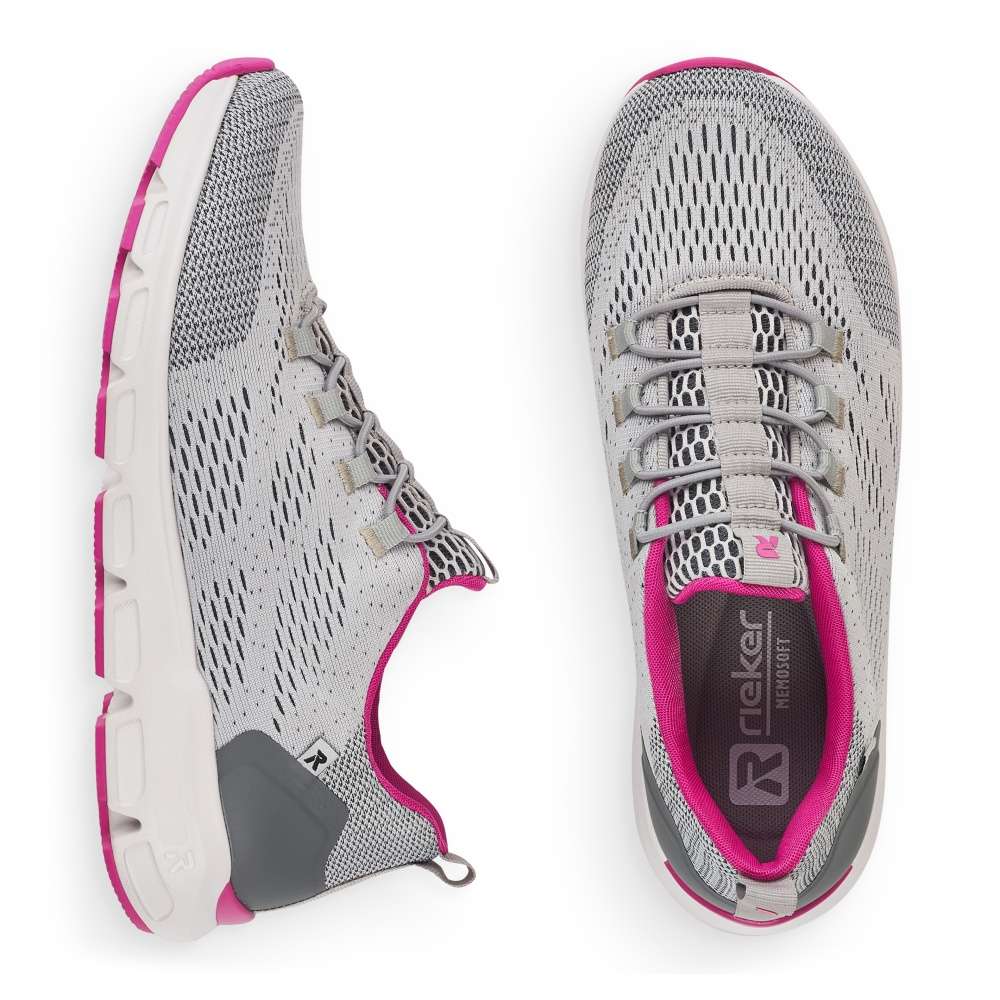 Rieker Revolution je nová řada moderní sportovní obuvi s obrovským důrazem na komfort a pohodlí i při celodenním nošení. Skvělé sportovní dámské tenisky s textilním povrchem a logem značky RIEKER. Stylovou gumičkou si je můžete utáhnout přesně podle Vaší potřeby. Měkká vyjímatelná stélka zaručí pohodlí i při celodenním nošení a kvalitní podešev Vám zajistí bezpečnou chůzi. Využijete je jak při sportovních aktivitách, tak na denní nošení. Technologie: MemoSoft – unikátní stélka z paměťové pěny, která změkčuje došlap, ale také se maximálně přizpůsobí tvaru Vašeho chodidla. Tato bota je vybavena vyjímatelnou stélkou.