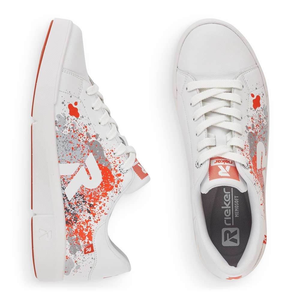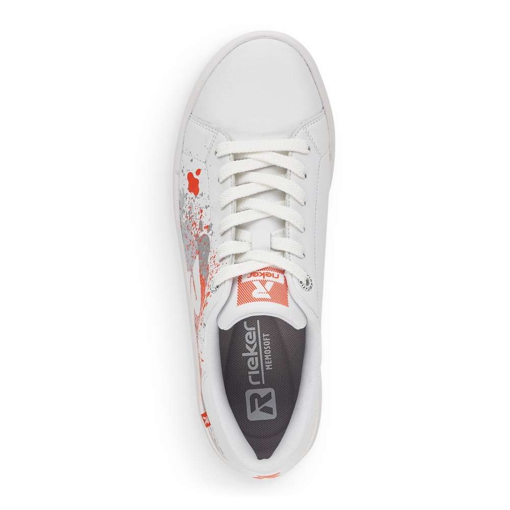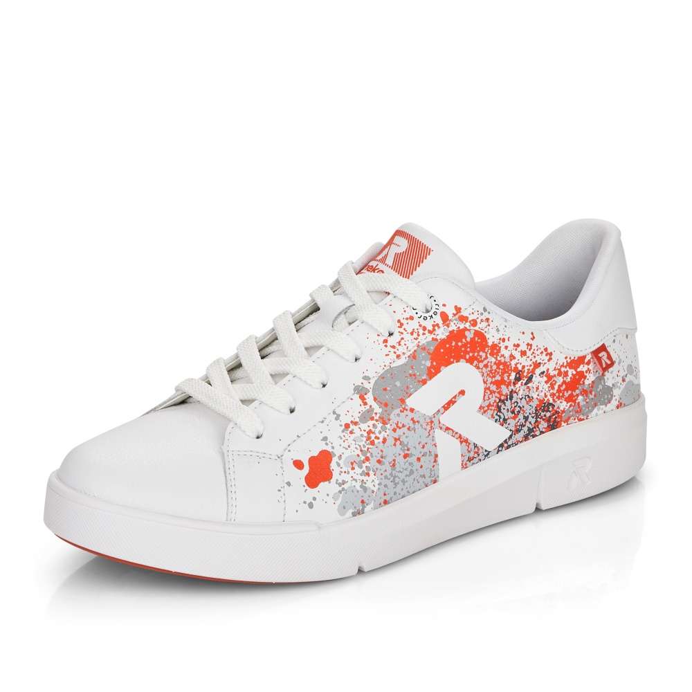 Rieker Revolution je nová řada moderní sportovní obuvi s obrovským důrazem na komfort a pohodlí i při celodenním nošení. Dámské krásné tenisky značky RIEKER. V těchto teniskách se budete cítit pohodlně. Předností těchto bot je čistá linie. Díky tkaničkám si obuv upravíte přesně podle Vašich představ. Botky zdobí barevný potisk a logo značky RIEKER na vnější straně obuvi. Rovná podešev Vám zajistí dobrou stabilitu a pocit bezpečí při chůzi. Využijete je jak při sportovních aktivitách, tak na denní nošení. Technologie: MemoSoft – unikátní stélka z paměťové pěny, která změkčuje došlap, ale také se maximálně přizpůsobí tvaru Vašeho chodidla. Tato bota je vybavena vyjímatelnou stélkou.