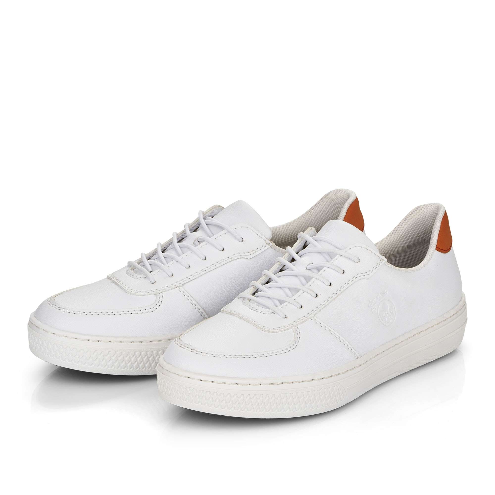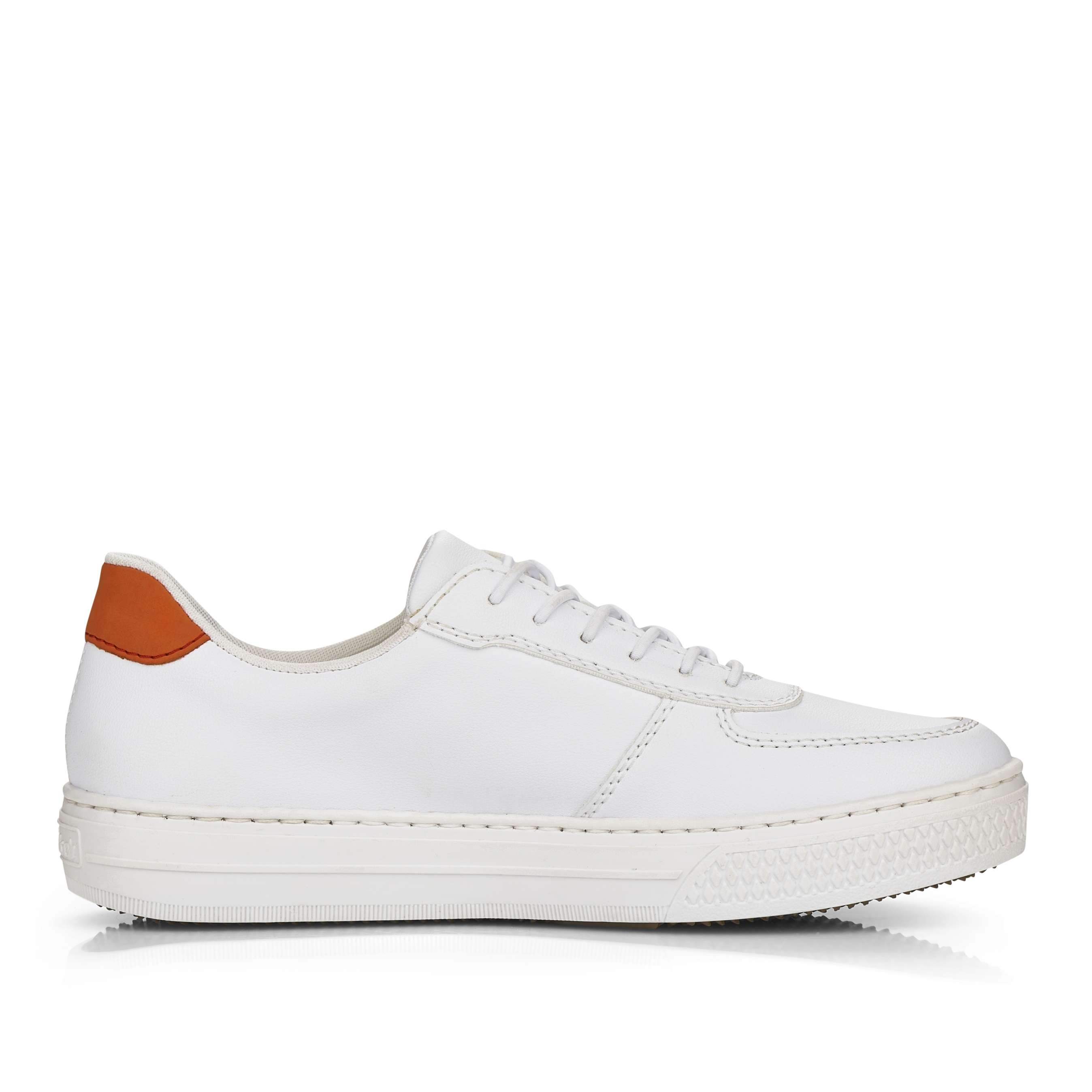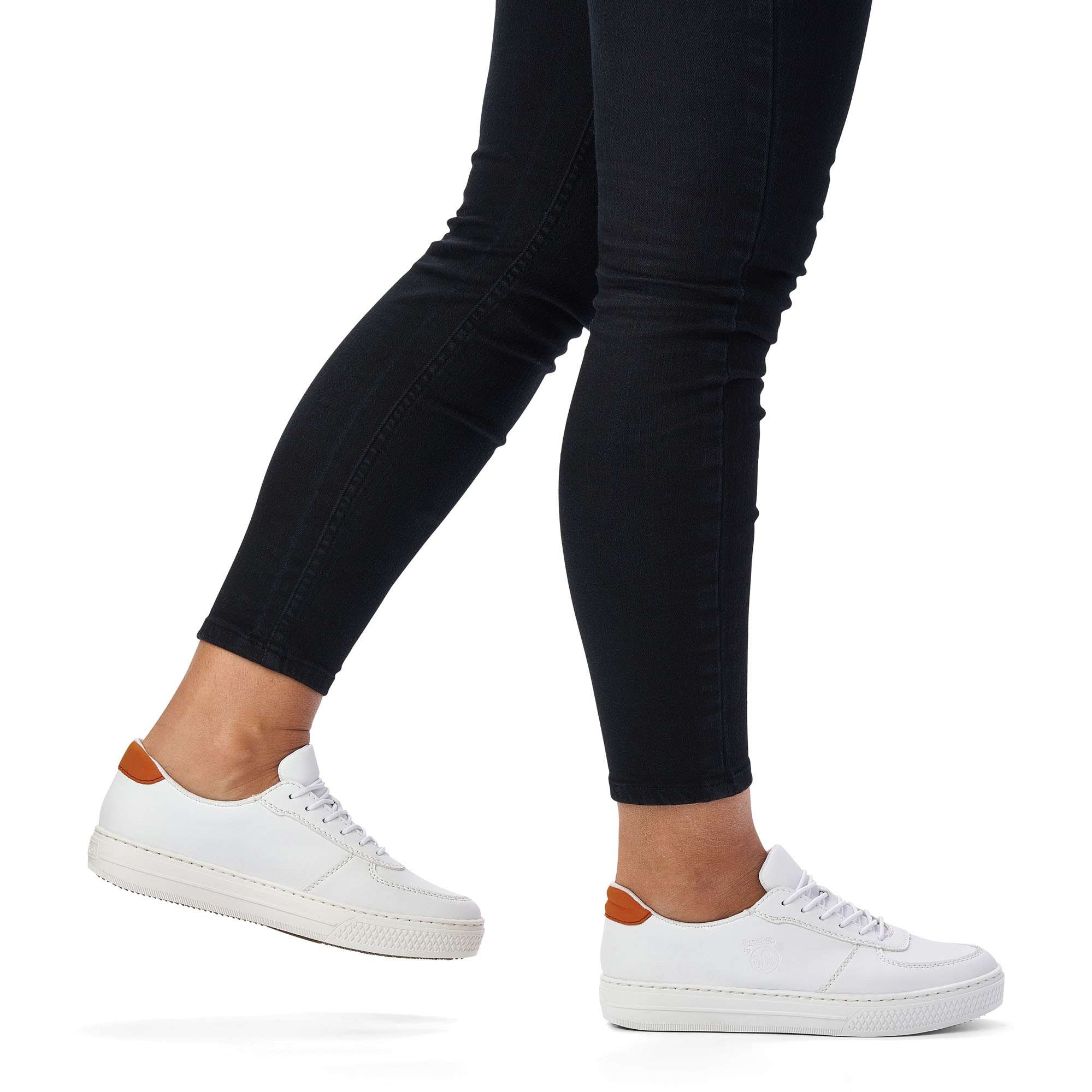 Detailní informace Neodolatelná dámská obuv značky RIEKER, jejíž nošení bude zážitek. Bílý svršek je obohacen oranžovou částí na zadní straně a jemným šitím po obvodu tenisky. Pro jednodušší obutí slouží elastický materiál. Kvalitní stélka je vyrobena z paměťové pěny, která zajistí příslušný komfort pro Vaše chodidla po celý den. Dopřejte si nové společnice na vycházky nebo do kina.