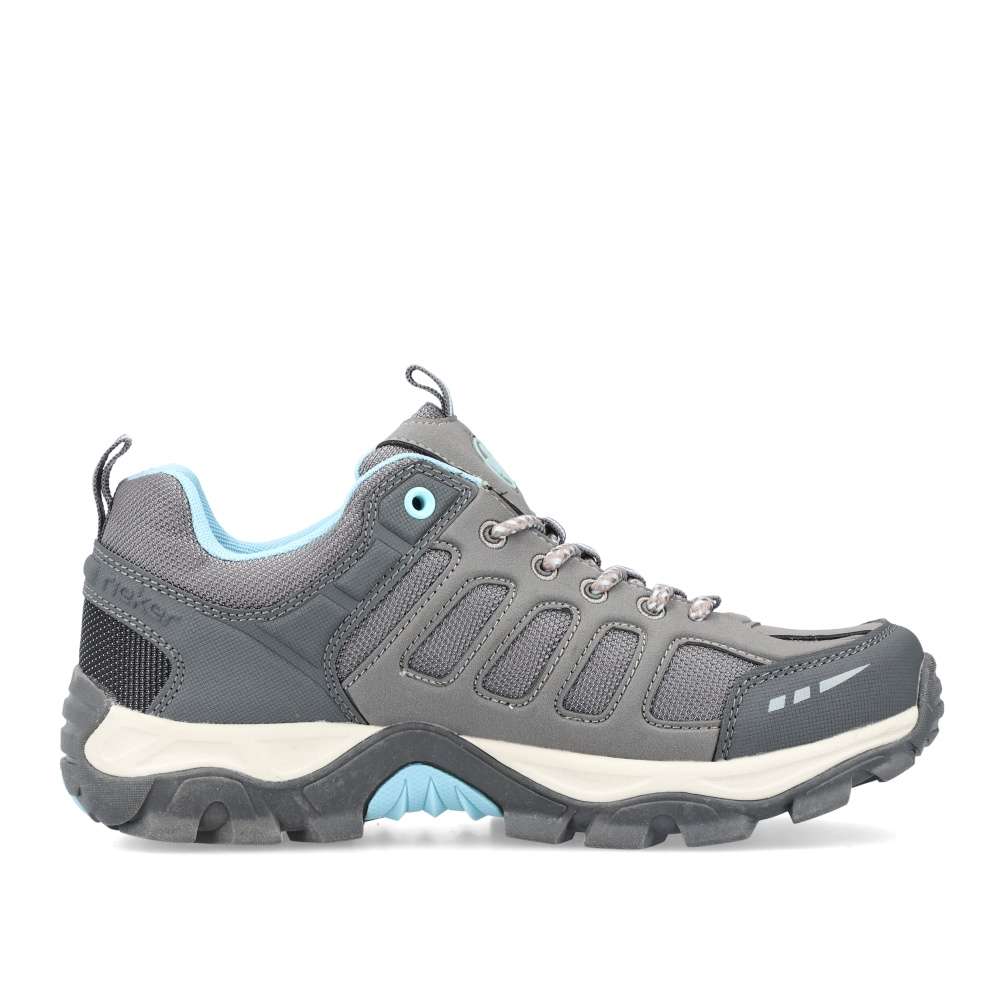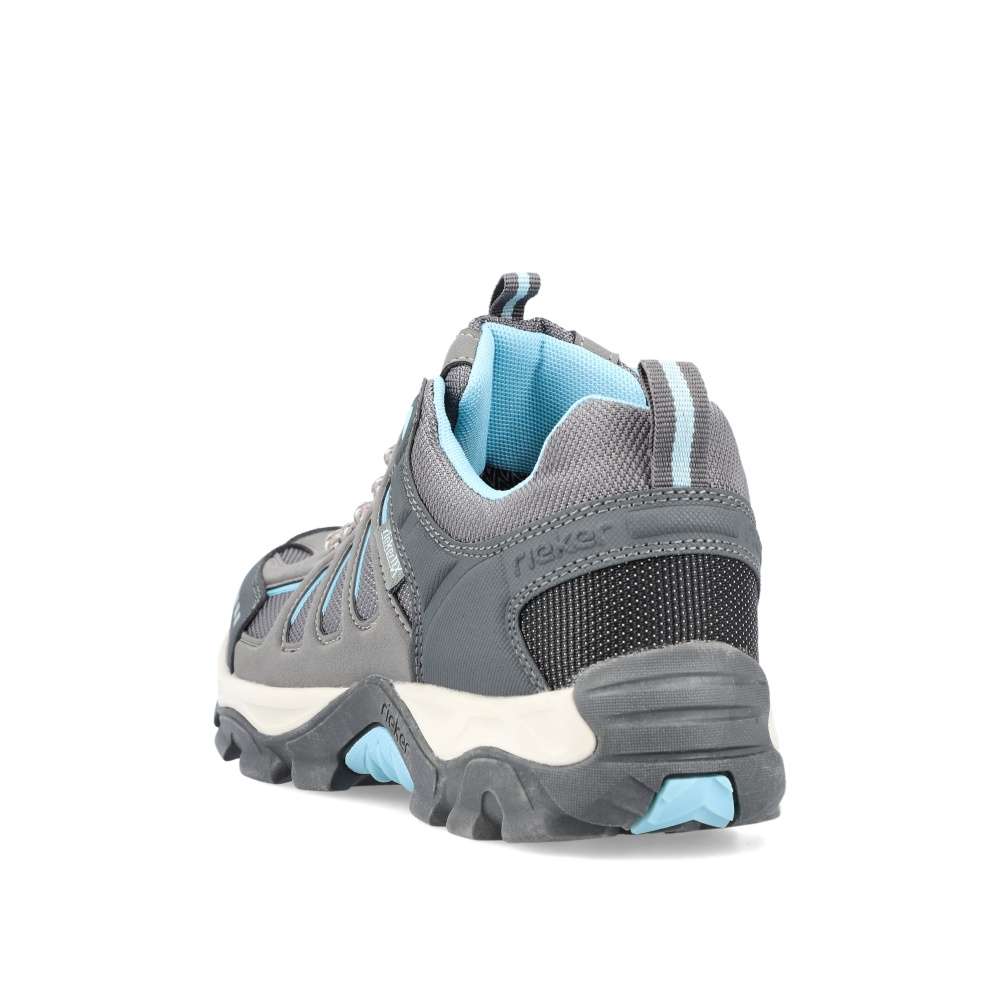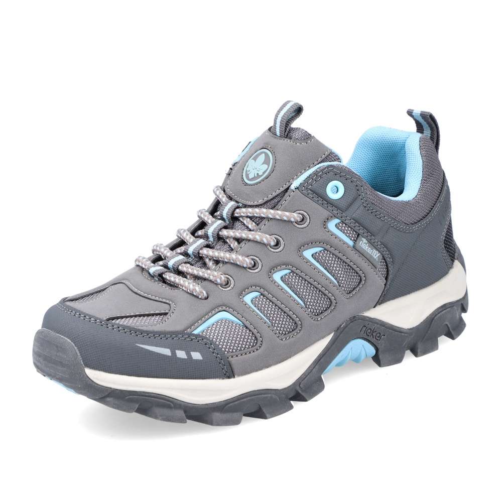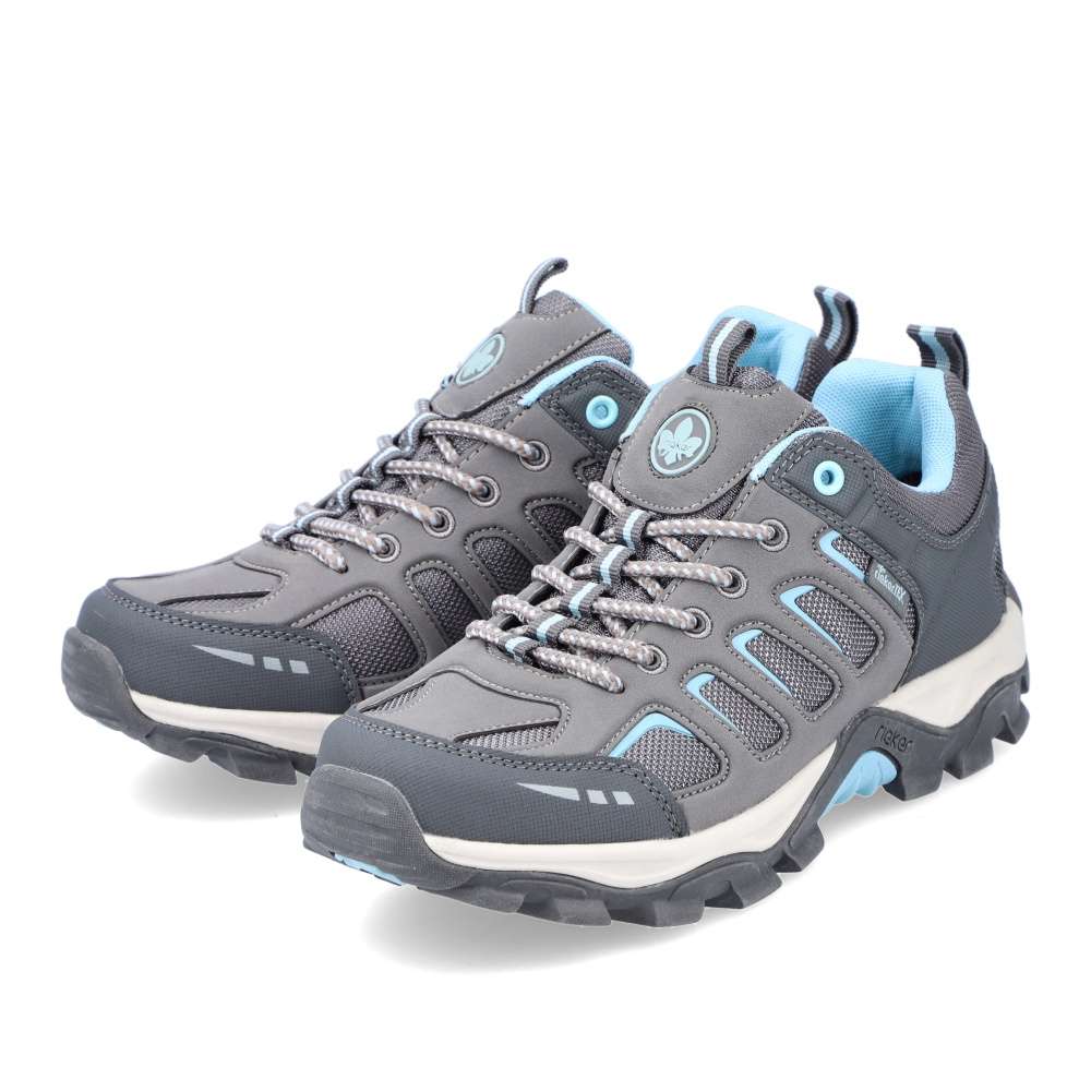 Dámská sportovní obuv s kulatým logem značky RIEKER a nádherným propojením světle šedé a pastelově modré barvy. K ještě snadnějšímu obutí zde poslouží textilní poutka u horního okraje a tkaničkami si boty můžete utáhnout přesně podle Vašich představ. Pohodlná stélka je vyrobená z paměťové pěny a zajistí Vám celodenní komfort. S tímto vkusným modelem budou procházky přírodou ještě o něco hezčí. Technologie: Antistress – podešev je díky této technologii lehká, flexibilní, absorbuje nárazy při došlapu a snadno se přizpůsobí každé noze. MemoSoft – unikátní stélka z paměťové pěny, která změkčuje došlap, ale také se maximálně přizpůsobí tvaru Vašeho chodidla.