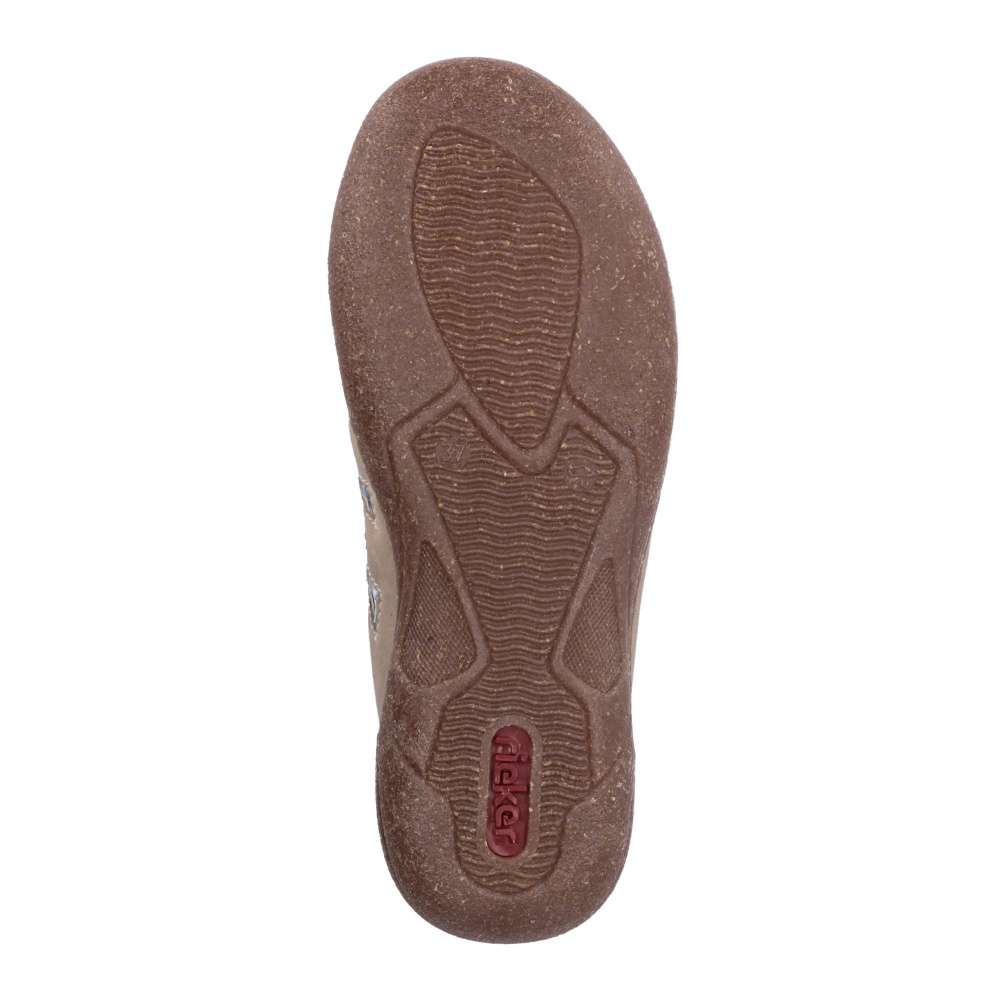 Líbivé dámské sandálky značky RIEKER, které rozzáří Váš den a doplní botník o originální kousek. Béžovým svrškem se prolíná květinkové vzorování, které dodá jedinečný styl. Kožená stélka je tou pravou volbou pro Vaše nekonečné pohodlí a spolu s prodyšnou podšívkou se tyto boty dostávají k dokonalosti. Pevná podešev je lehká, flexibilní a tlumí nárazy při došlapu, a tak se nemusíte bát, že byste v botách nevydržela celý den. Technologie: Antistress – podešev je díky této technologii lehká, flexibilní, absorbuje nárazy při došlapu a snadno se přizpůsobí každé noze.