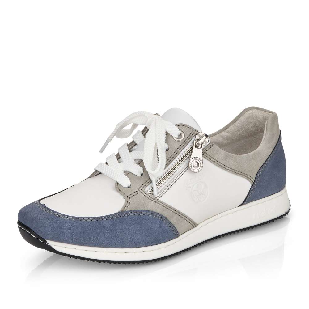 Detailní informace Volnočasová dámská obuv značky RIEKER, která rozzáří Váš den i botník. Okouzlující svršek Vás zaujme na první pohled. Unikátní design dodávají botě její barevné kombinace, které jsou spojeny jemným šití. Nesmí chybět logo značky. Pro jednodušší obutí slouží zip na vnější straně a šněrování. Měkká stélka je vyjímatelná, a tak ji můžete kdykoliv vyjmout a vyvětrat. Tenisky si můžete vzít na procházku do parku, kavárny nebo na nákupy. Nahoďte batoh a můžete vyrazit.
