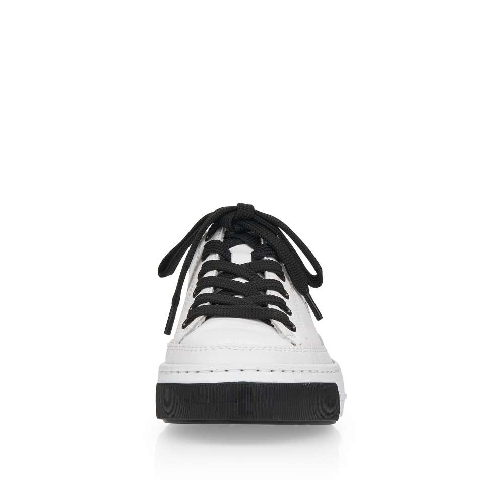Detailní informace Touto dámskou teniskou od značky Rieker dovedete každý Váš outfit k dokonalosti. Svršek bílé boty lehce zdobí prošívání stejné barvy a černý prvek v oblasti paty, který krásně koresponduje s tkaničkami a logem značky, které je viditelné na vnější straně tenisky a na jejím jazyku. Botu skvěle sladíte s riflemi nebo kraťasy a tím dosáhnete parádního vzhledu.