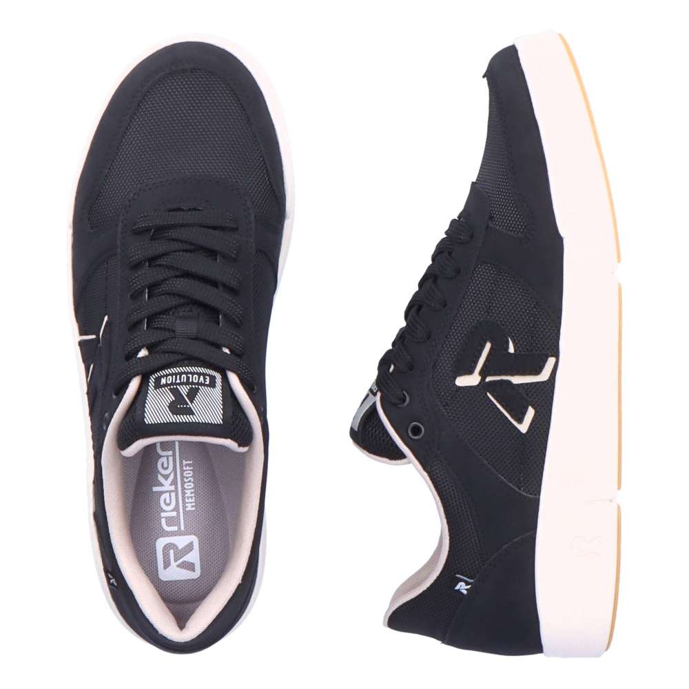 Rieker Revolution je nová řada moderní sportovní obuvi s obrovským důrazem na komfort a pohodlí i při celodenním nošení. Základem každého botníku jsou tyto funkční tenisky. Nabízíme Vám je v tmavé barvičce a značky Rieker. Jsou zdobené logem značky na boku boty, na jazyku a na podrážce. Svršek je kombinací kůže a textilu. Šněrování je klasické pomocí tkaniček, díky kterým můžete botu dokonale přizpůsobit Vaší noze. Pohodlí při chůzi zajistí vyjímatelná paměťová stélka. Chystáte se na celodenní procházku? Tyto tenisky Vás při ní určitě nezklamou. Technologie: SoftFoam – unikátní stélka z paměťové pěny, která změkčuje došlap, maximálně se přizpůsobí tvaru Vašeho chodidla, ale zároveň ji můžete vyjmout, vyměnit nebo vyvětrat.