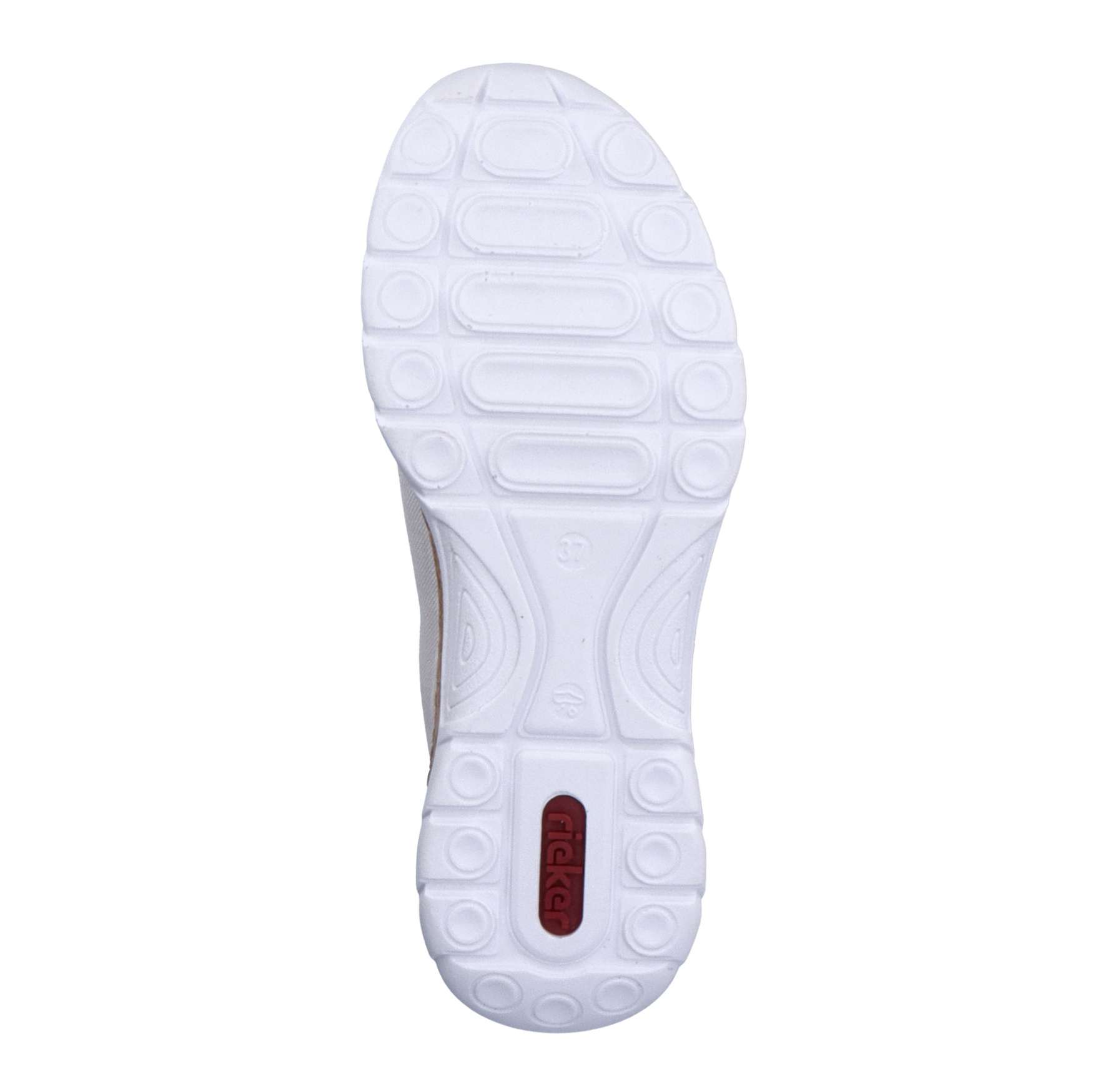 Elegantní, ale zároveň sportovní jsou tyto polobotky značky RIEKER. Textilní svršek světlé barvy je doplněn potiskem s logem značky, zipem či pružným lemem horního okraje obuvi. Snadno si obuv nazujete a přizpůsobíte díky kontrastnímu poutku a šněrování pružnou gumičkou, které lze snadno utáhnout či povolit. Unikátní textilní stélka z paměťové pěny změkčí došlap a přizpůsobí se tvaru Vašeho chodidla. Podešev v horní části s imitací korku je vyrobená s technologií Antistress díky níž je lehká a flexibilní. Tento vysoce komfortní vzor je vhodný pro každodenní nošení ke každému outfitu. Technologie: Antistress – podešev je díky této technologii lehká, flexibilní, absorbuje nárazy při došlapu a snadno se přizpůsobí každé noze. MemoSoft – unikátní stélka z paměťové pěny, která změkčuje došlap, ale také se maximálně přizpůsobí tvaru Vašeho chodidla.
